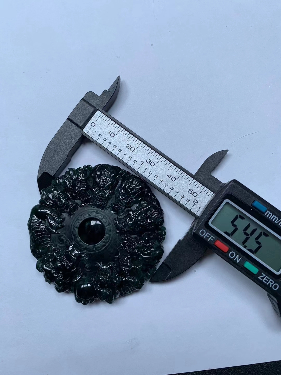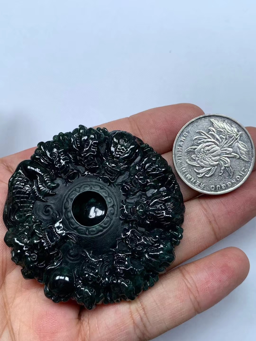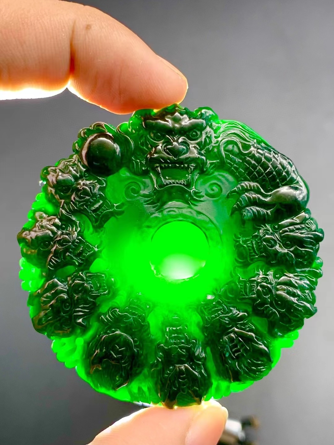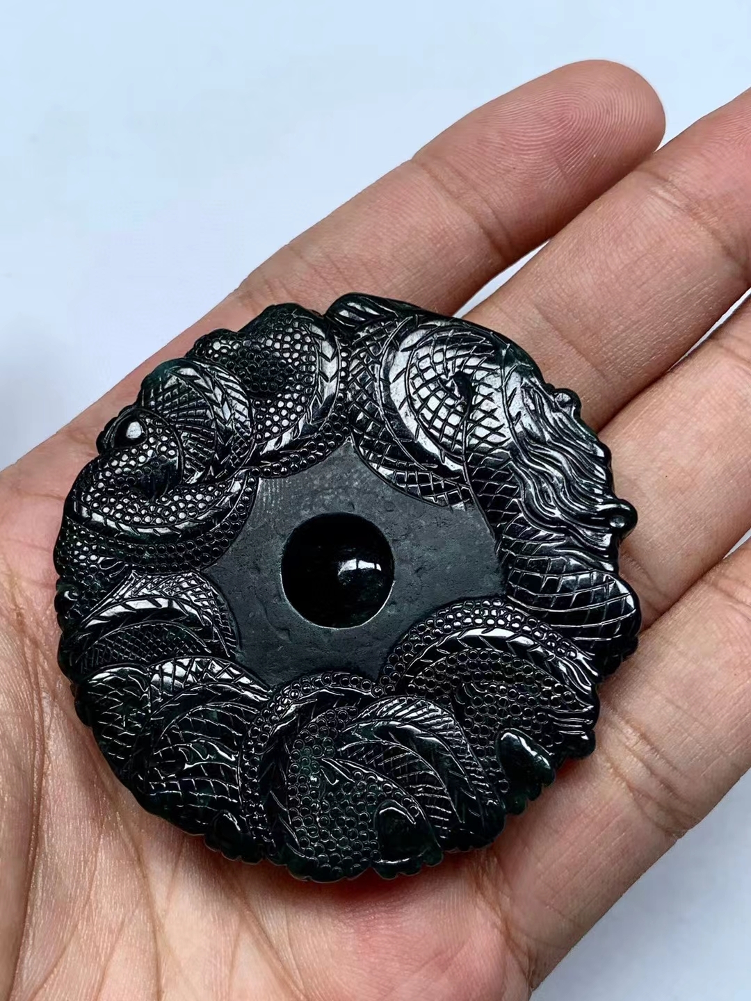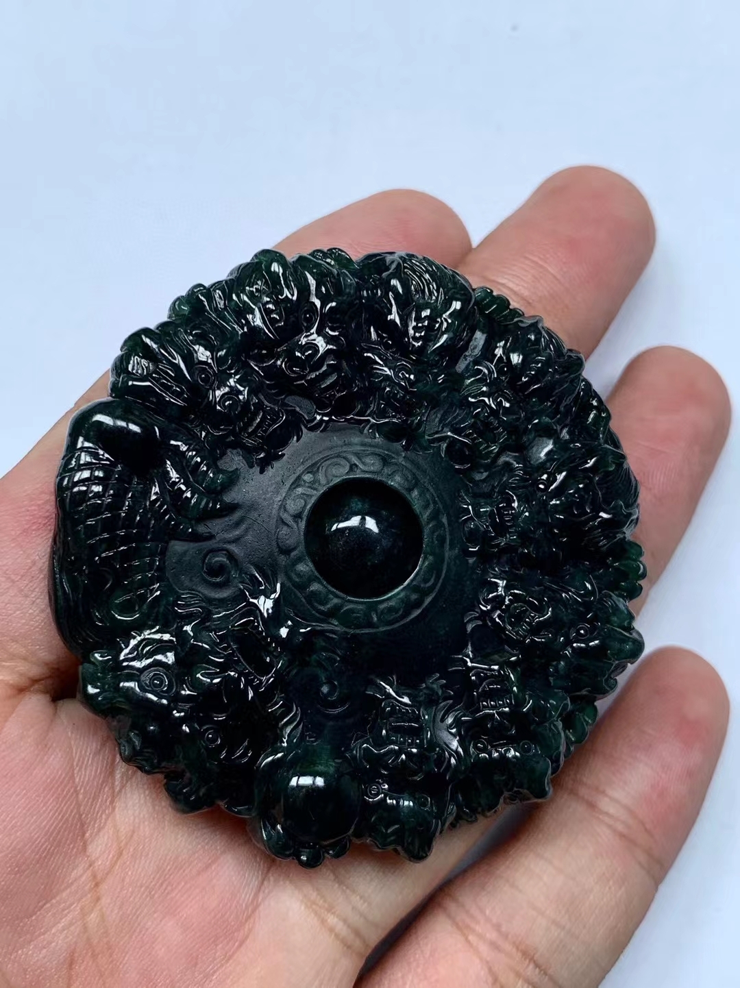 • 墨翠九龍吐珠,天然翡翠A玉, 緬甸玉, Jade, Jadeite