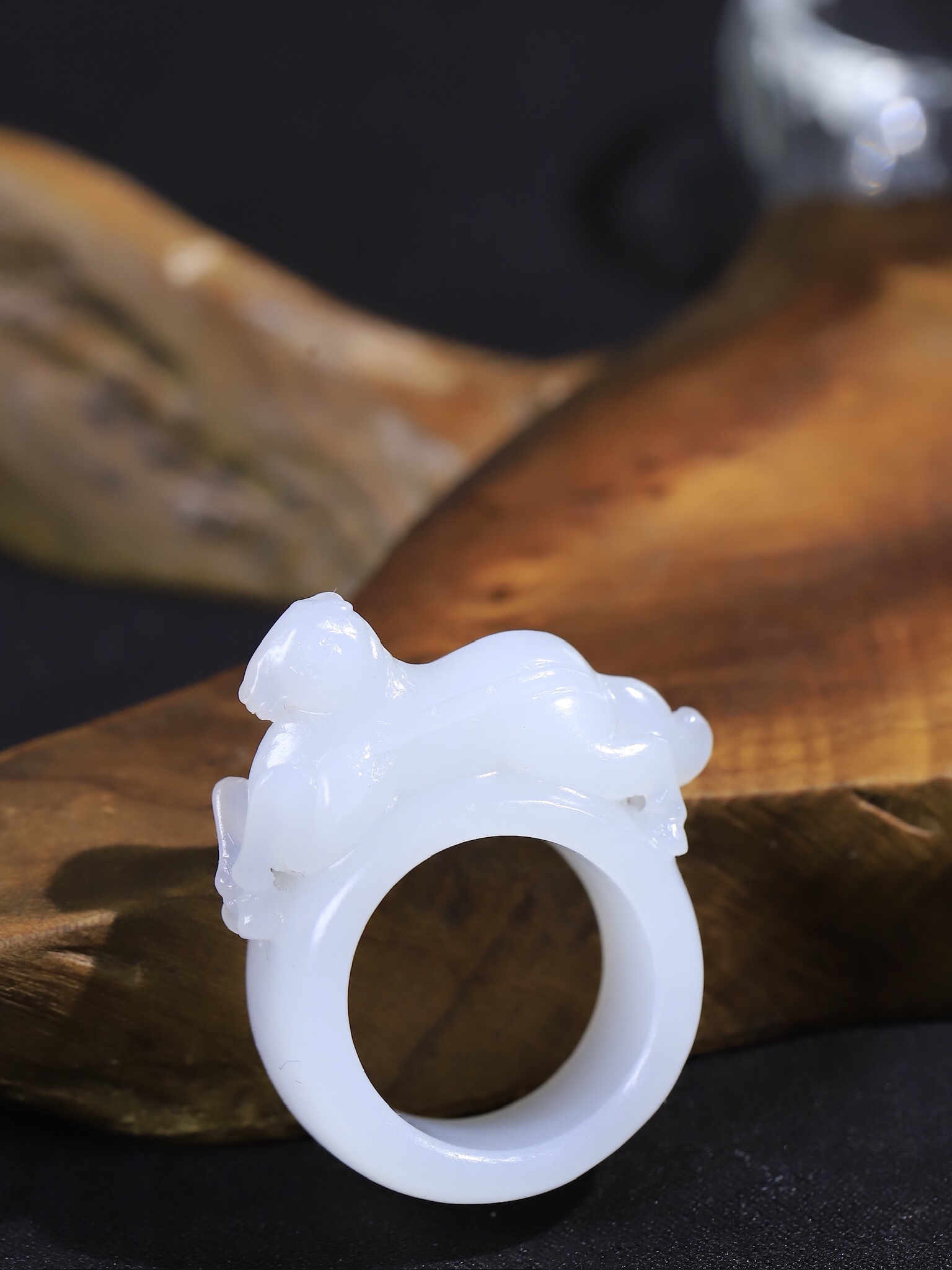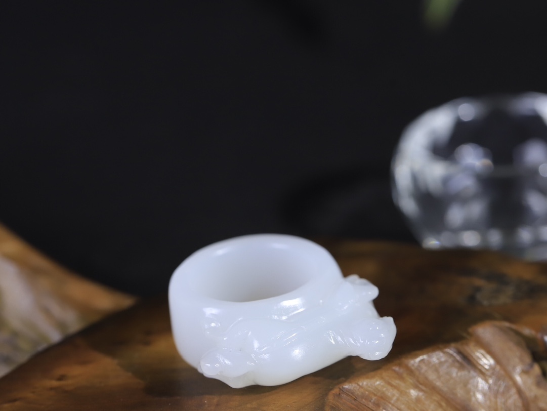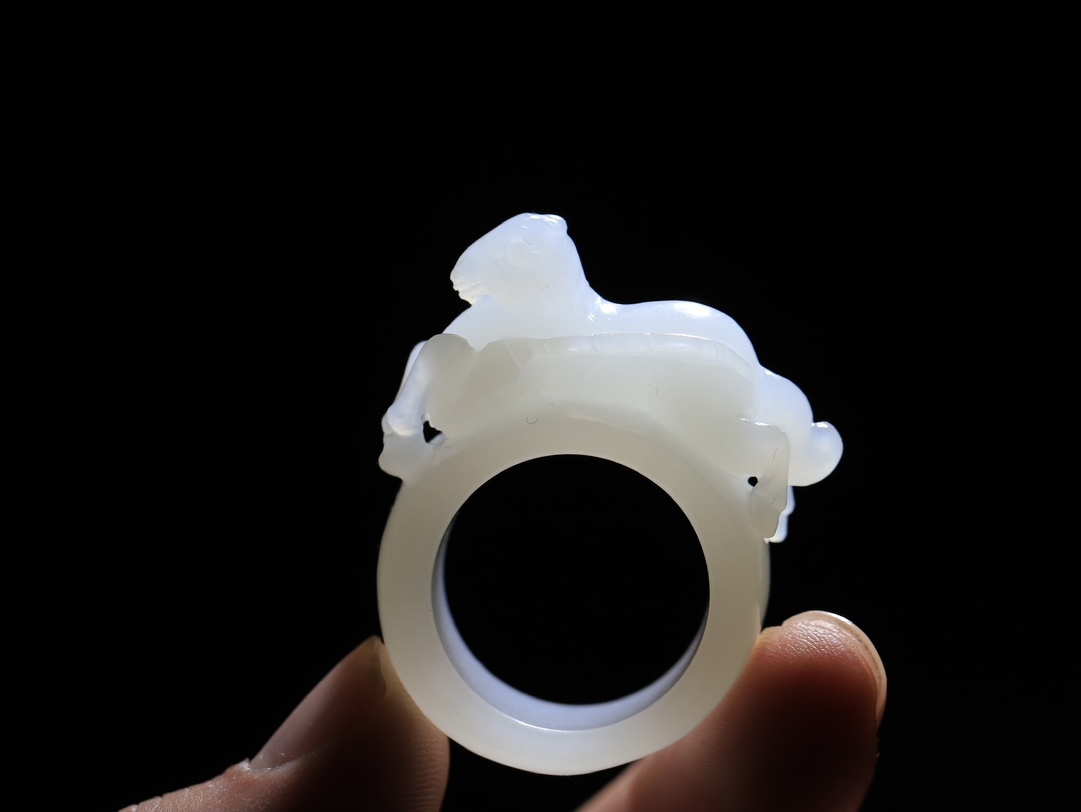 • 和田玉白玉馬到成功扳指,天然和田玉軟玉