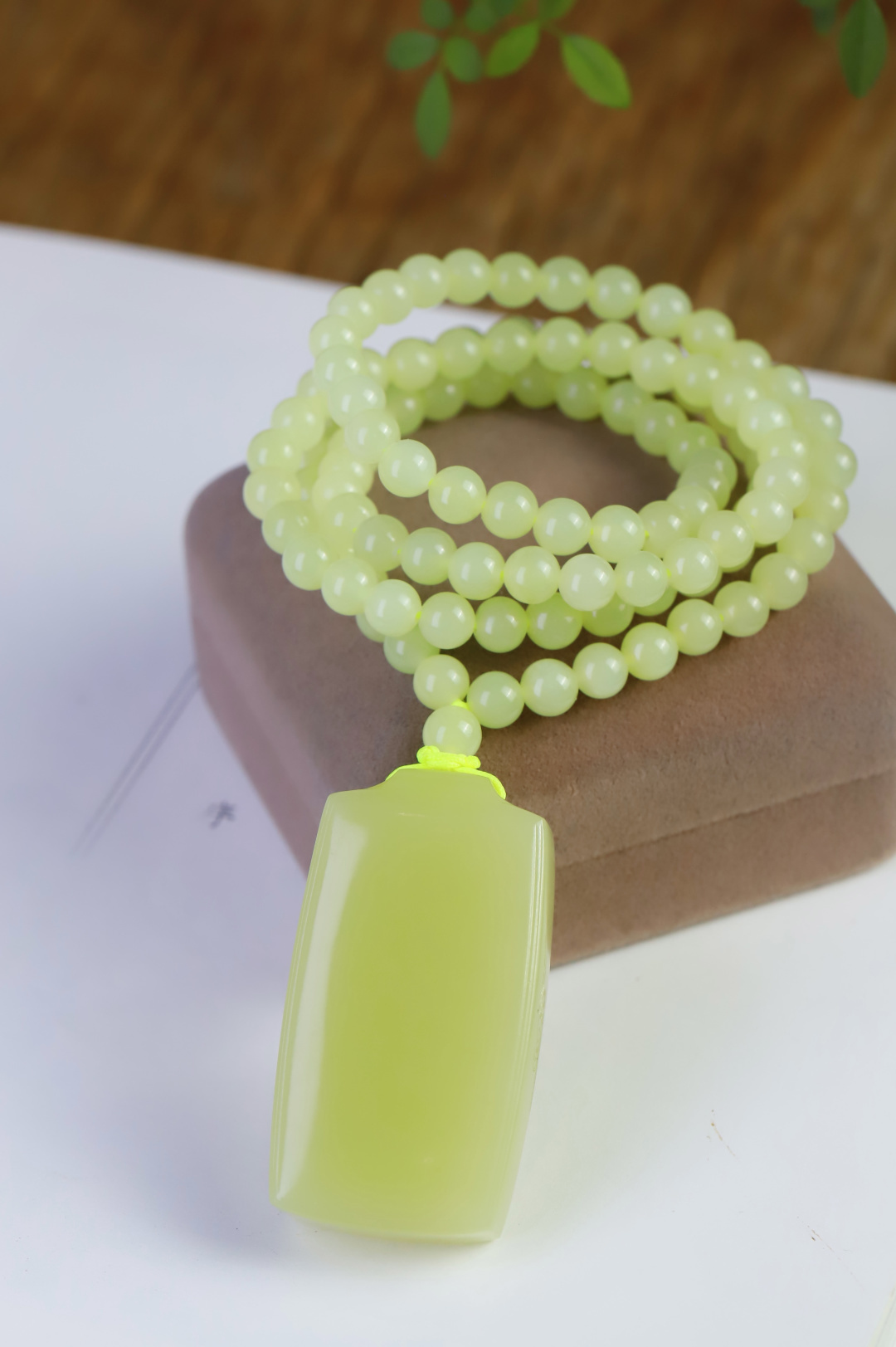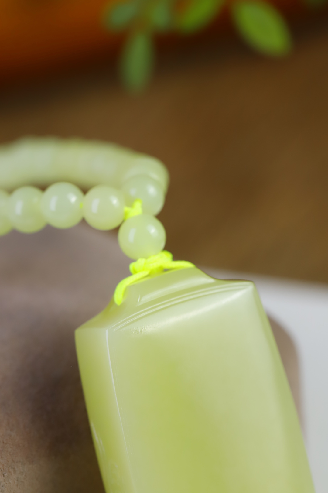 126156 和田玉若羌黃口平安無事牌一體鏈 (項鏈直徑 6mm)