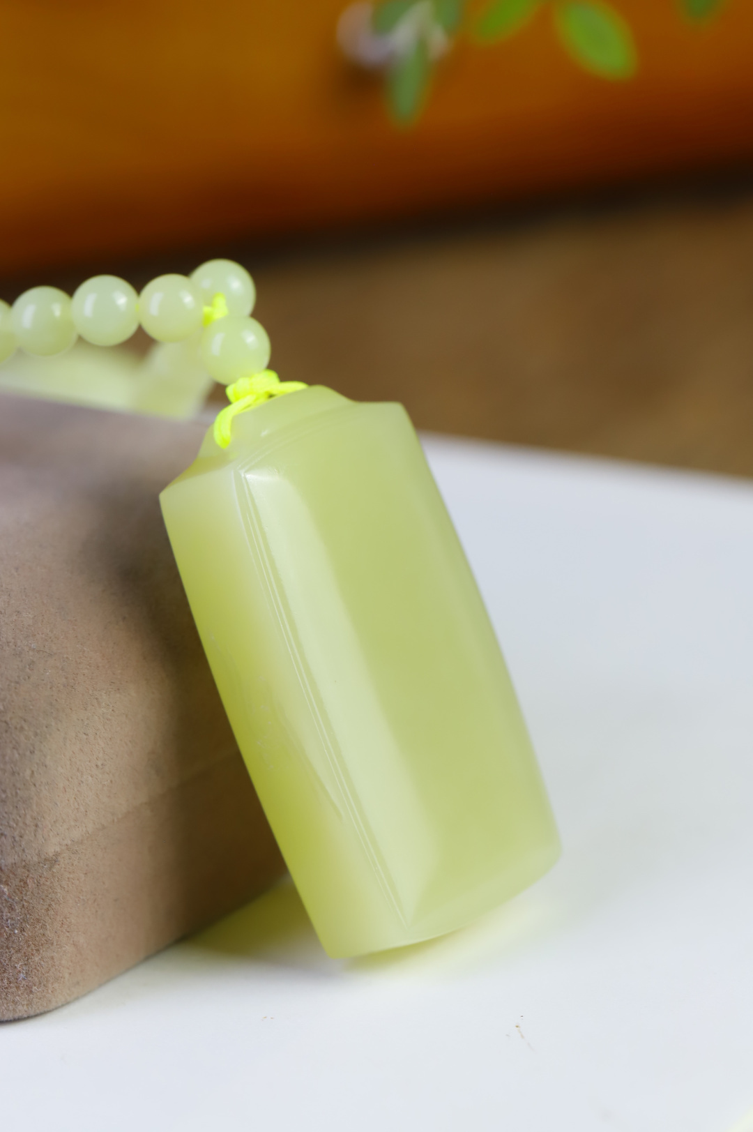 • 和田玉若羌黃口平安無事牌一體鏈 (項鏈直徑 6mm),天然和田玉軟玉