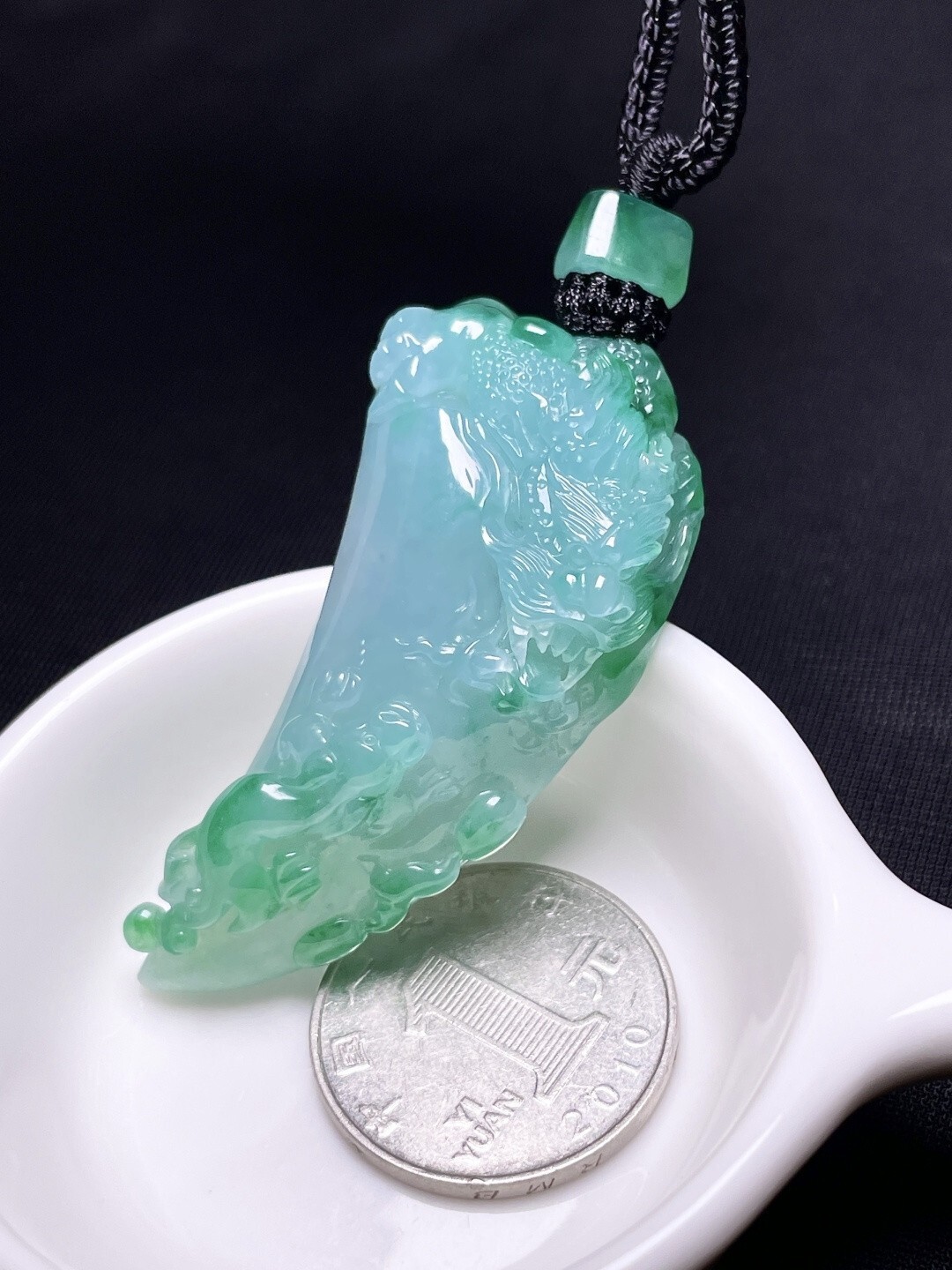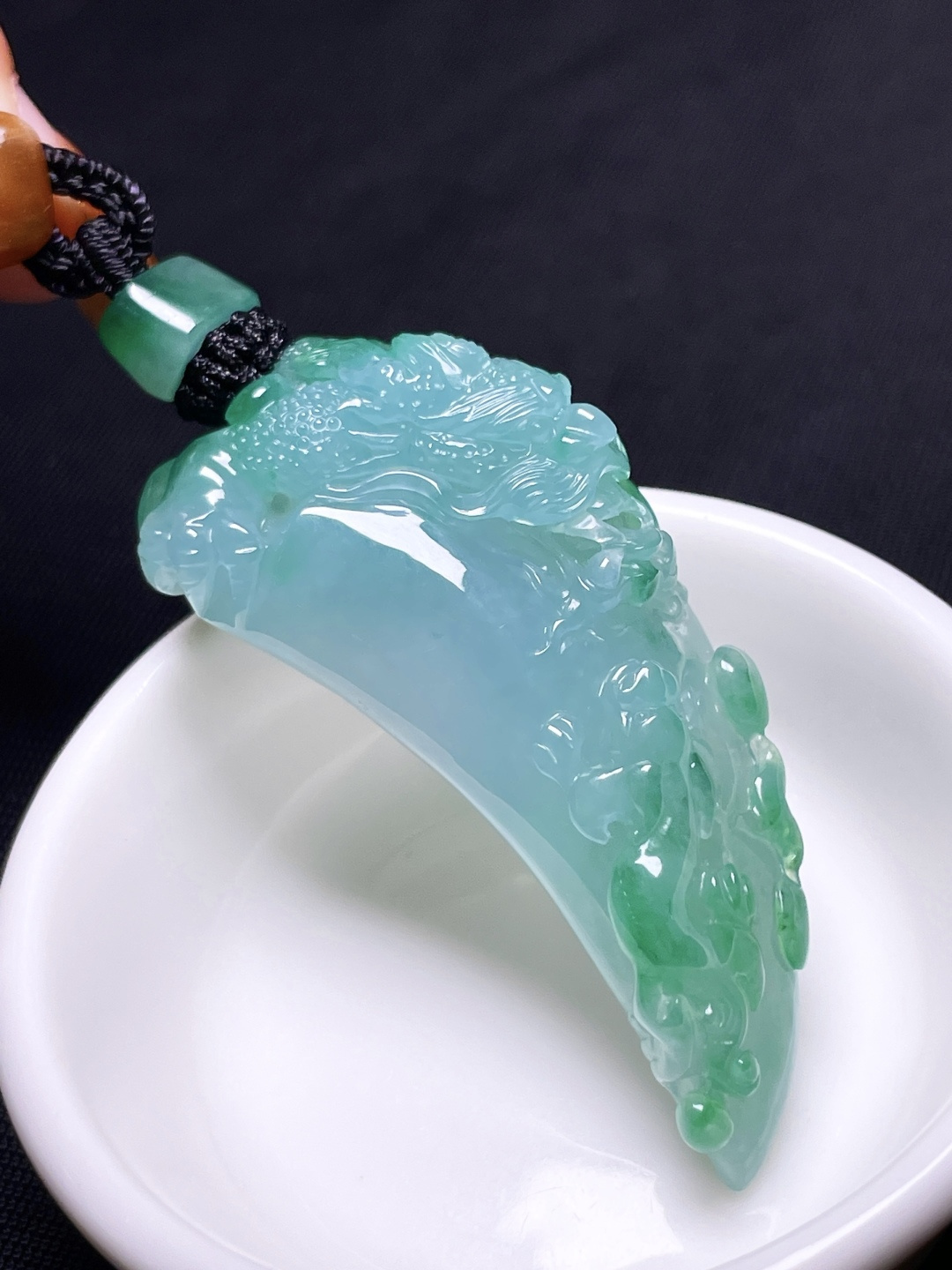 • 翡翠龍牙吊墜,天然翡翠A玉, 緬甸玉, Jade, Jadeite