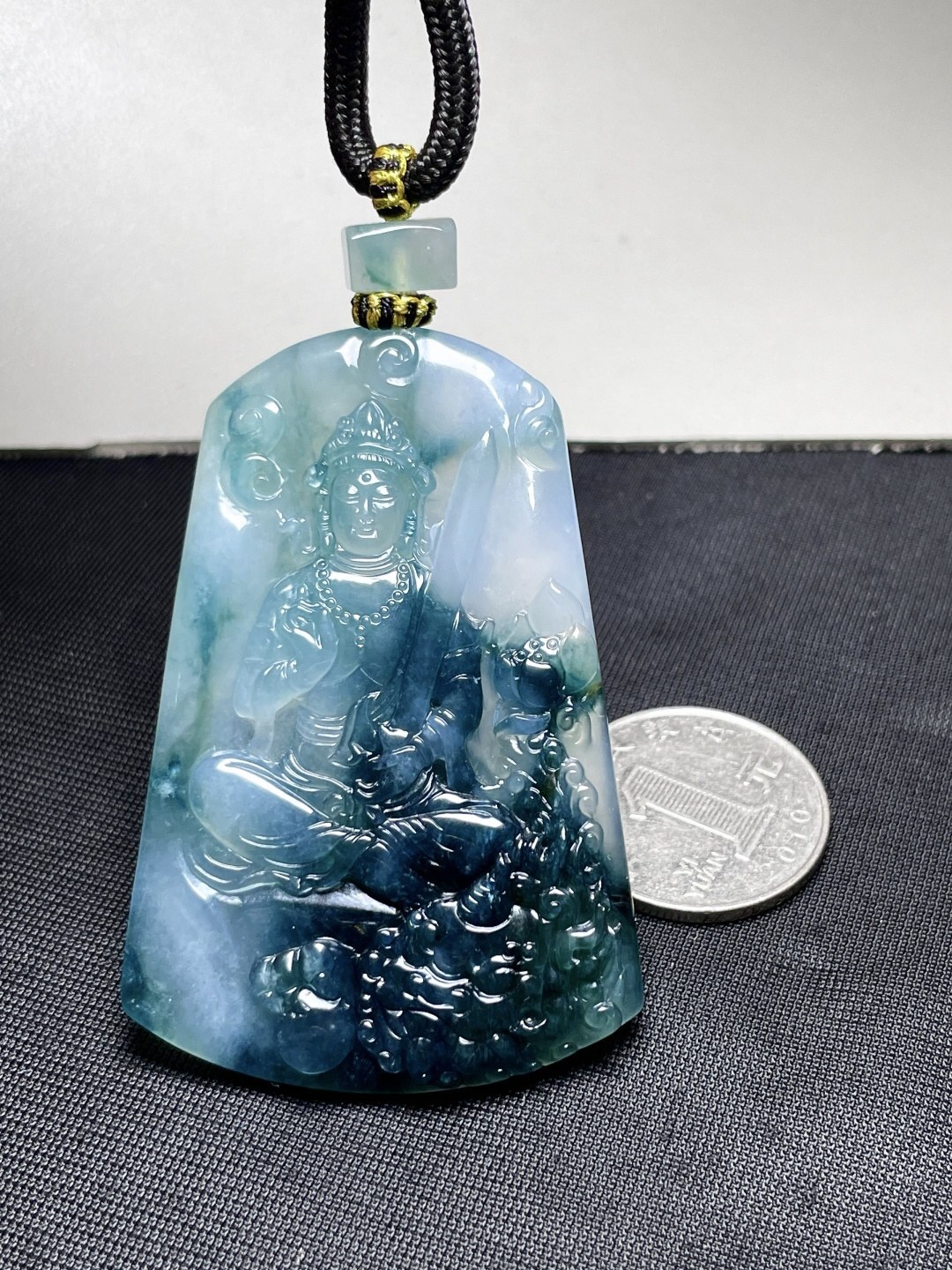 • 翡翠文殊菩薩吊墜,天然翡翠A玉, 緬甸玉, Jade, Jadeite