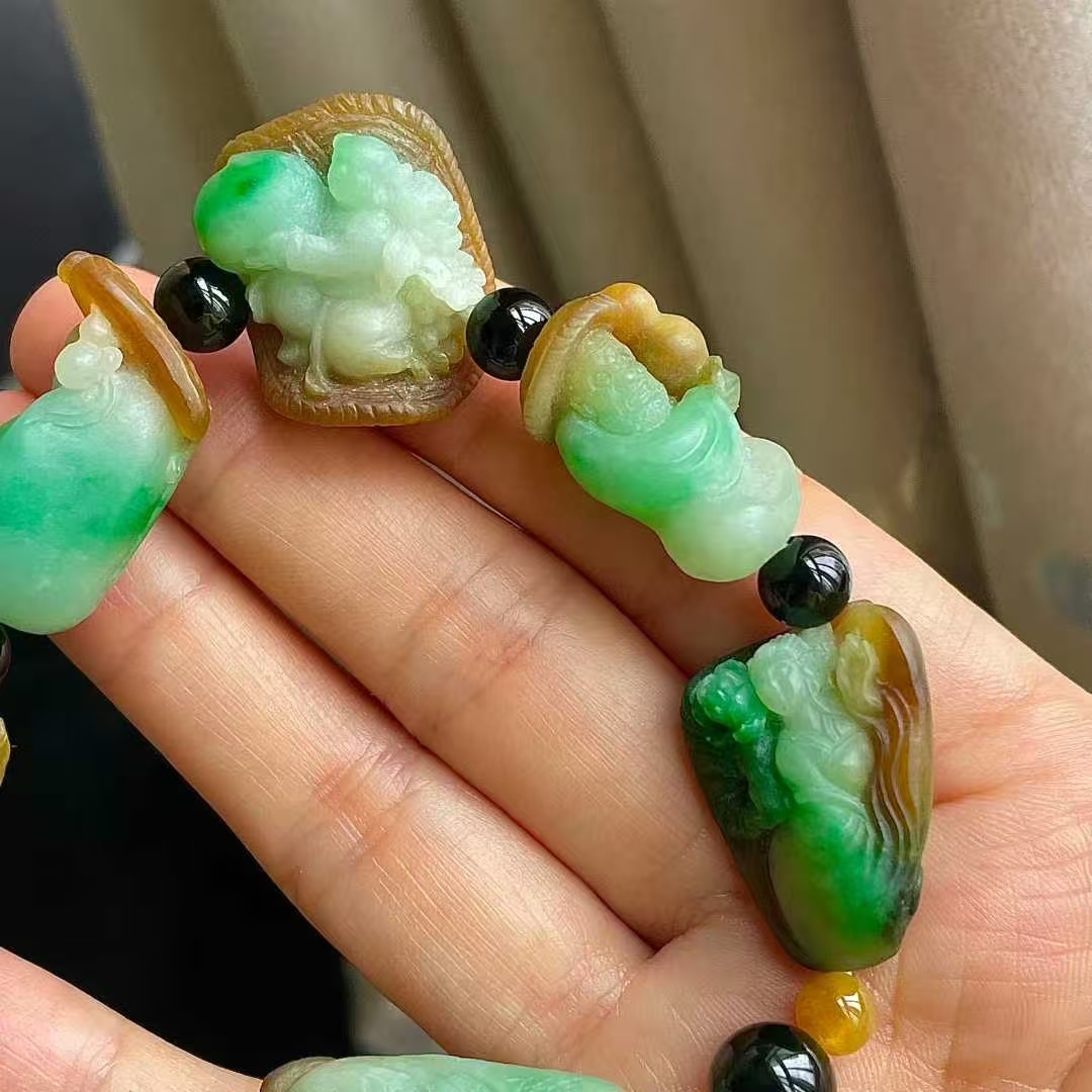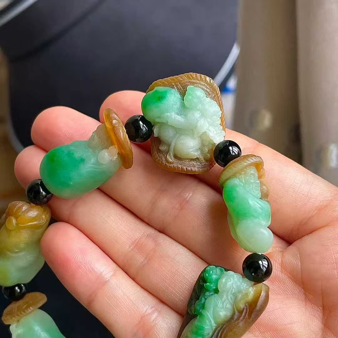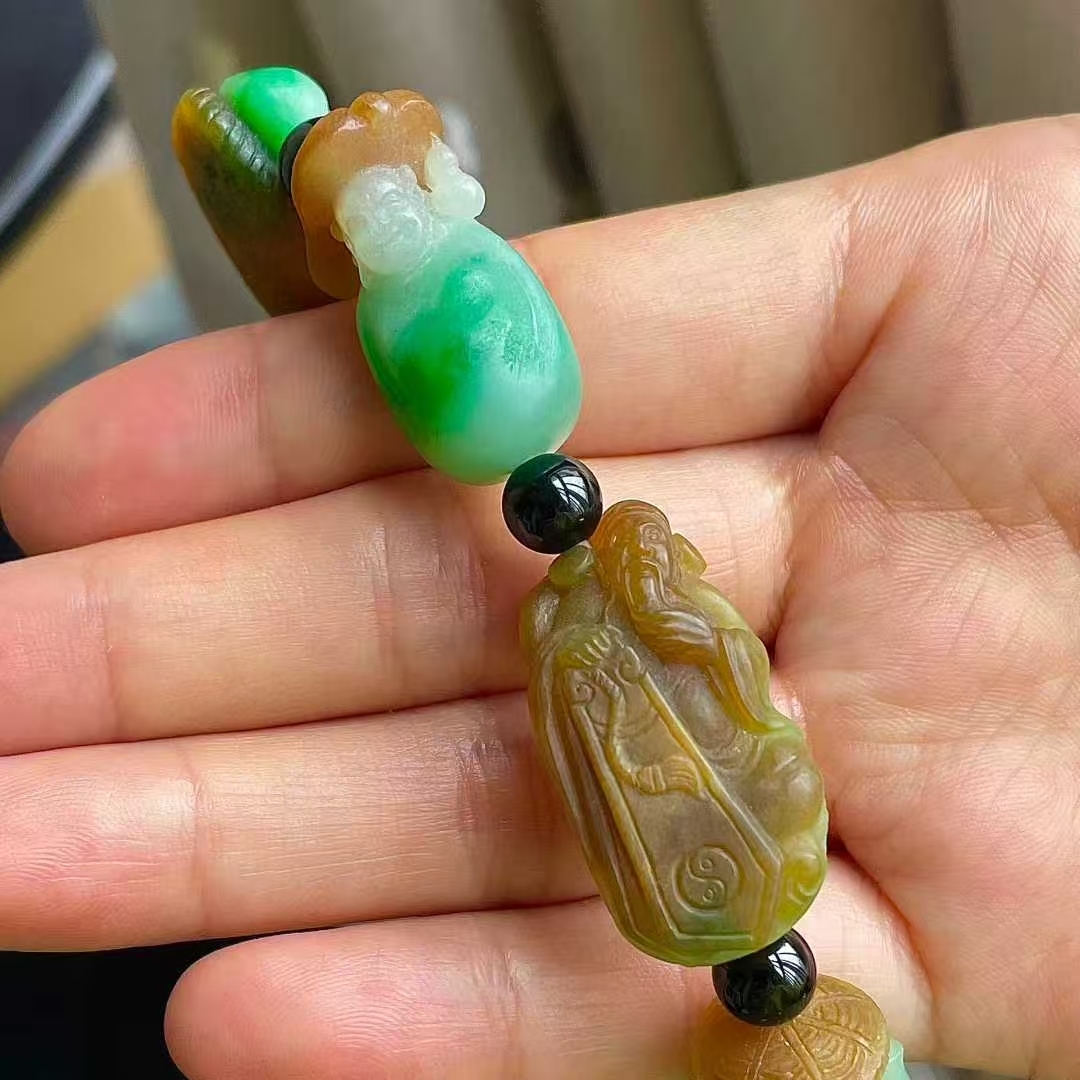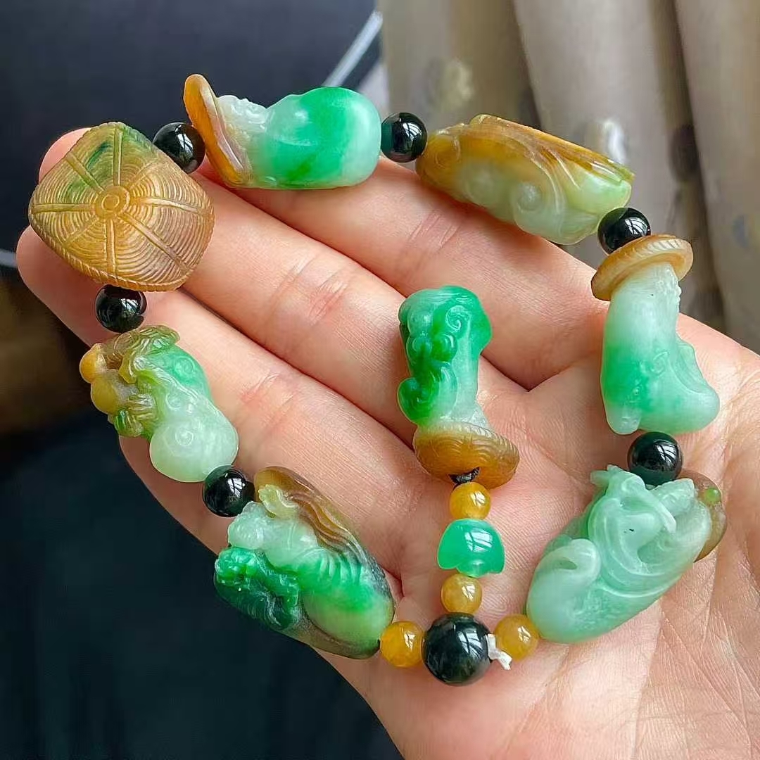 • 翡翠黃加綠八仙手串,天然翡翠A玉, 緬甸玉, Jade, Jadeite