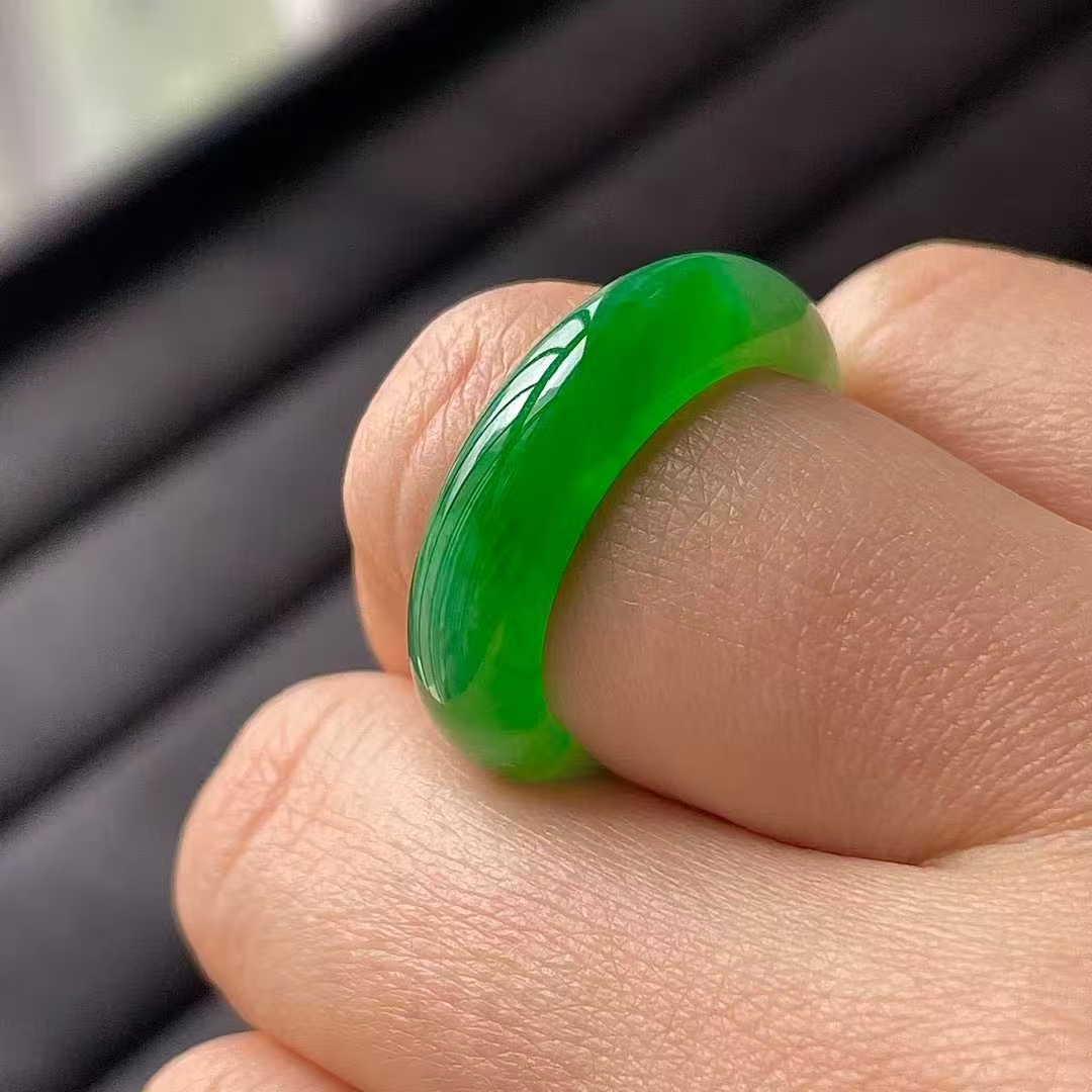 • 翡翠冰辣綠指環 (圈口 13號),天然翡翠A玉, 緬甸玉, Jade, Jadeite
