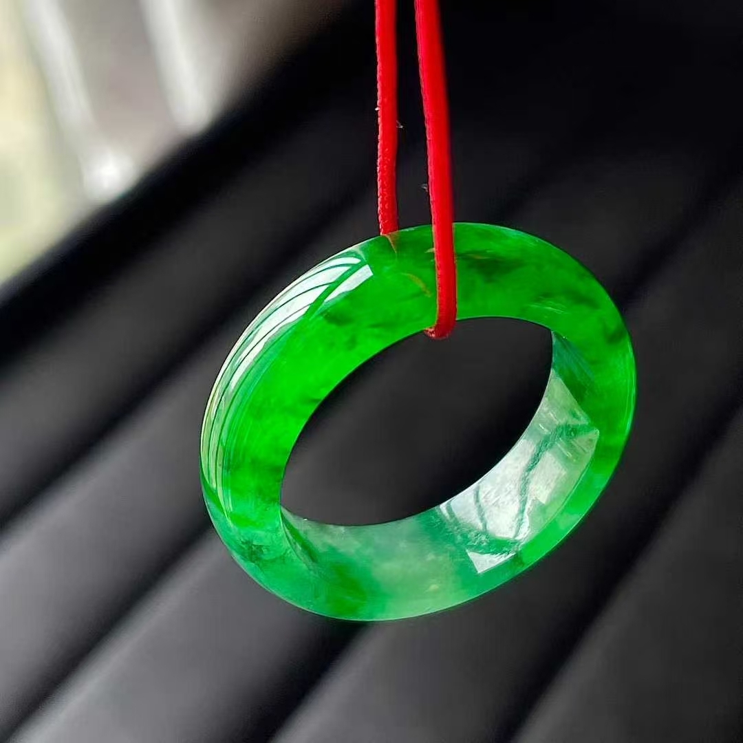 天然翡翠A玉,緬料,無紋無裂,色澤艷麗,水頭足。