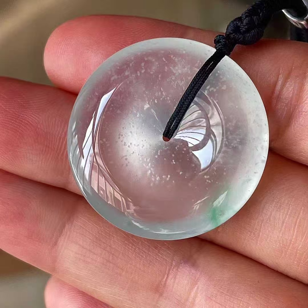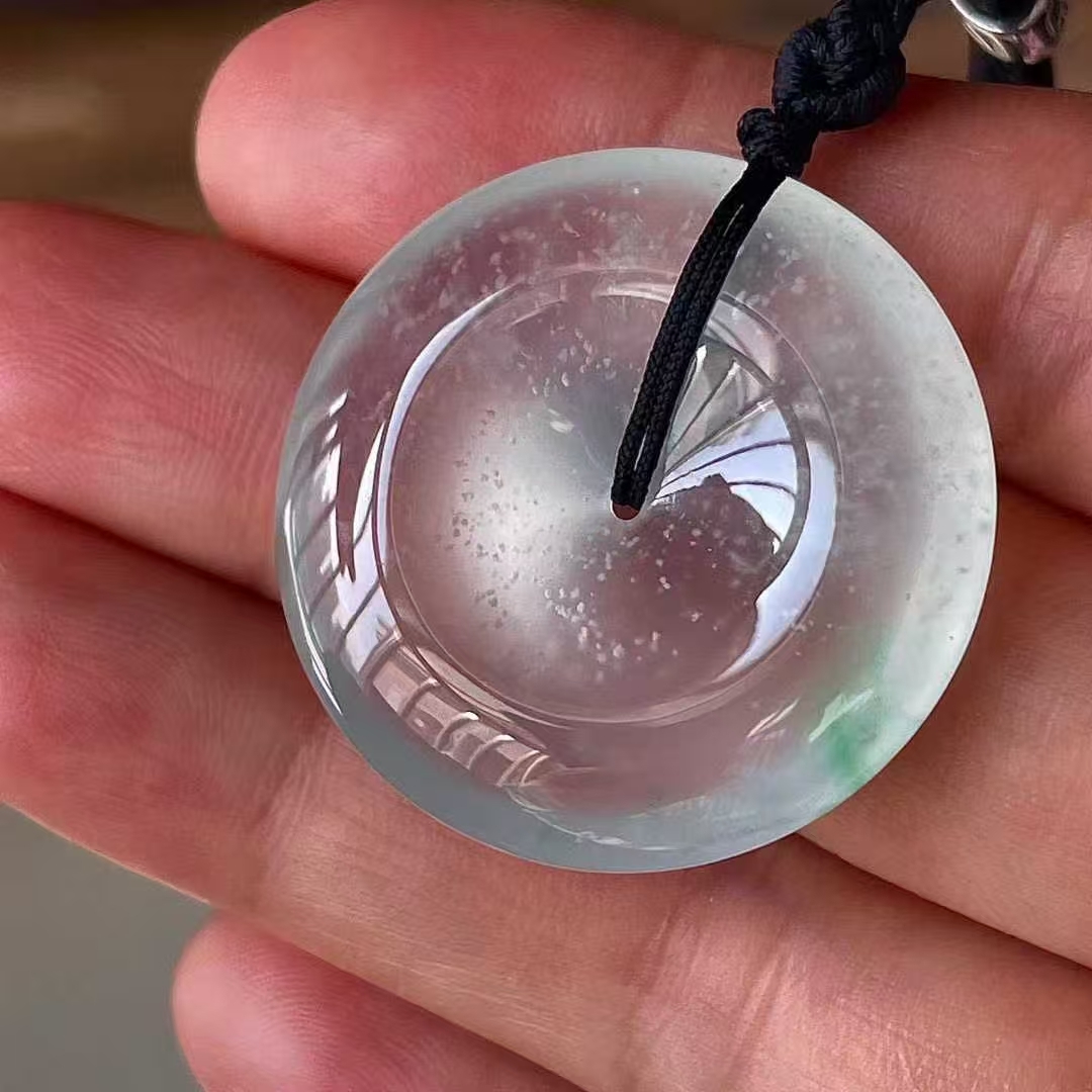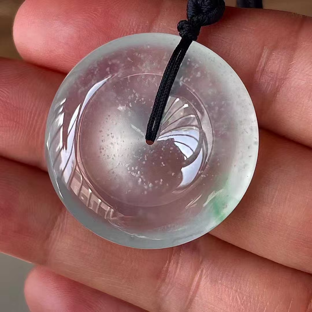• 翡翠高冰飄綠平安扣 (28.6mm直徑),天然翡翠A玉, 緬甸玉, Jade, Jadeite