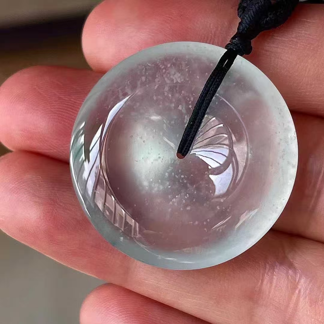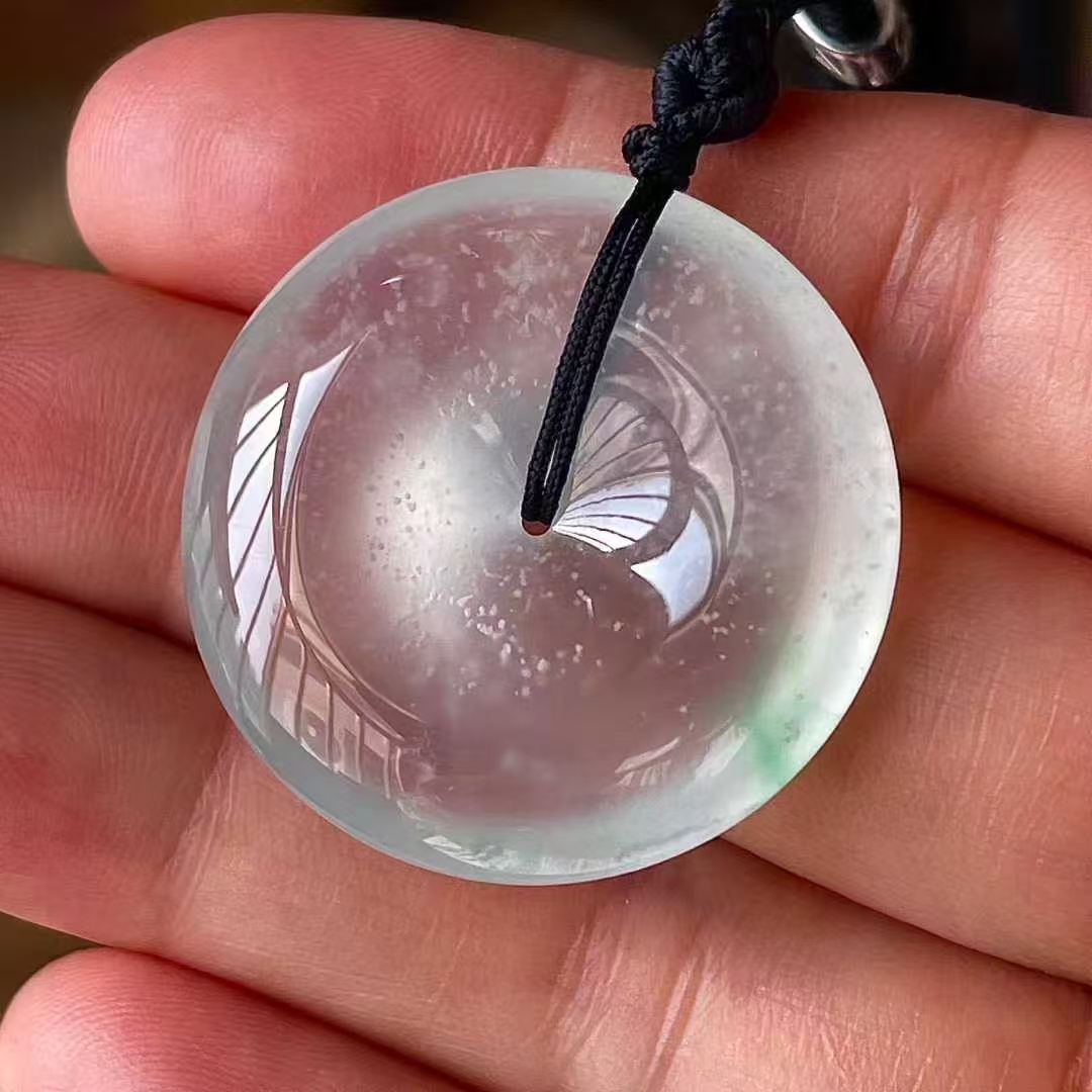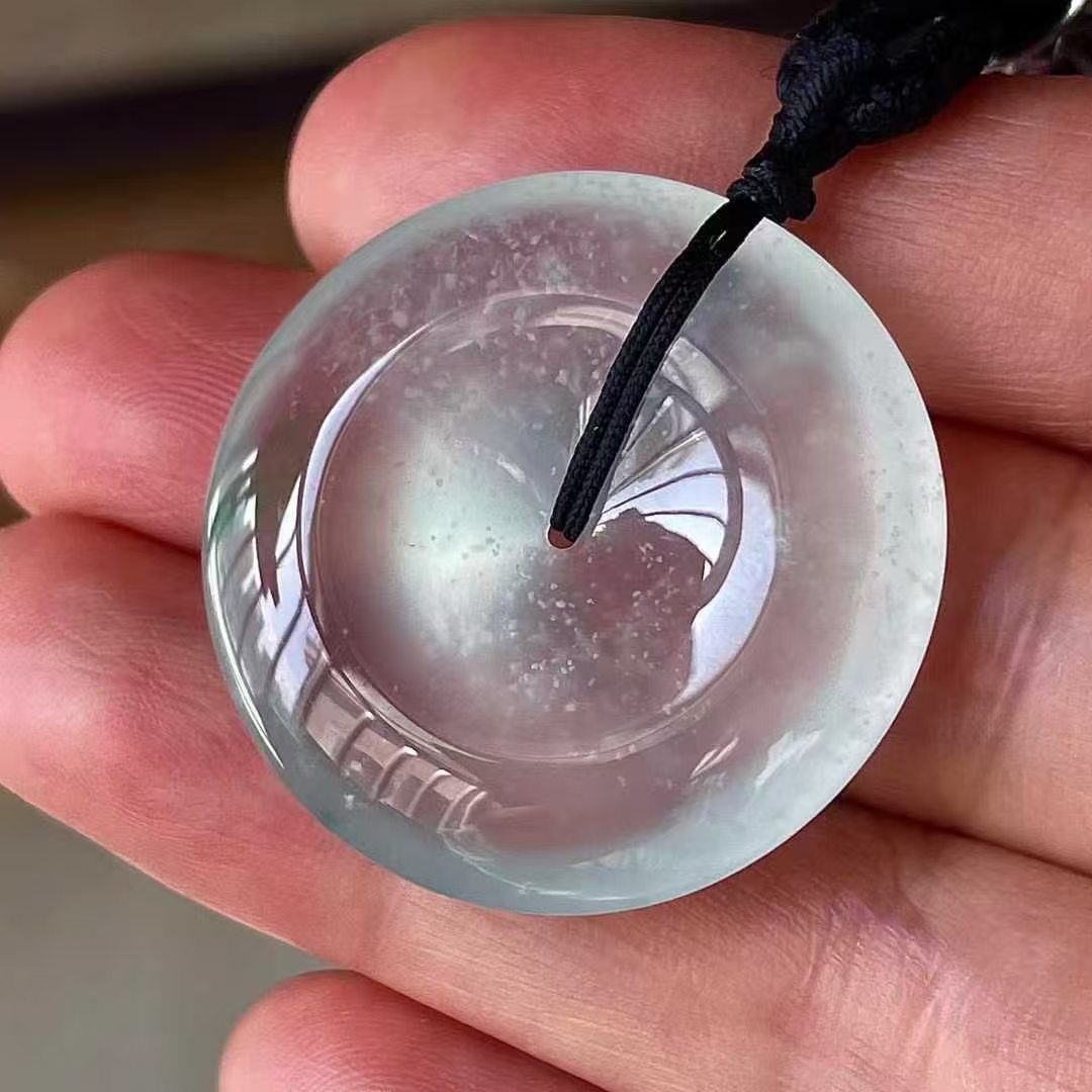 • 翡翠高冰飄綠平安扣 (28.6mm直徑),天然翡翠A玉, 緬甸玉, Jade, Jadeite