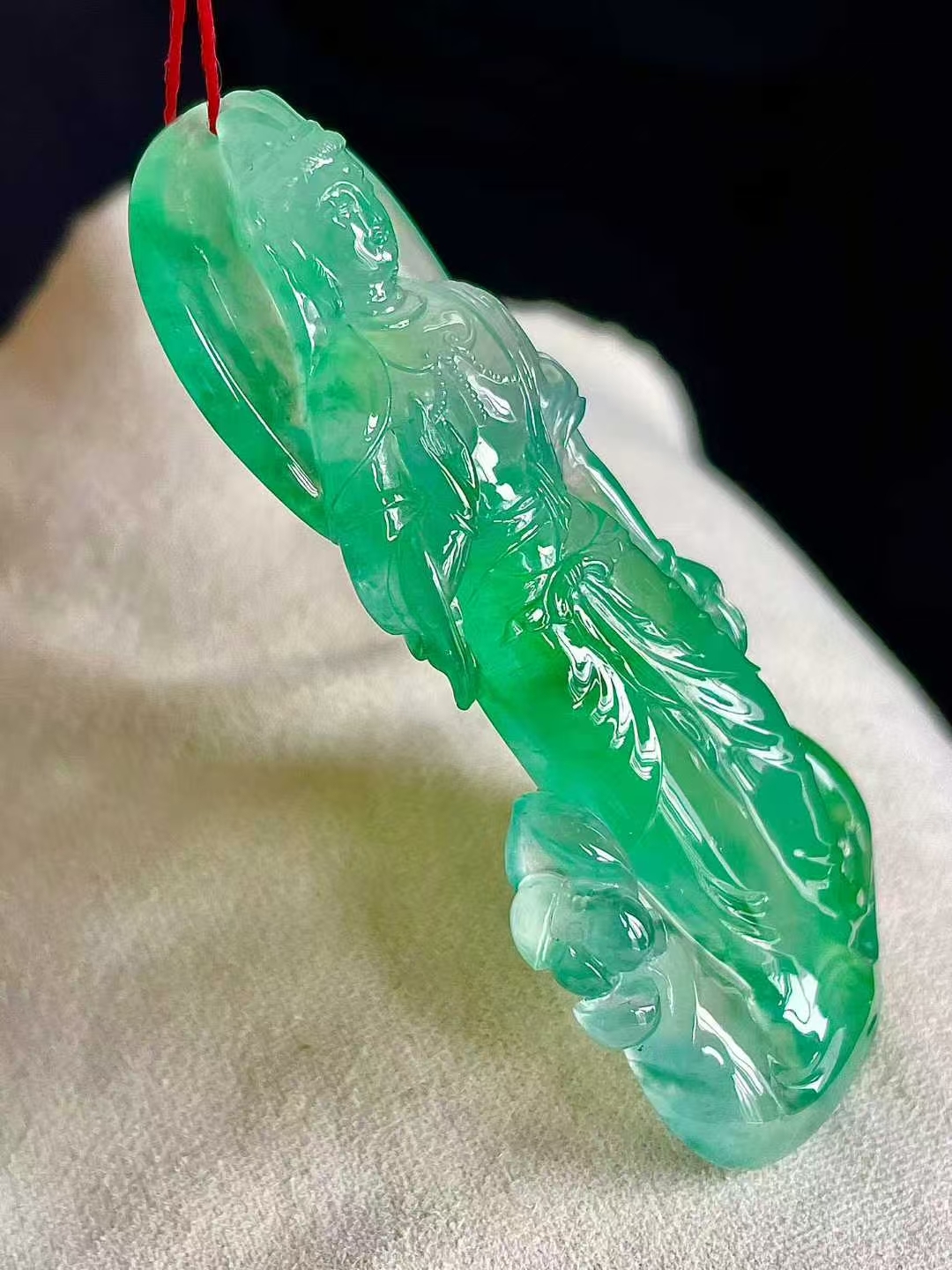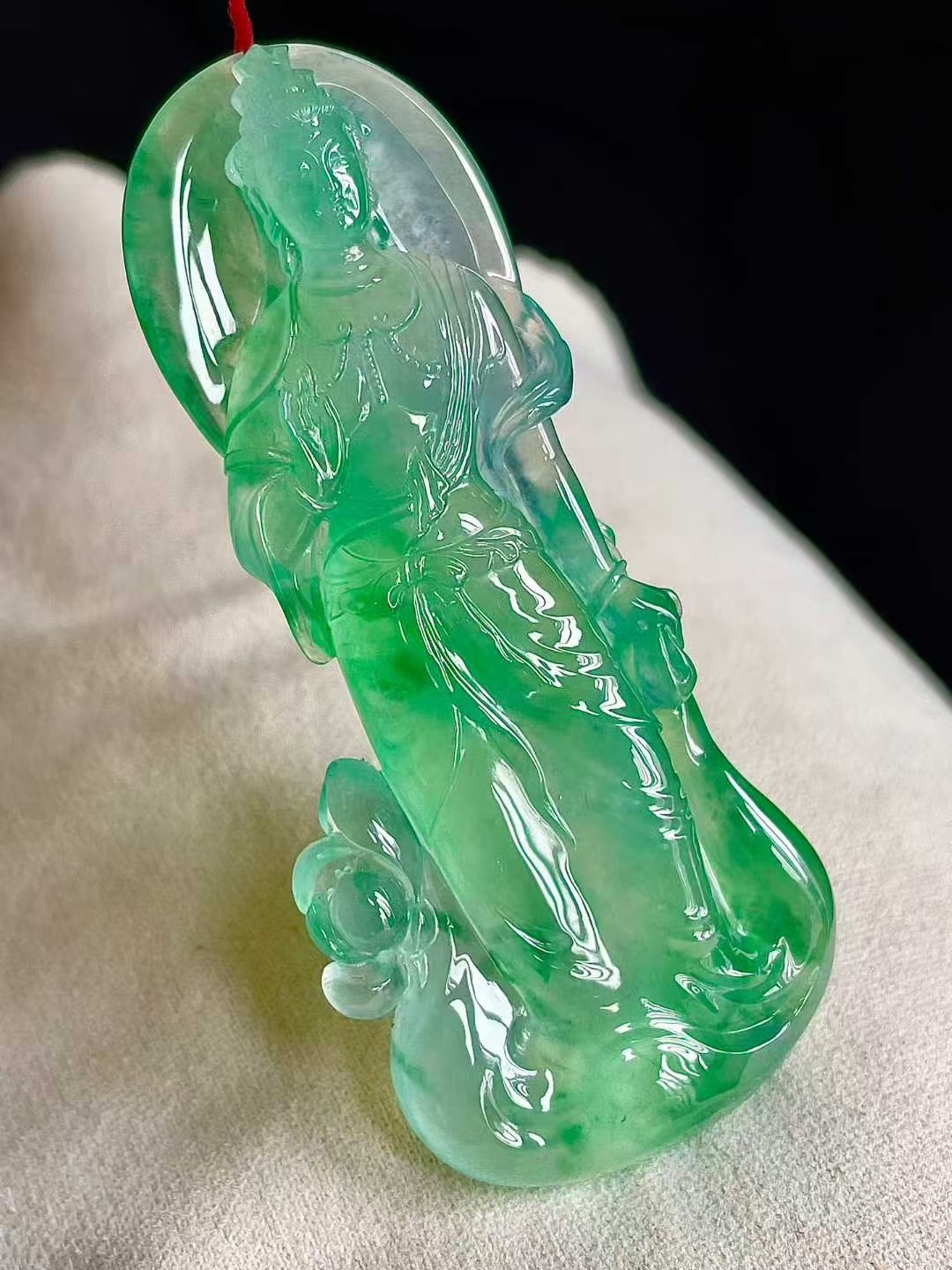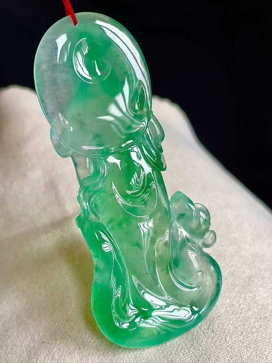• 翡翠玻璃種木那綠自在觀音,天然翡翠A玉, 緬甸玉, Jade, Jadeite