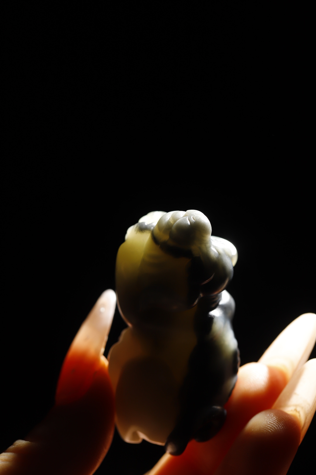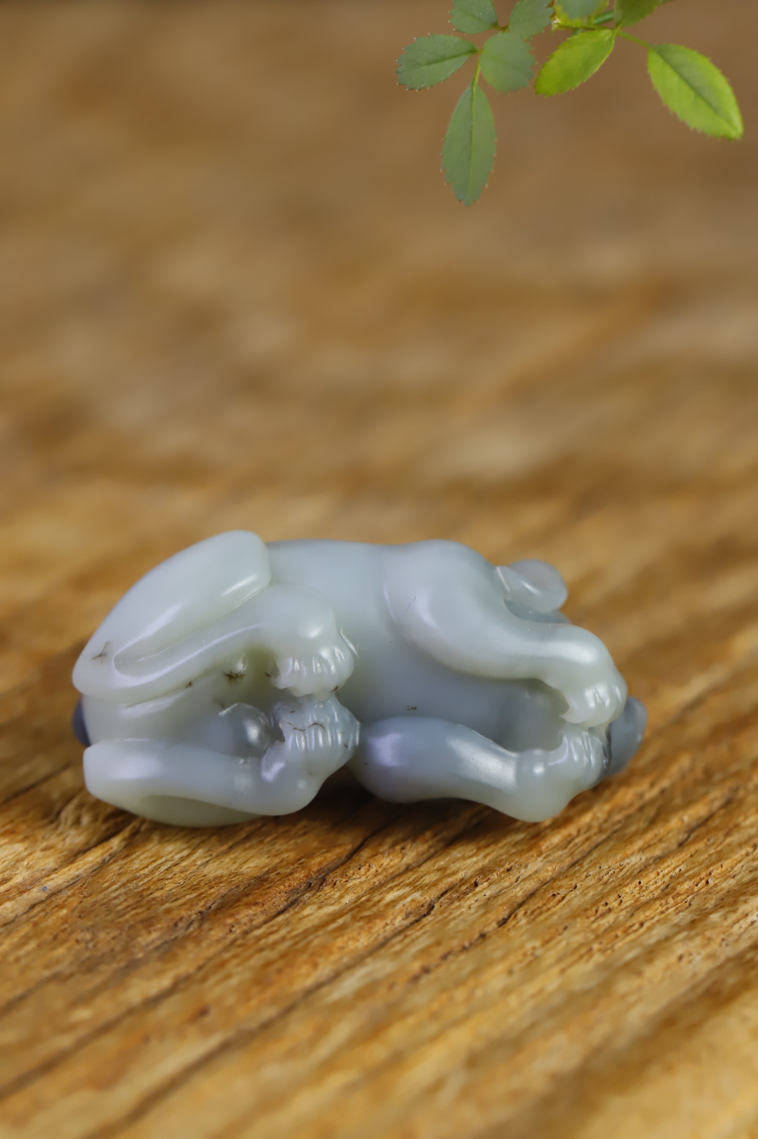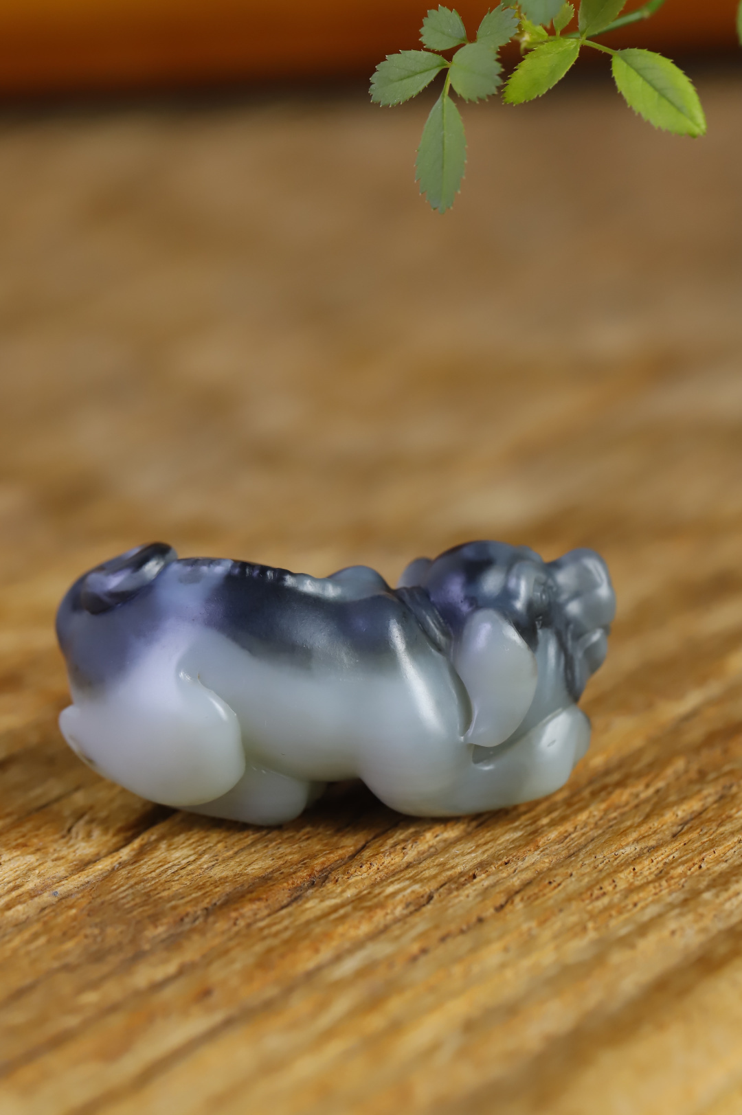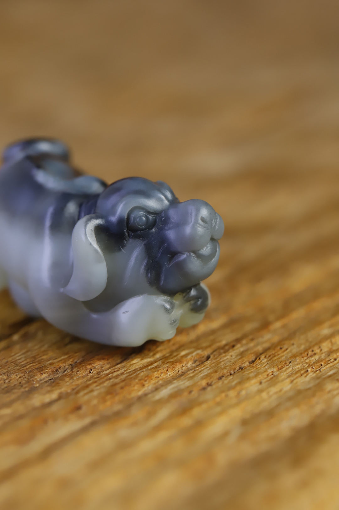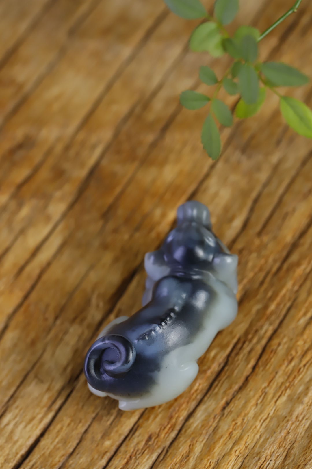 天然和田玉青花,立體雕刻旺財,犬體態修長,神情溫順,頑皮有趣,狗是人類最忠誠的動物朋友之一,寓意一夜旺財,自古就有狗來富貴的說法,旺財、旺運、旺事財源廣進。