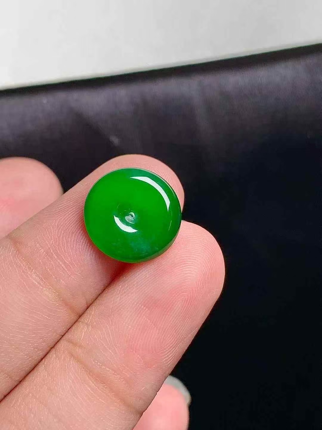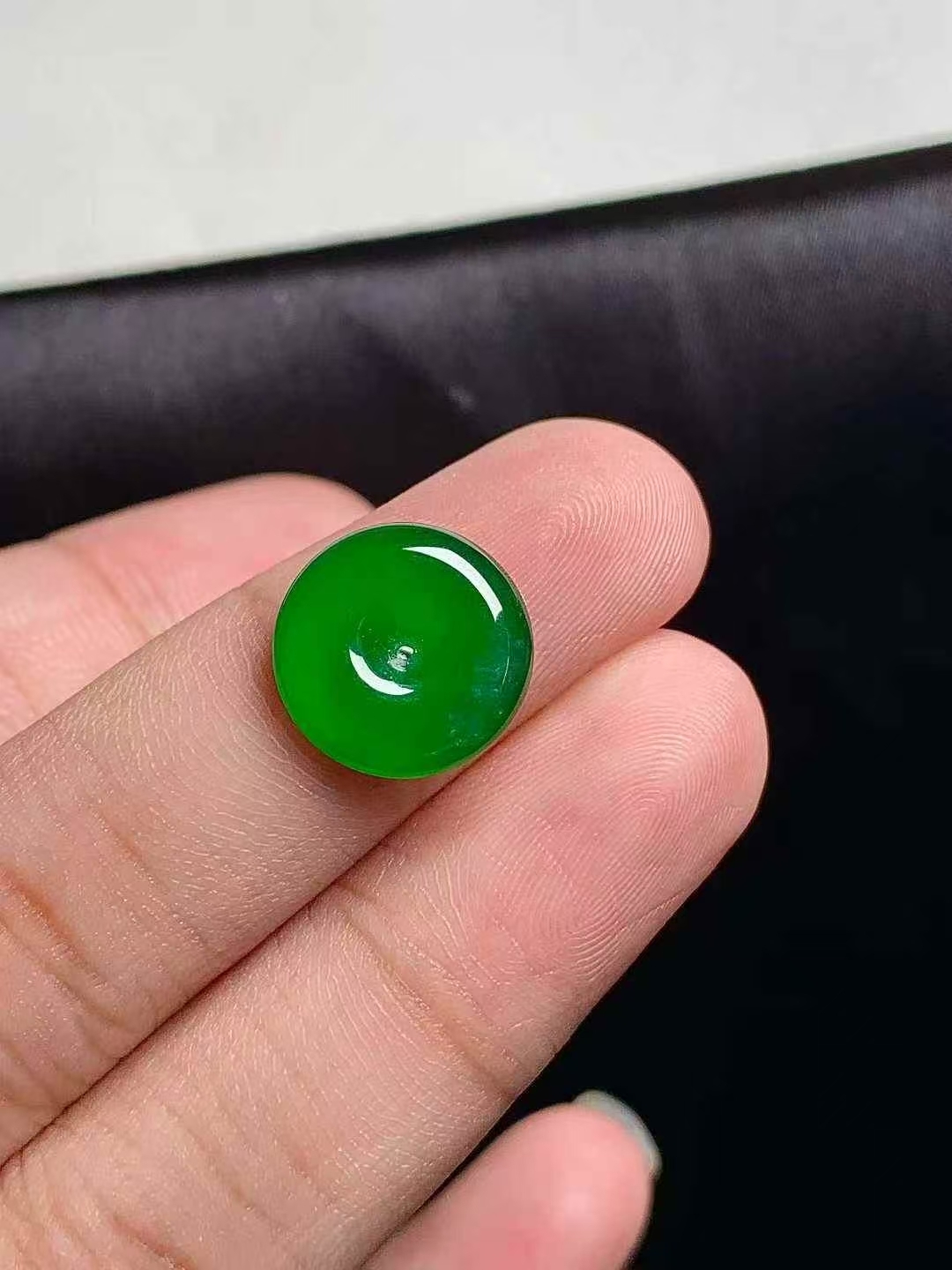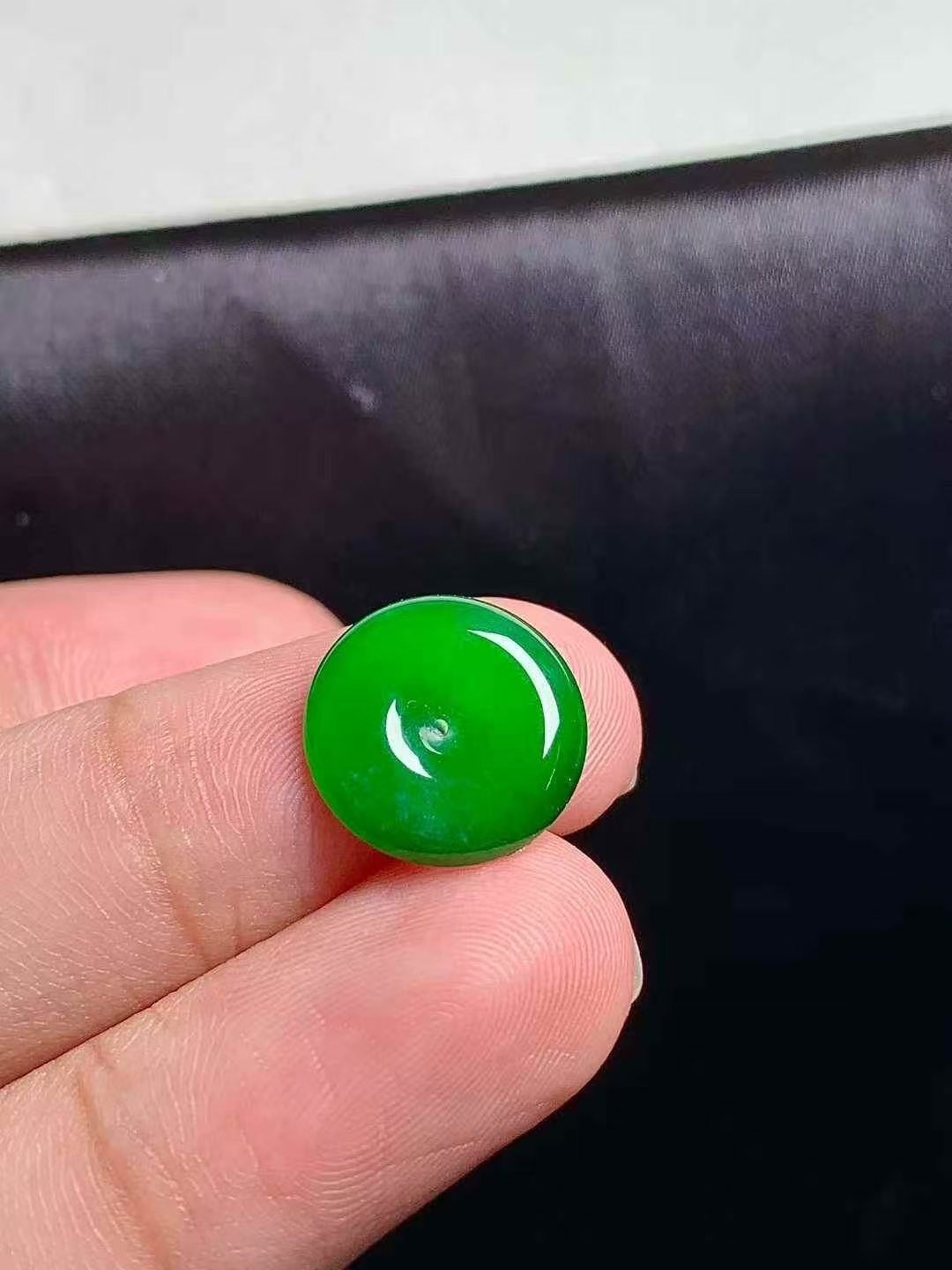 天然翡翠A玉,種老細膩,色陽濃郁起膠。