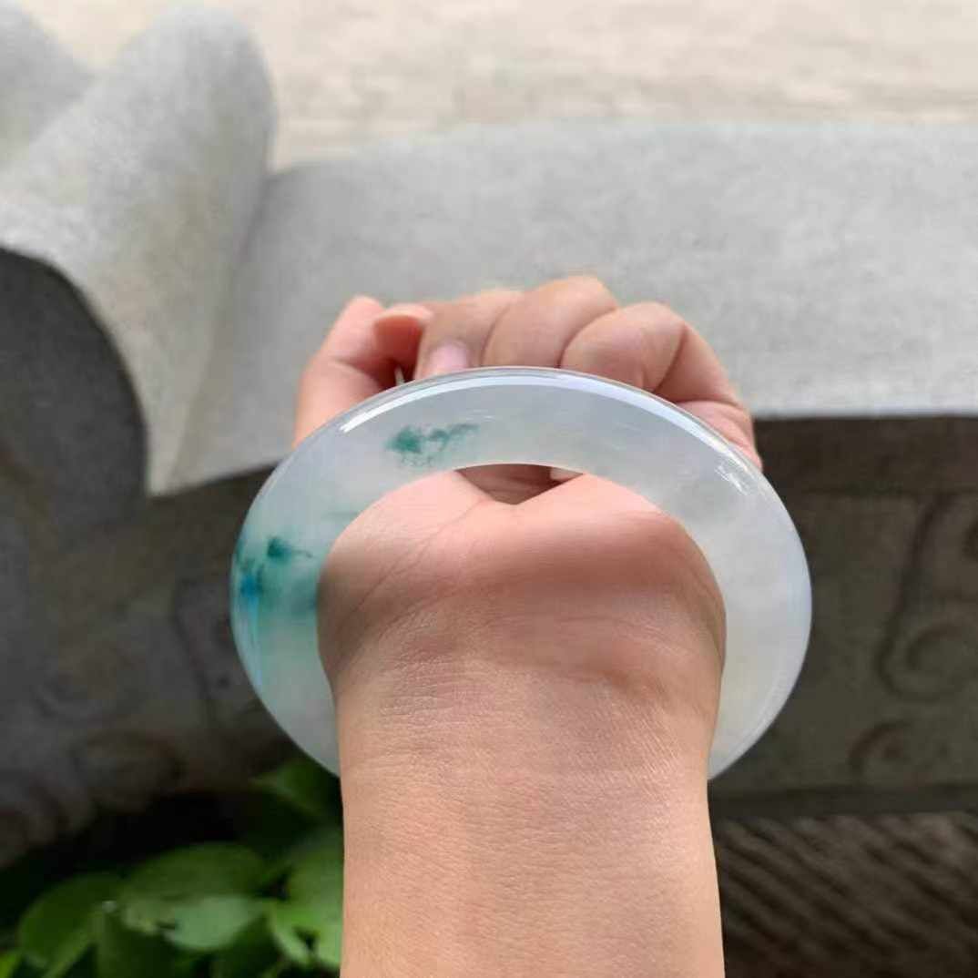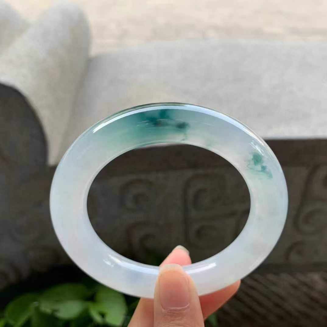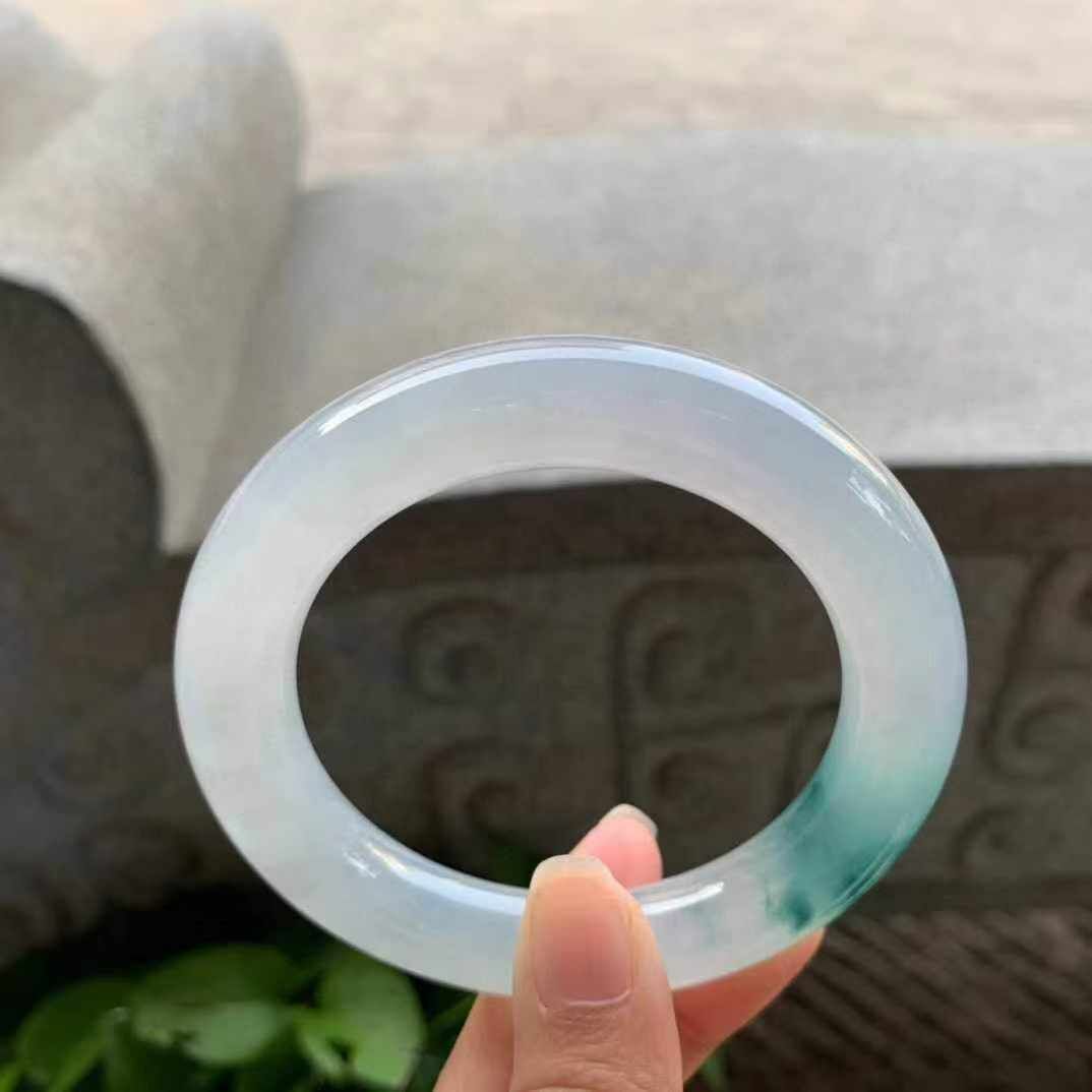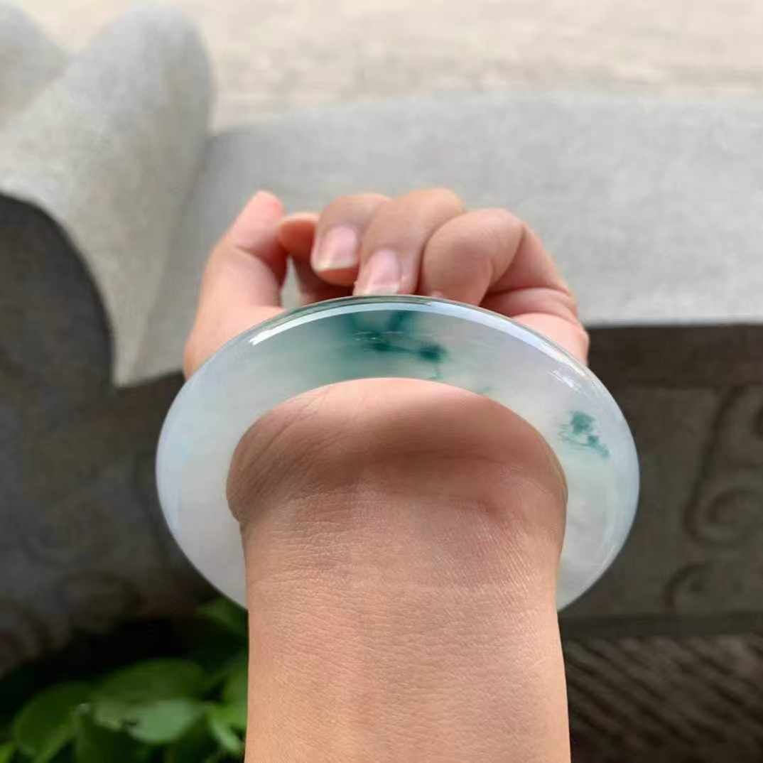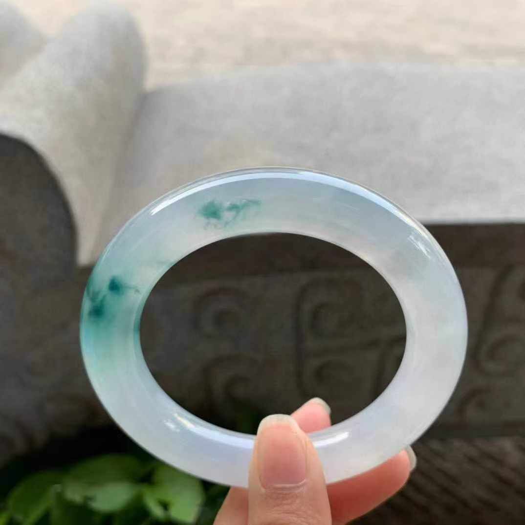1275610 56.7mm翡翠高冰飄花圓條手鐲