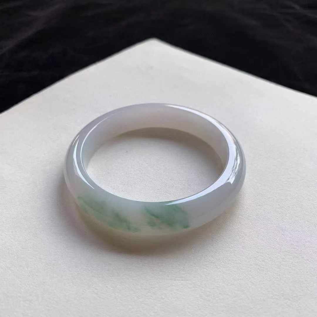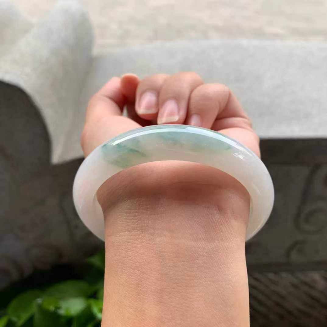 • 翡翠冰飄花正圈手鐲,天然翡翠A玉, 緬甸玉, Jade, Jadeite