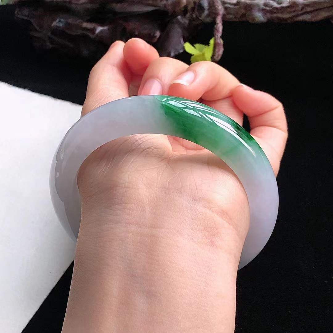 • 翡翠冰糯淡紫底飄綠正圈手鐲,天然翡翠A玉, 緬甸玉, Jade, Jadeite