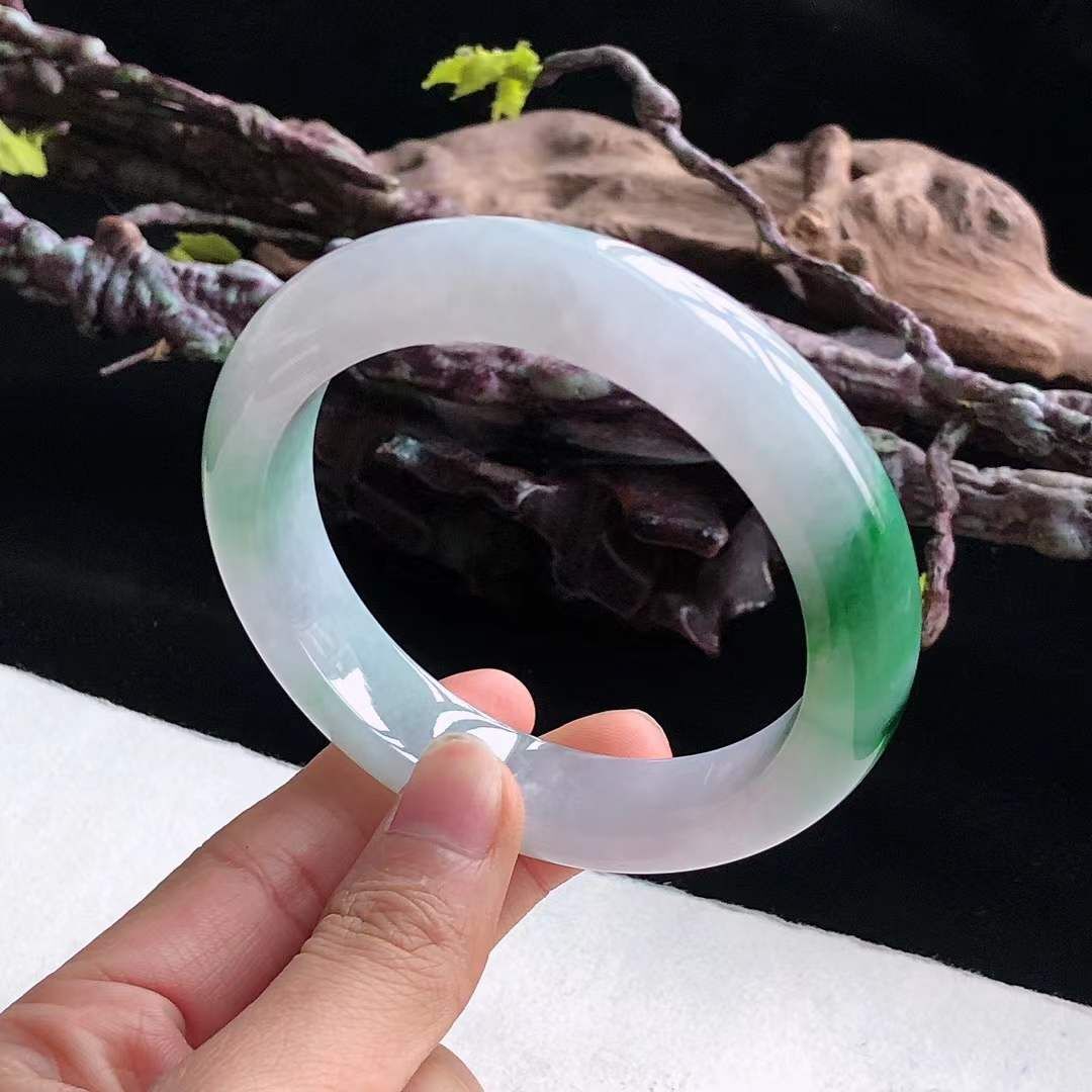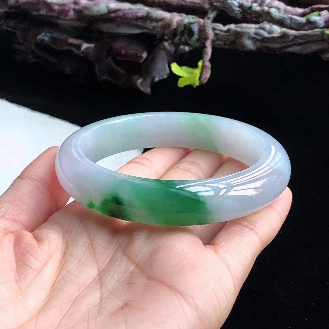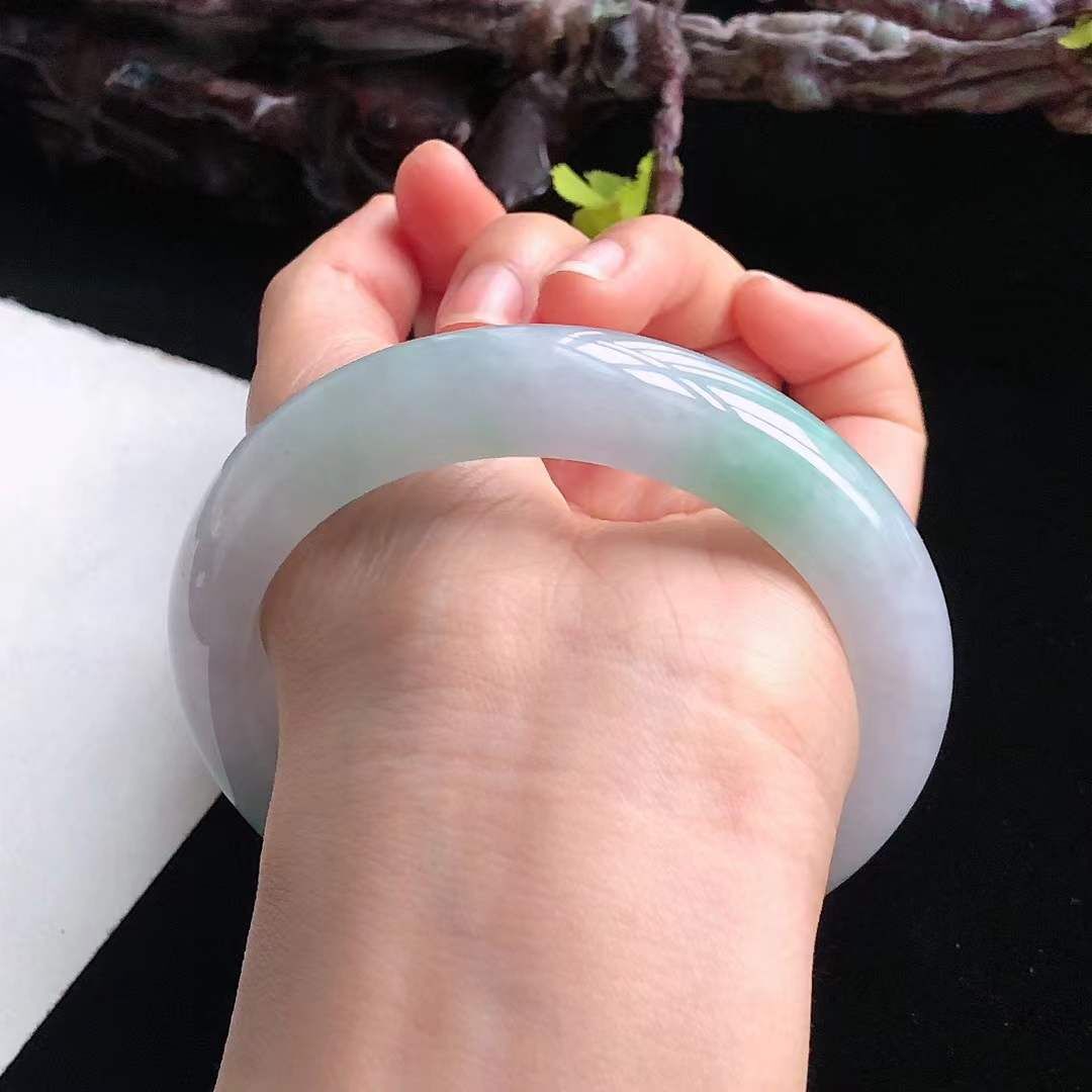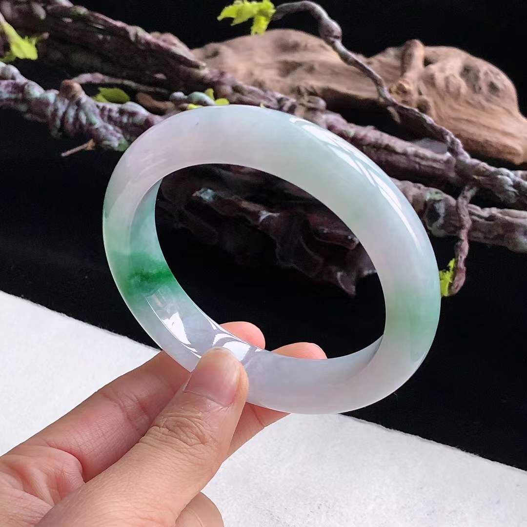 1292665 58.6mm翡翠冰糯淡紫底飄綠正圈手鐲