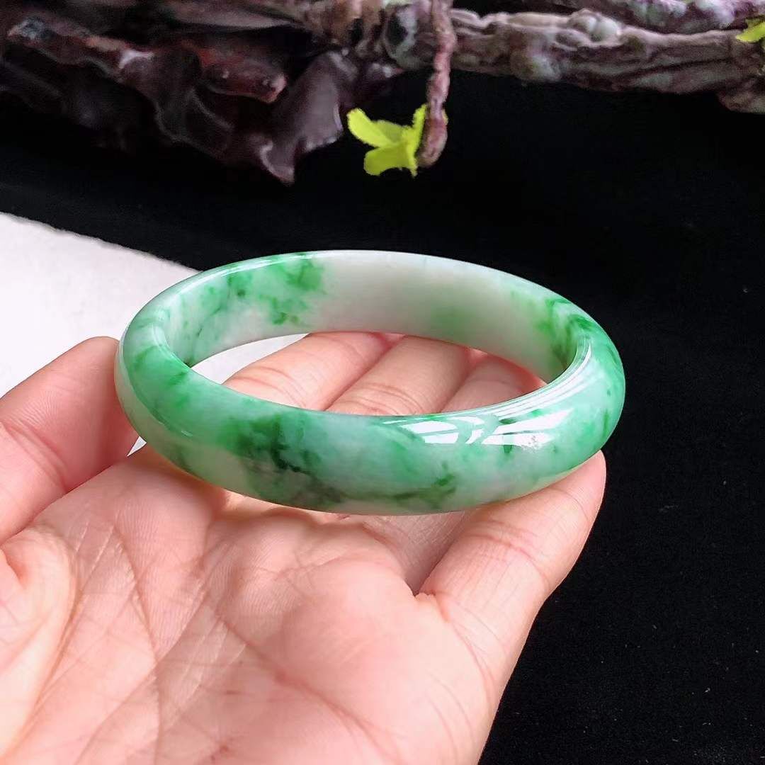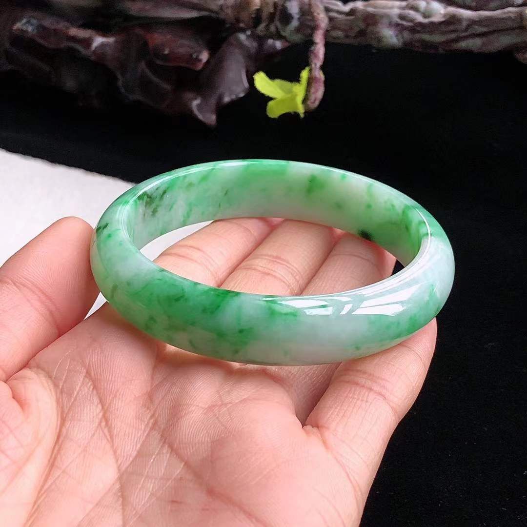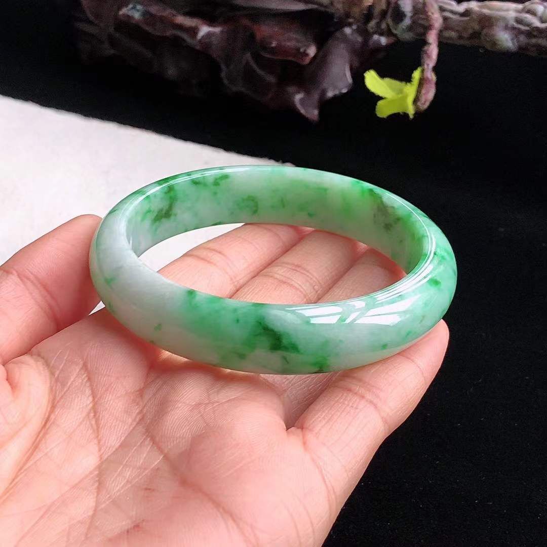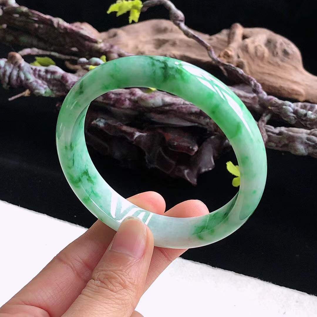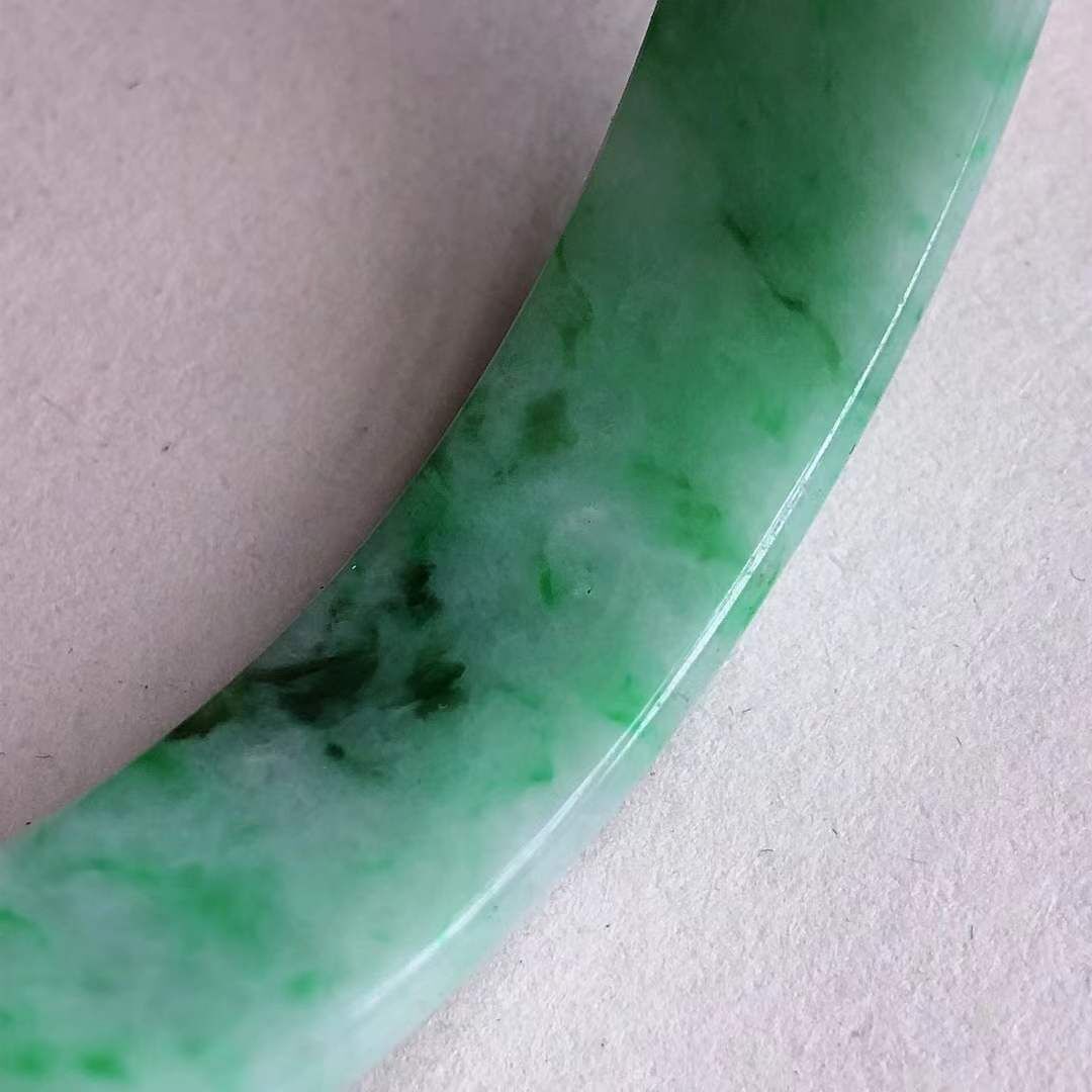 1292668 54.6mm翡翠冰糯飄辣綠正圈手鐲