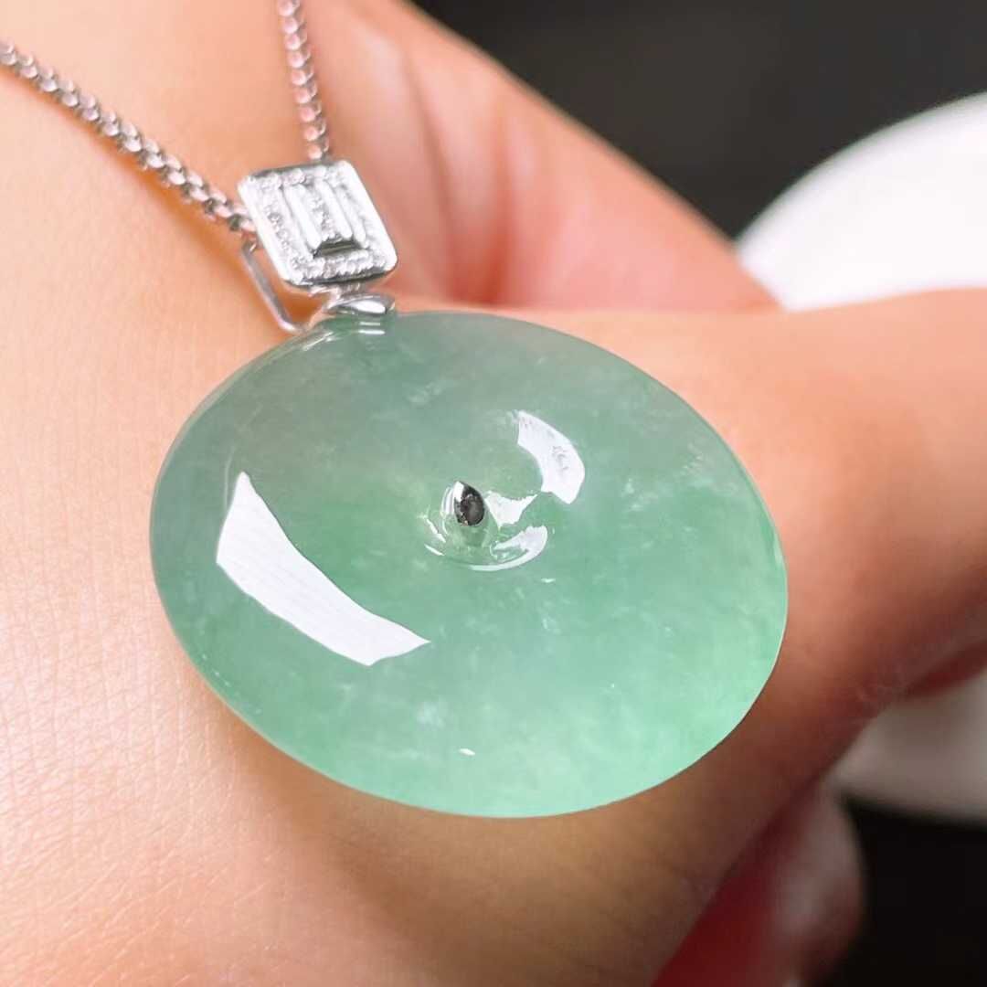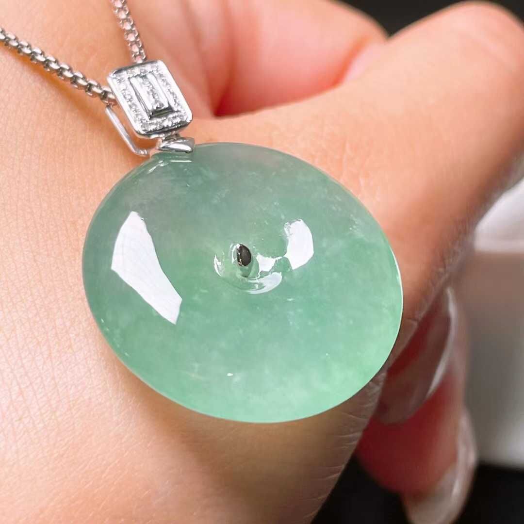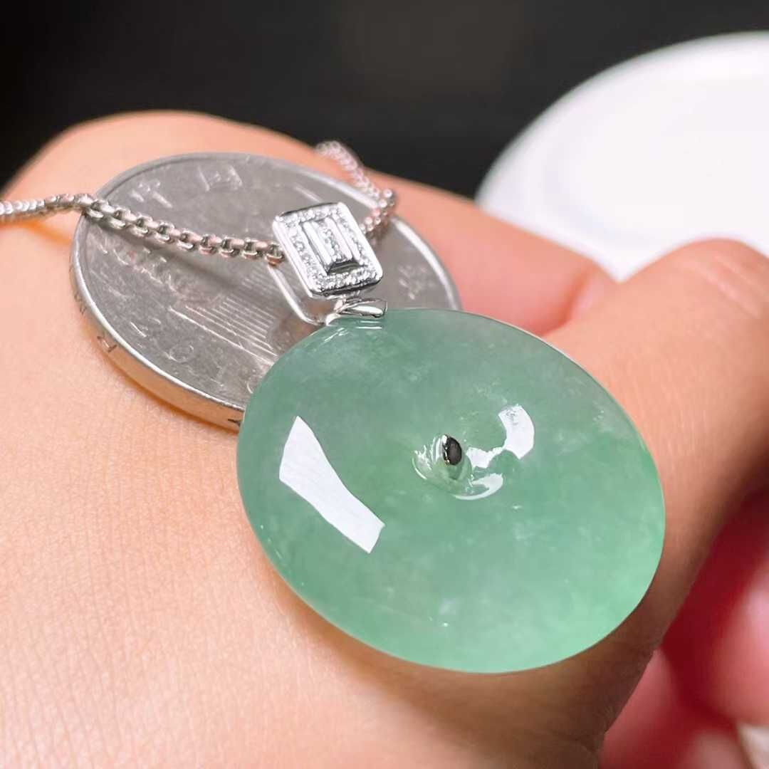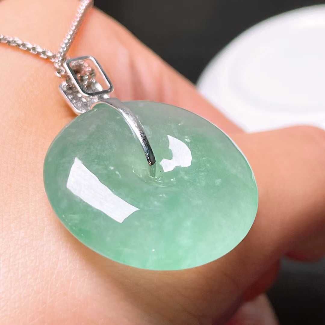 • 翡翠平安扣吊墜 (23.9mm直徑),天然翡翠A玉, 緬甸玉, Jade, Jadeite
