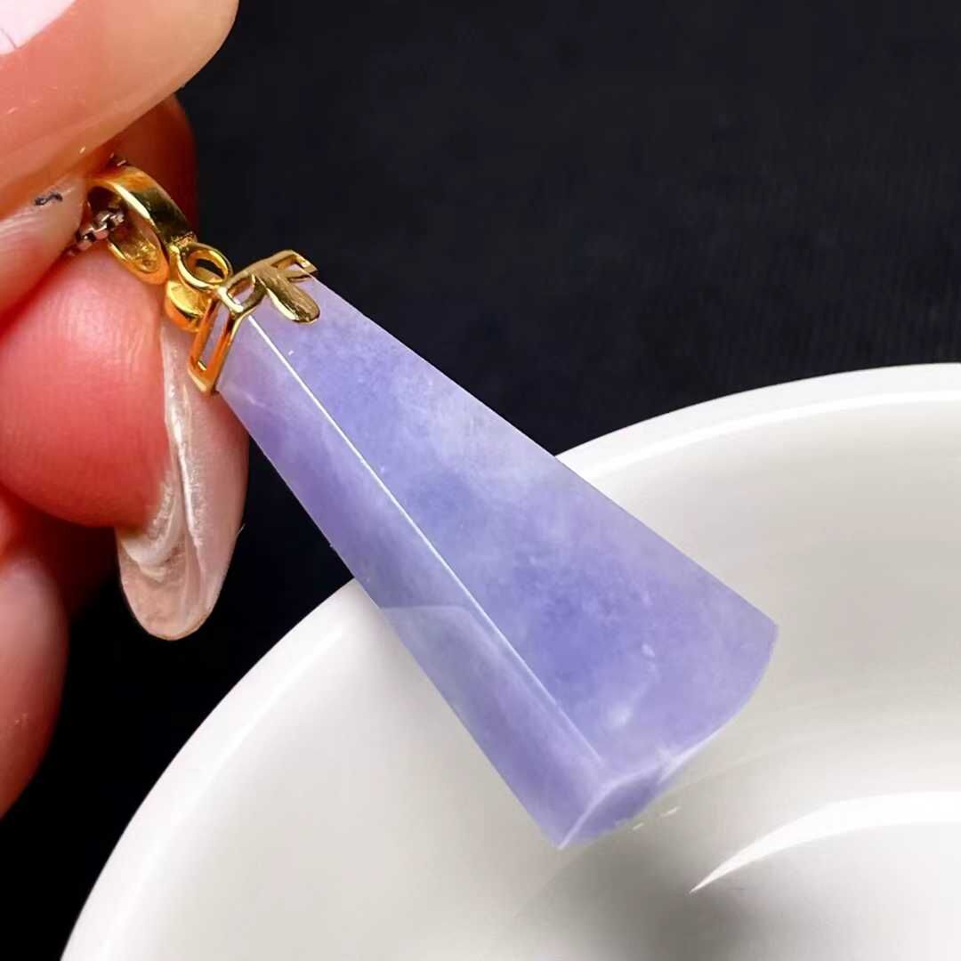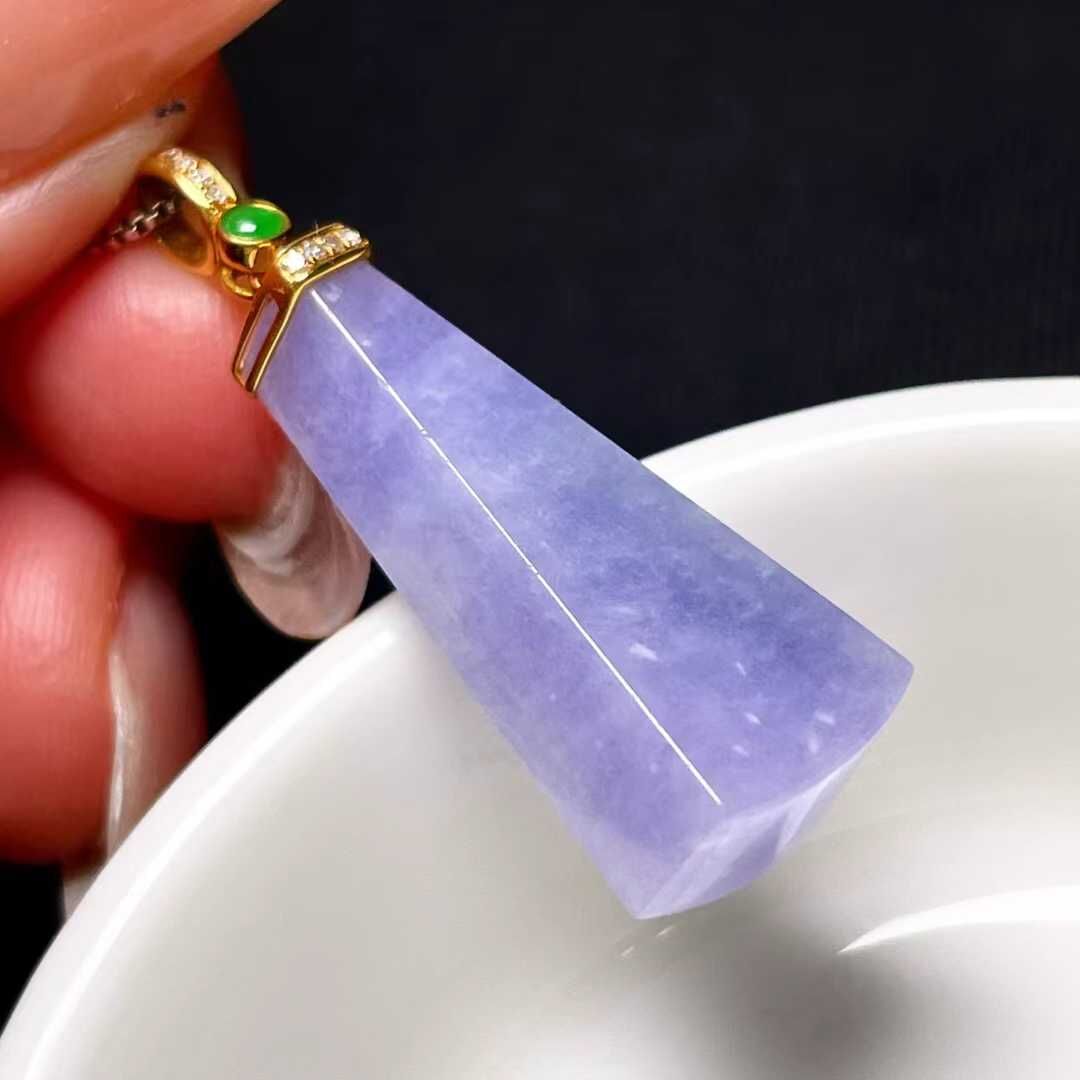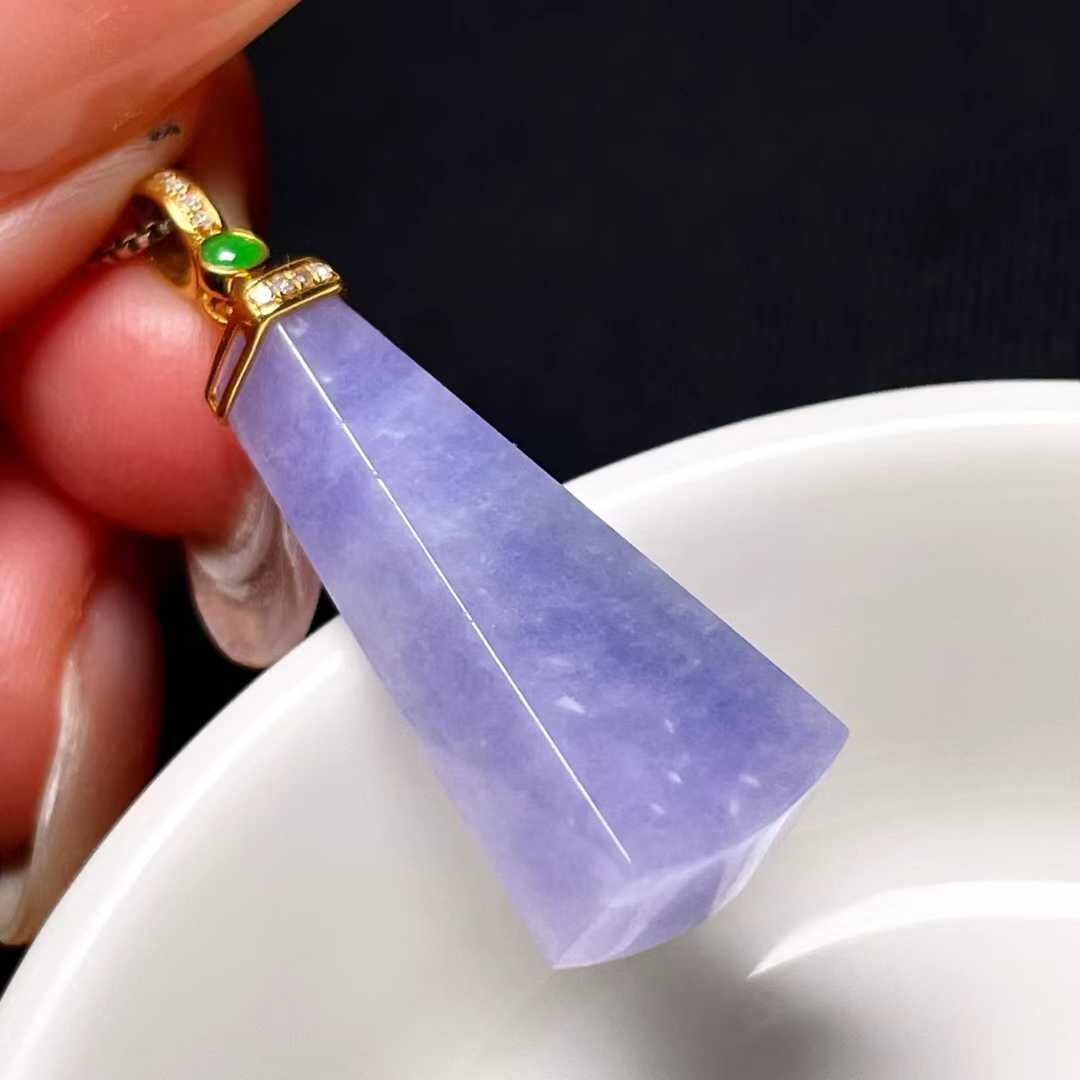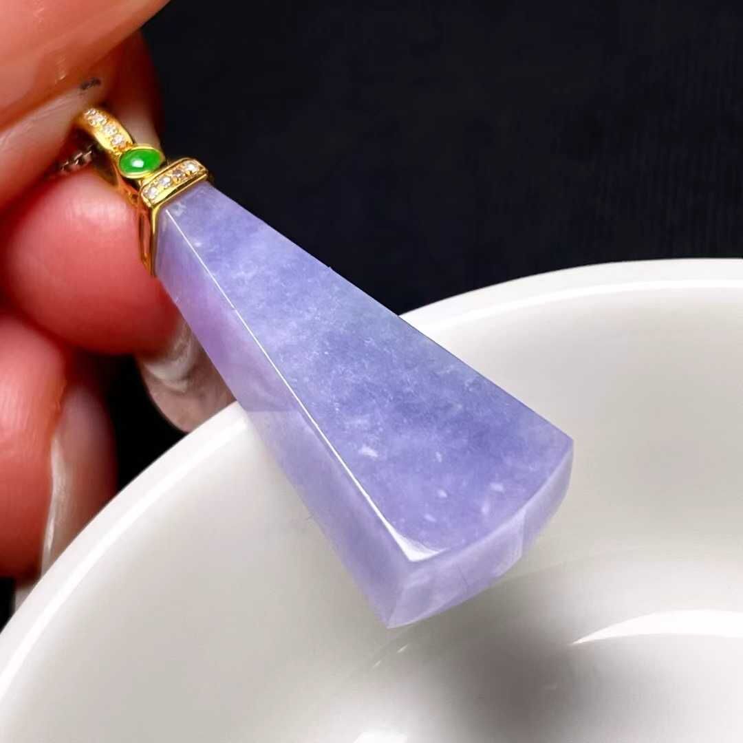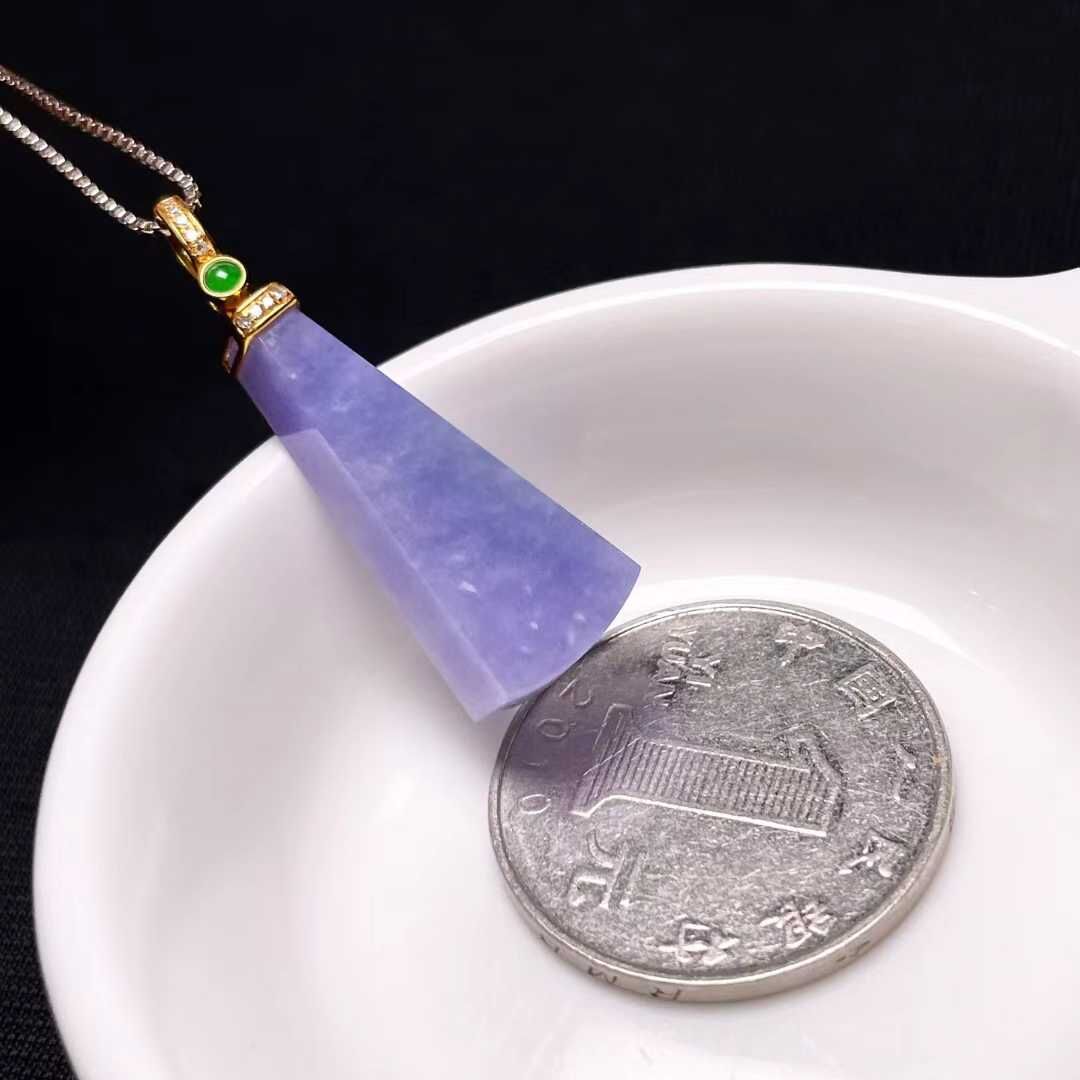 天然翡翠A玉,緬料老坑冰種,紫羅蘭,18K金鑲嵌。