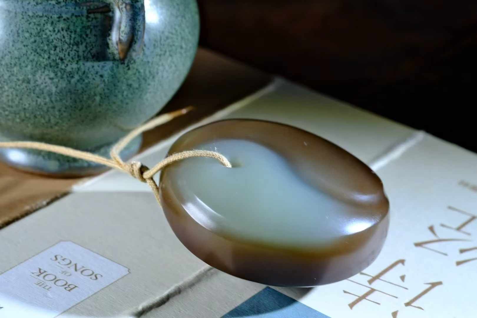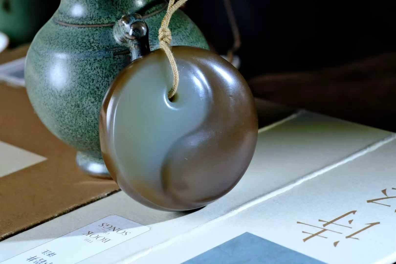天然和田玉,俏色絕美的☯牌這件作品之所以有趣,不僅在於“圖案”,而在於懂俏色的人一眼就能看出的門道,天然且有層次,形成太極陰陽,動靜之間見刀法。