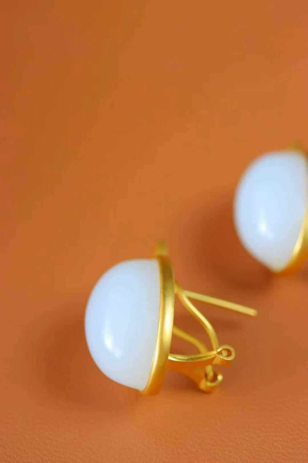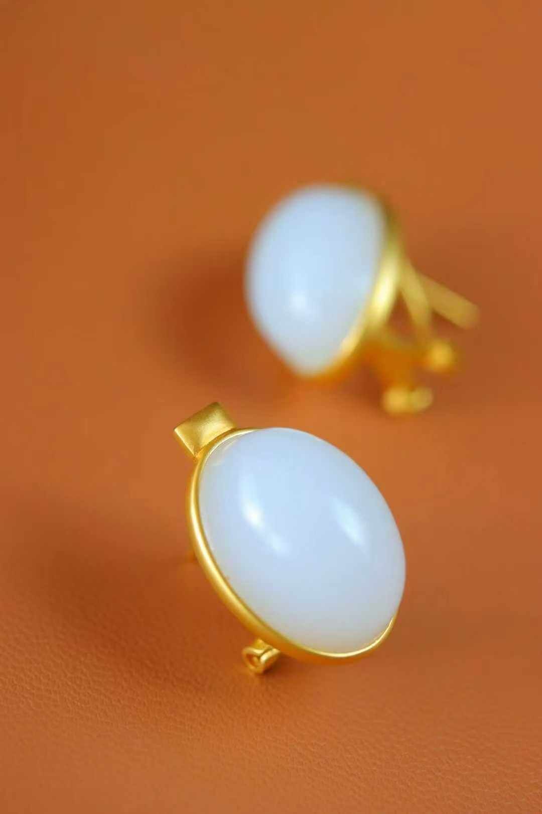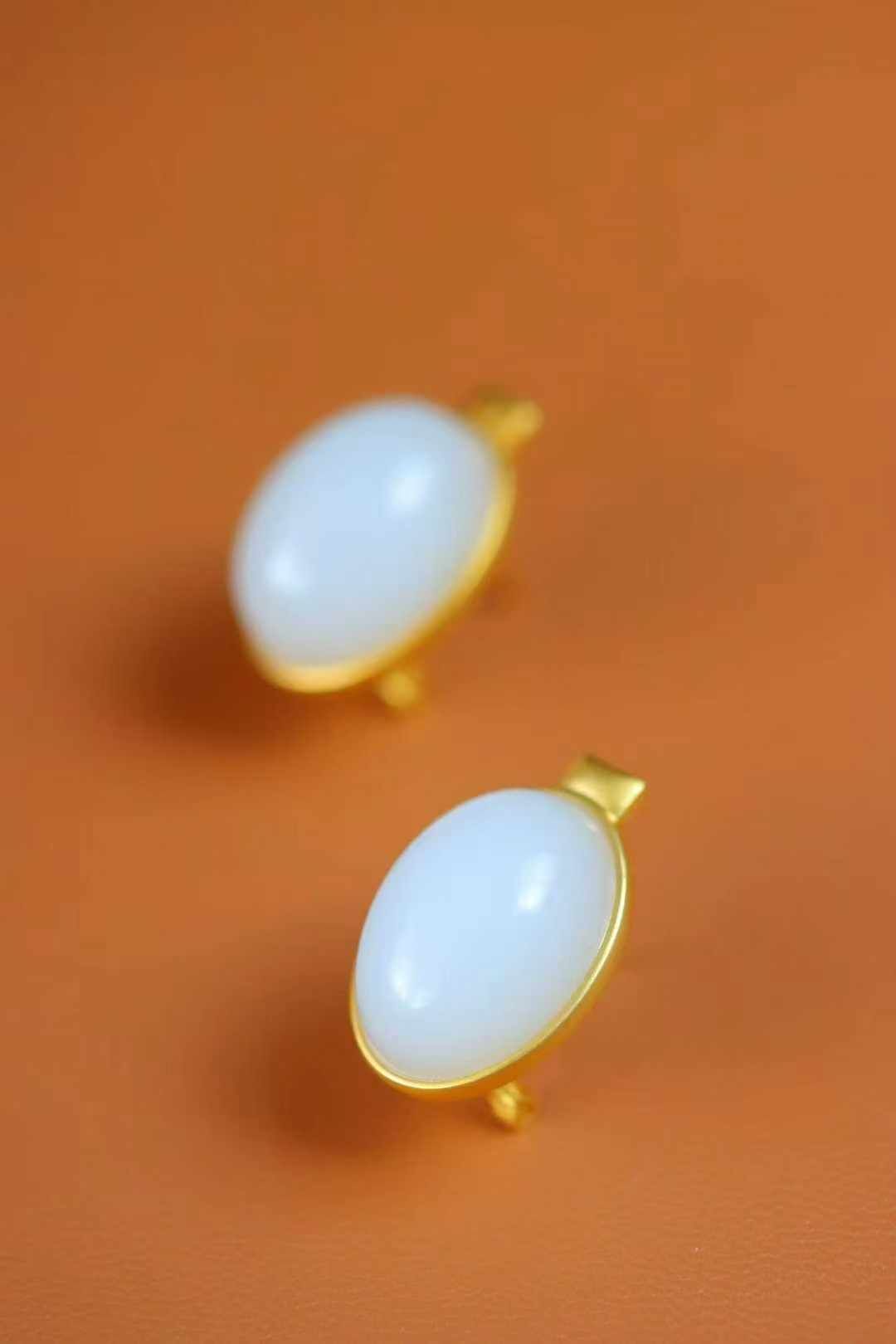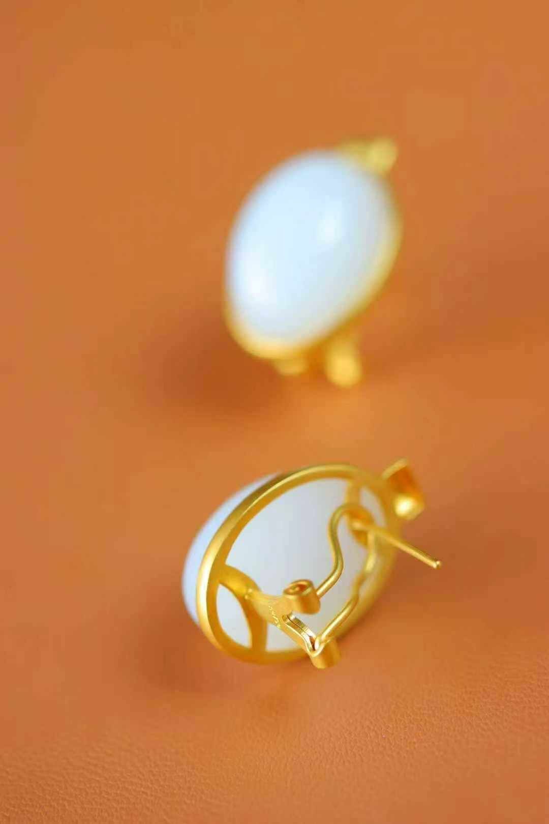 • 和田玉羊脂白玉耳釘,天然和田玉軟玉