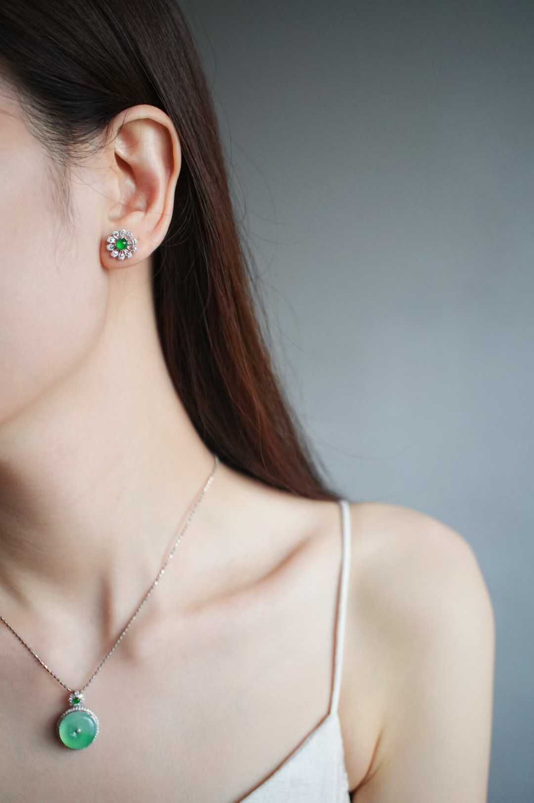 天然翡翠A玉,這品質太好了,明艷起光的料子,翠色太美了,起膠起光,離很遠都散發著光芒,18K重金鑽石豪鑲,完全就是高級珠寶的感覺,太超值。