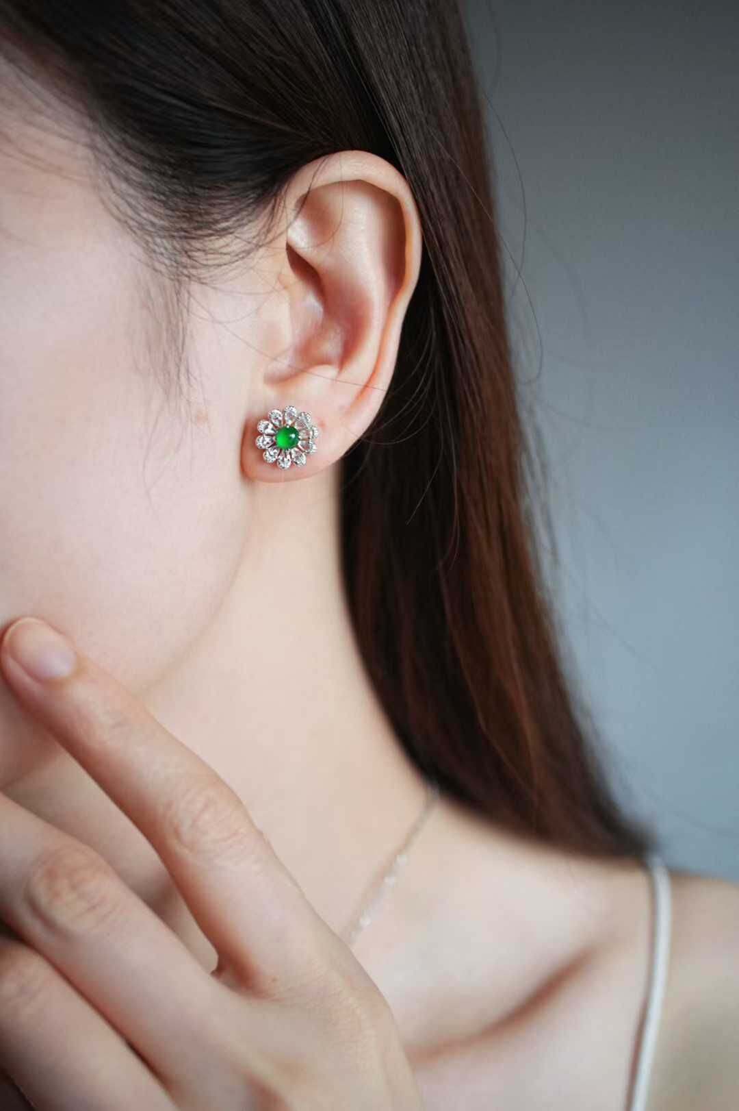 • 翡翠花苞耳釘,天然翡翠A玉, 緬甸玉, Jade, Jadeite