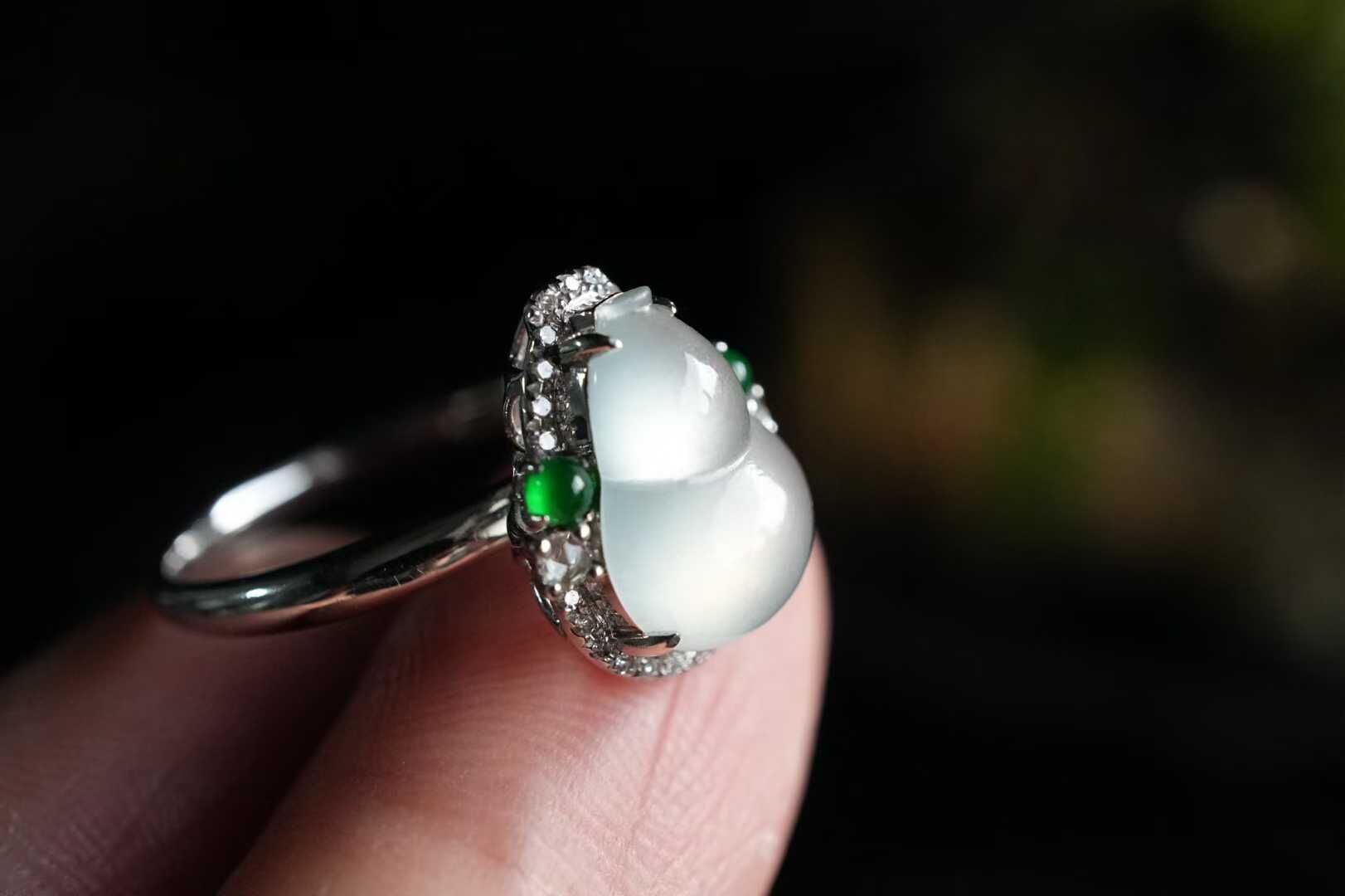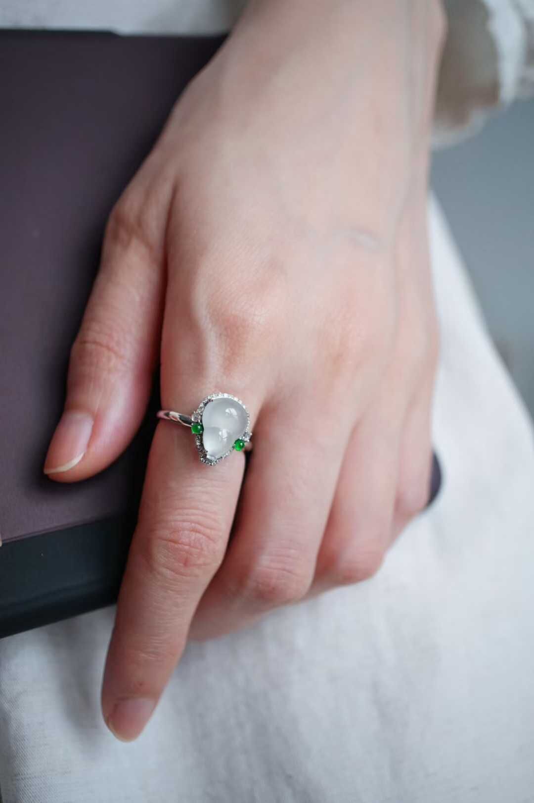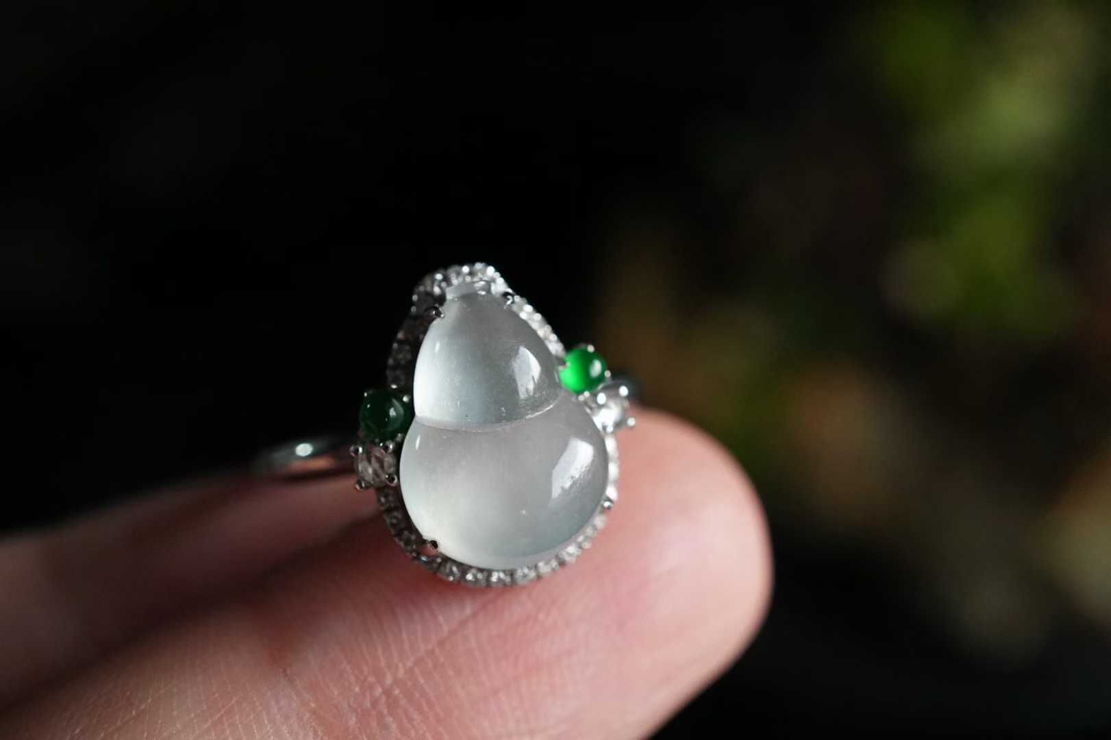 • 翡翠冰種葫蘆戒指,天然翡翠A玉, 緬甸玉, Jade, Jadeite