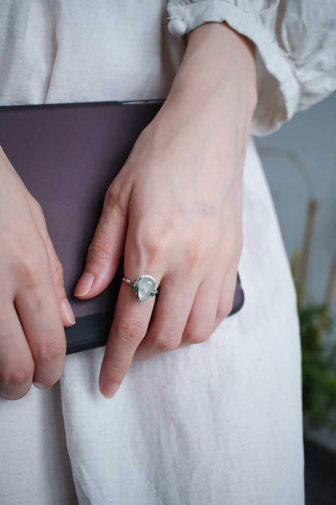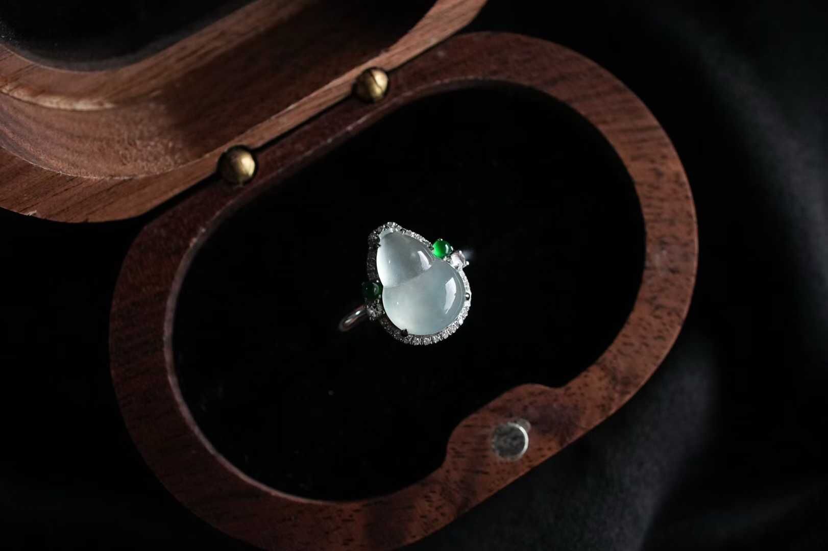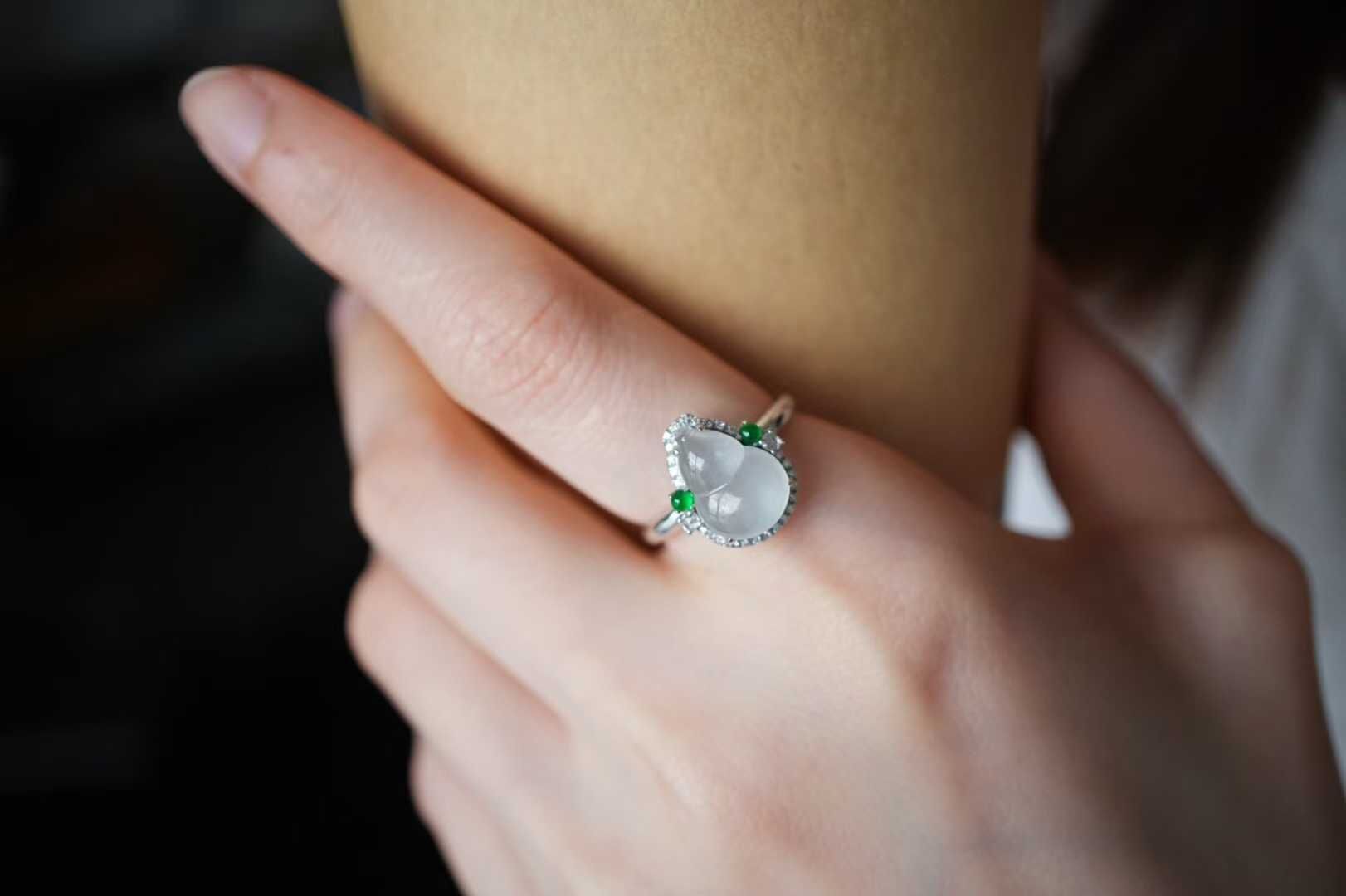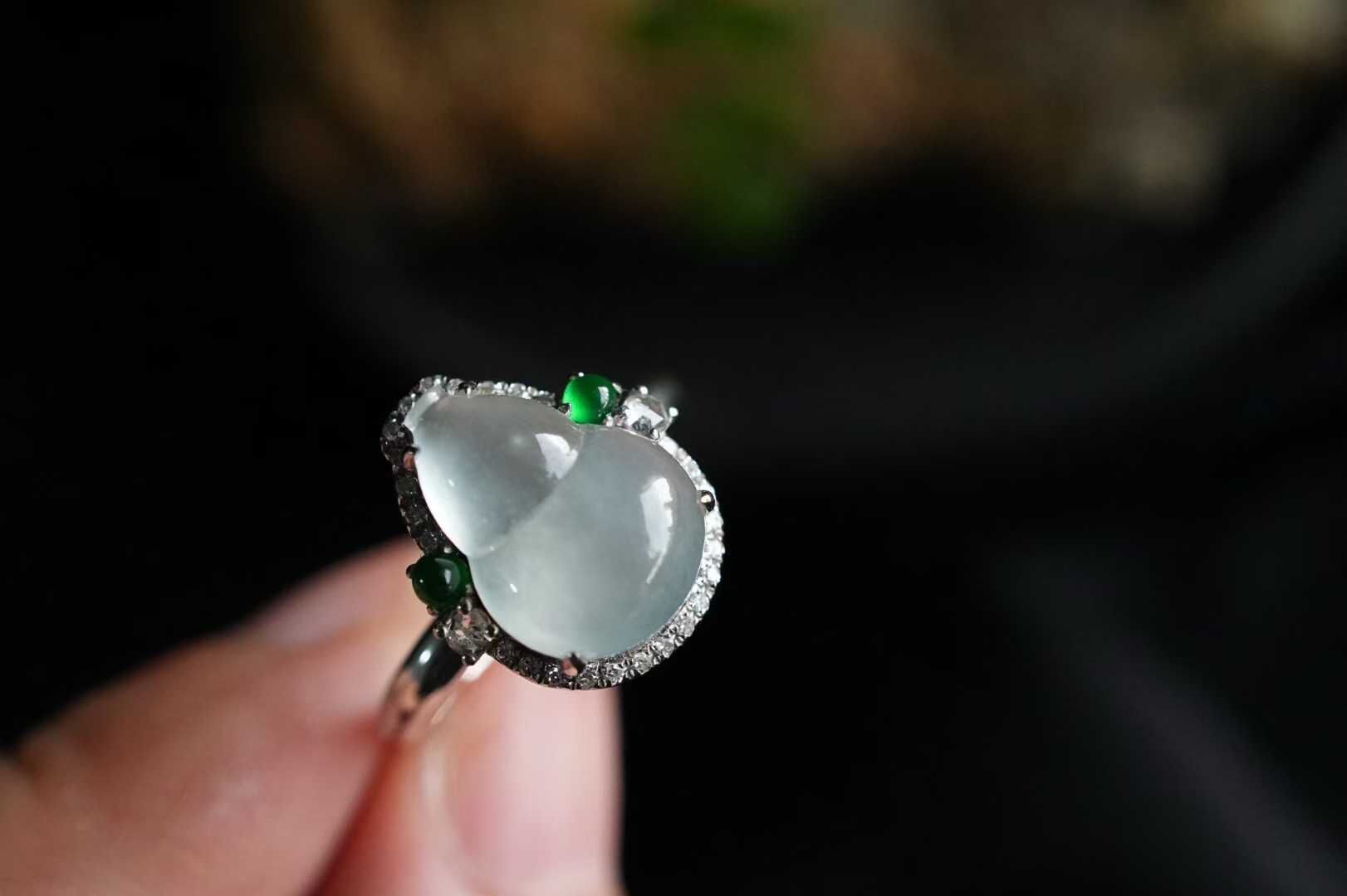 • 翡翠冰種葫蘆戒指,天然翡翠A玉, 緬甸玉, Jade, Jadeite