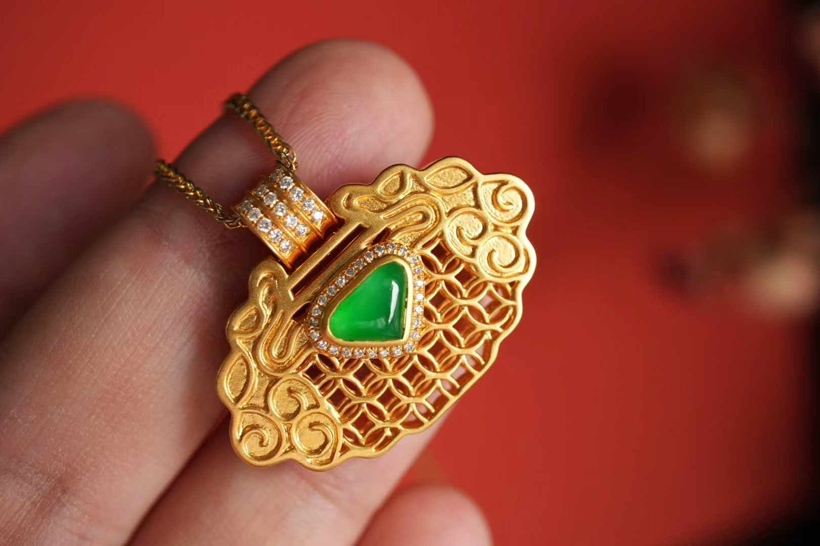 冰陽綠的翡翠的明艷光澤為穿搭增添亮點,同時默默守護佩戴者的平安順遂,願這枚冰陽綠平安鎖,伴你走過歲歲年年,平安喜樂,福氣滿盈。