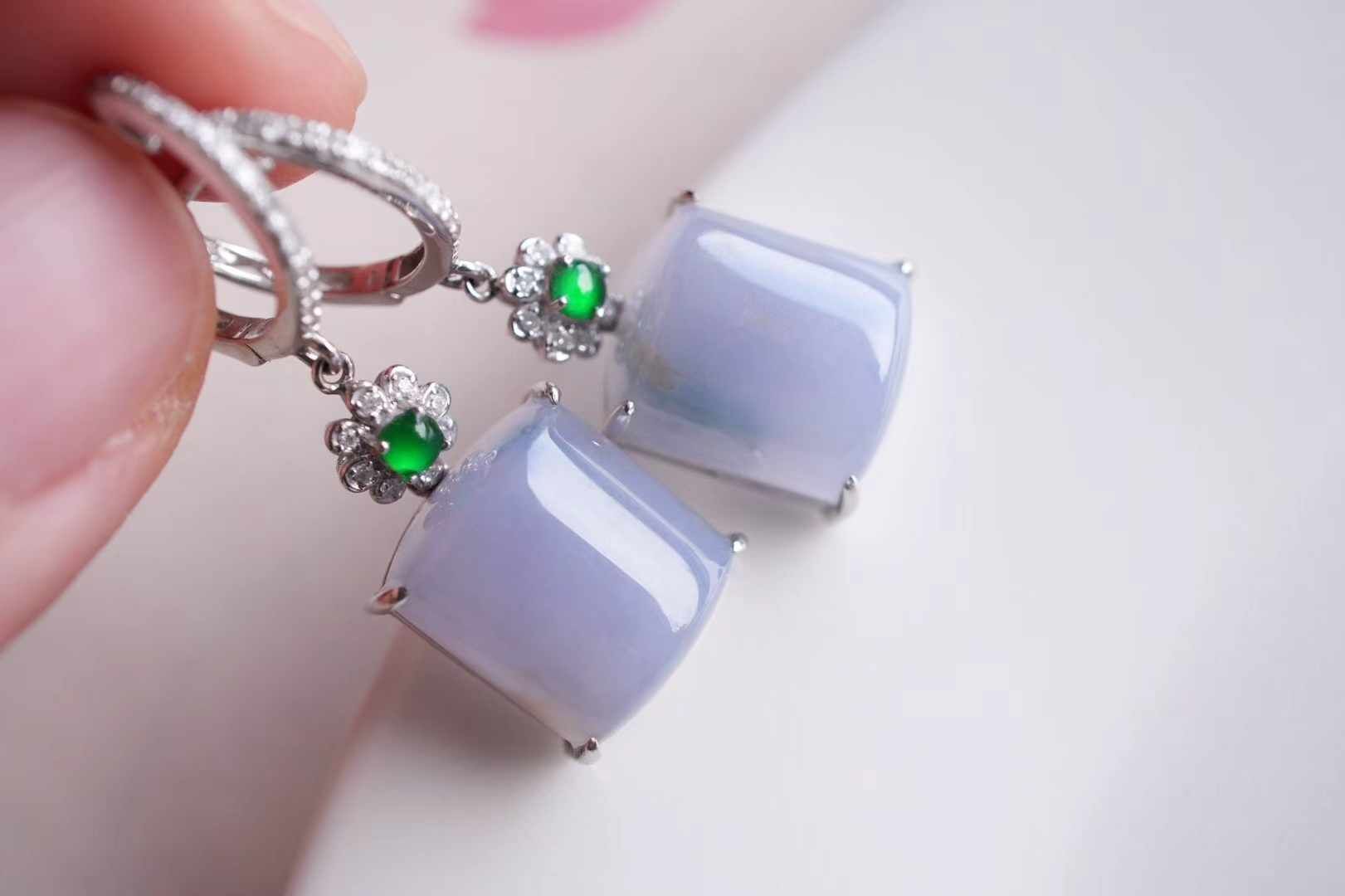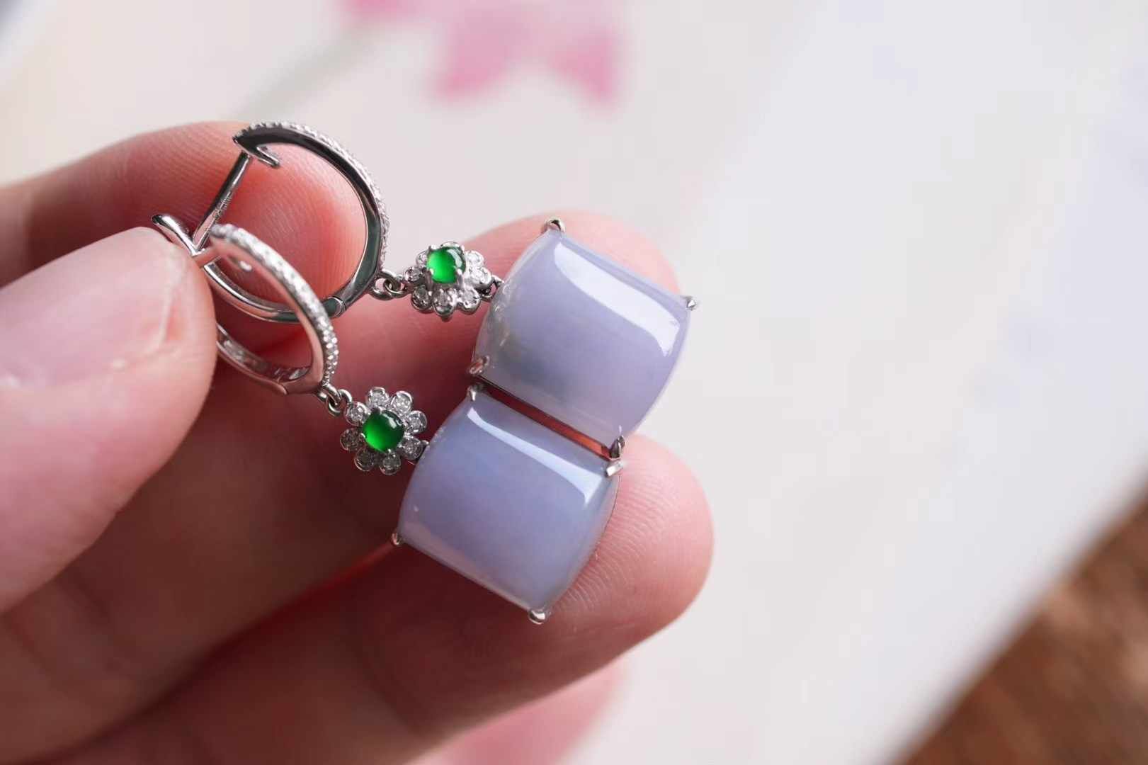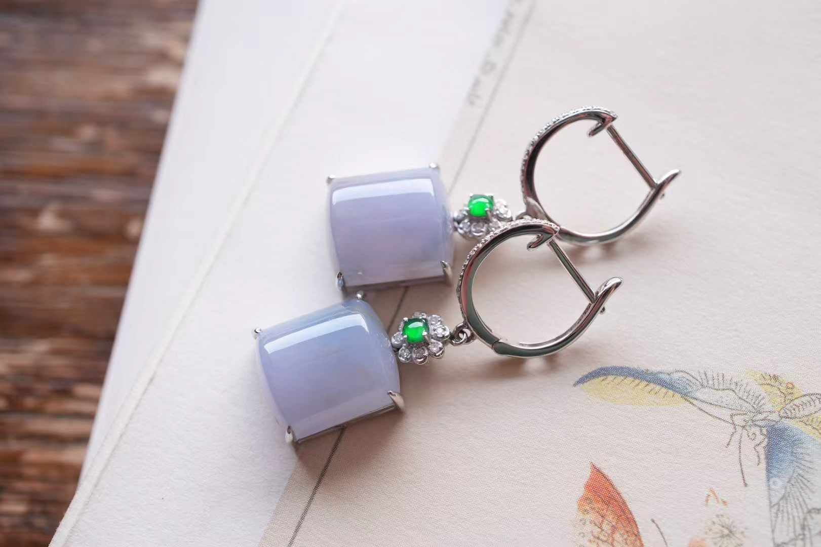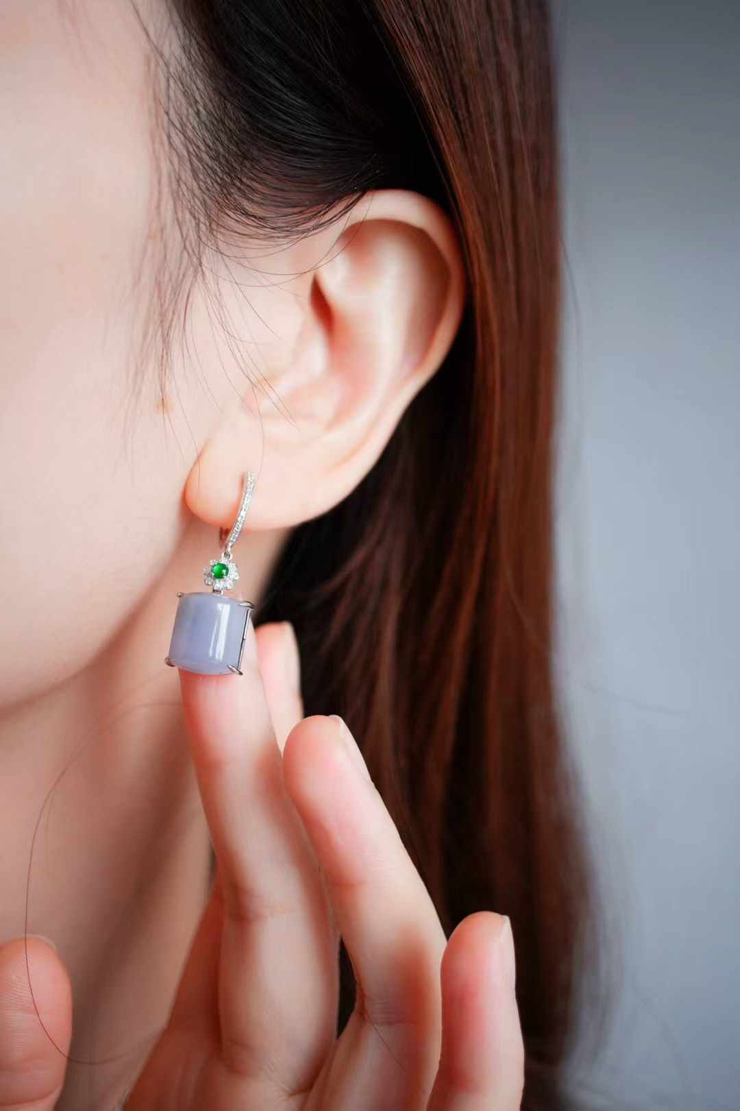 • 翡翠冰紫羅蘭無事牌耳墜,天然翡翠A玉, 緬甸玉, Jade, Jadeite