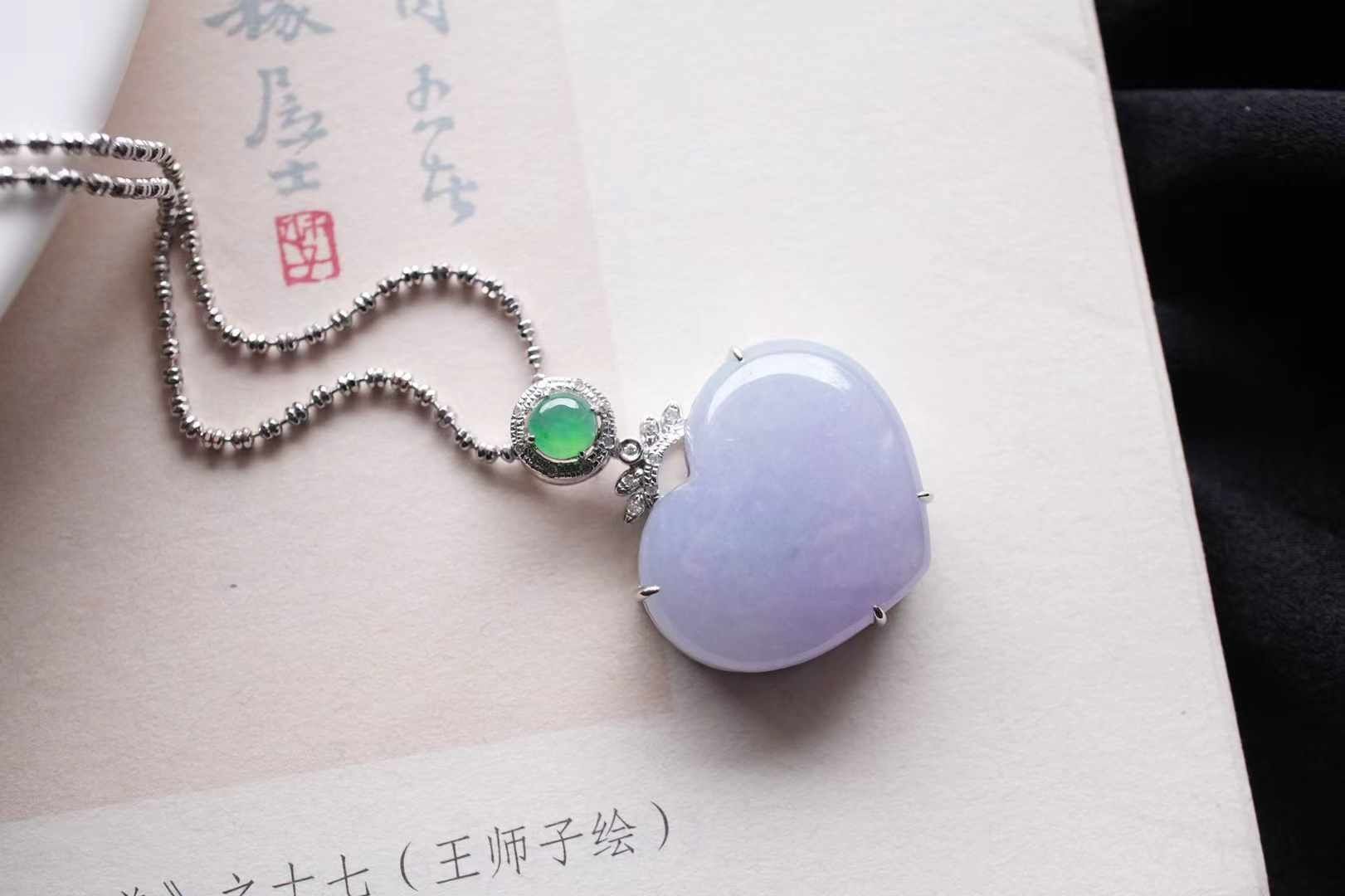 • 翡翠冰糯種紫羅蘭愛心吊墜,天然翡翠A玉, 緬甸玉, Jade, Jadeite