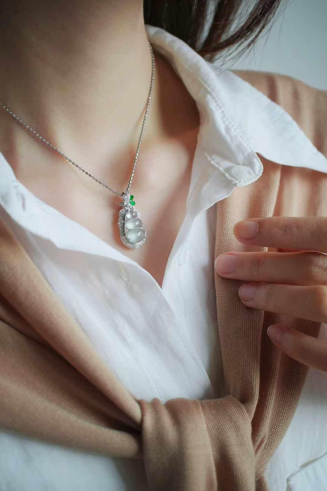 • 翡翠玻璃種福豆吊墜,天然翡翠A玉, 緬甸玉, Jade, Jadeite