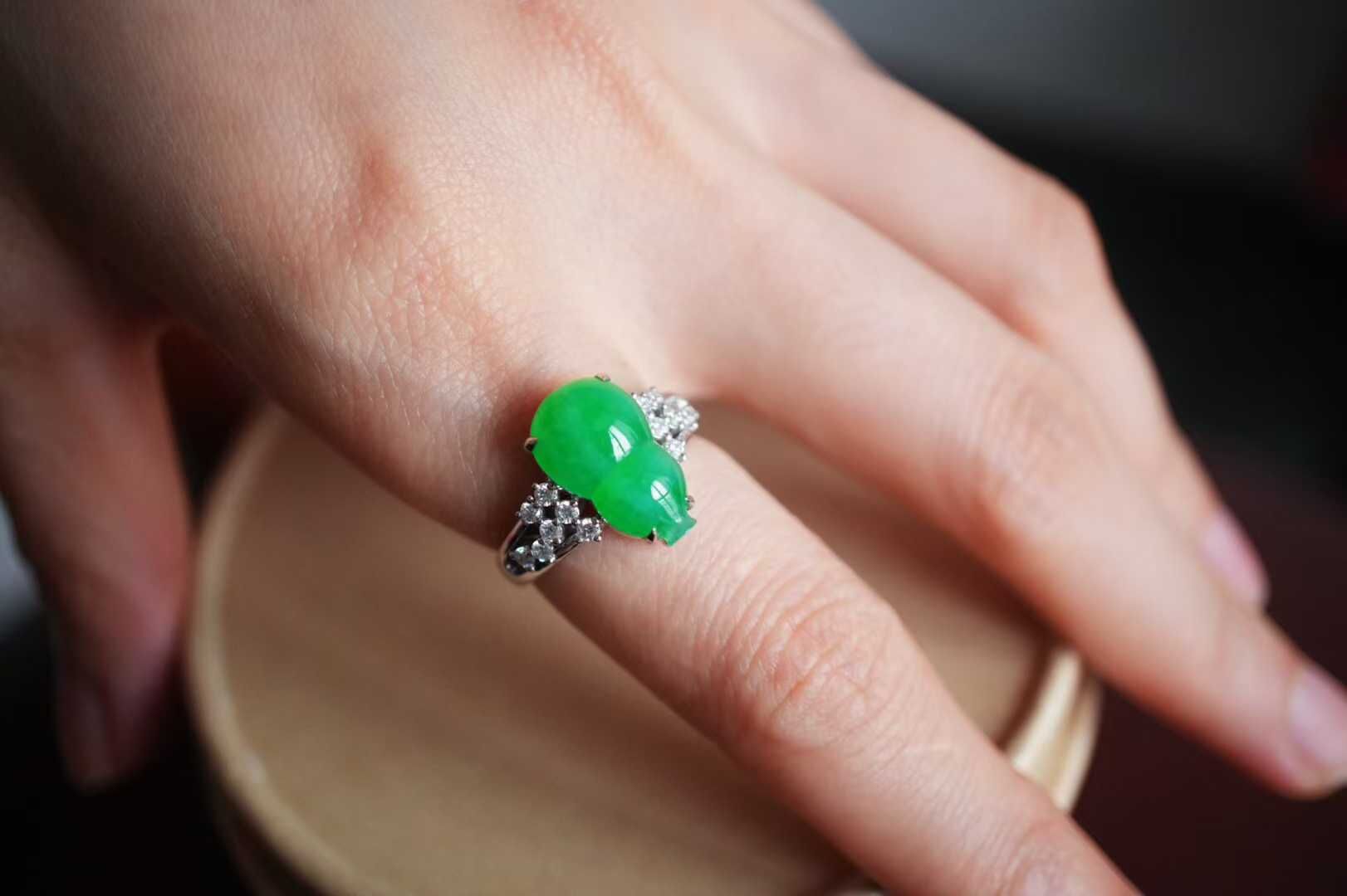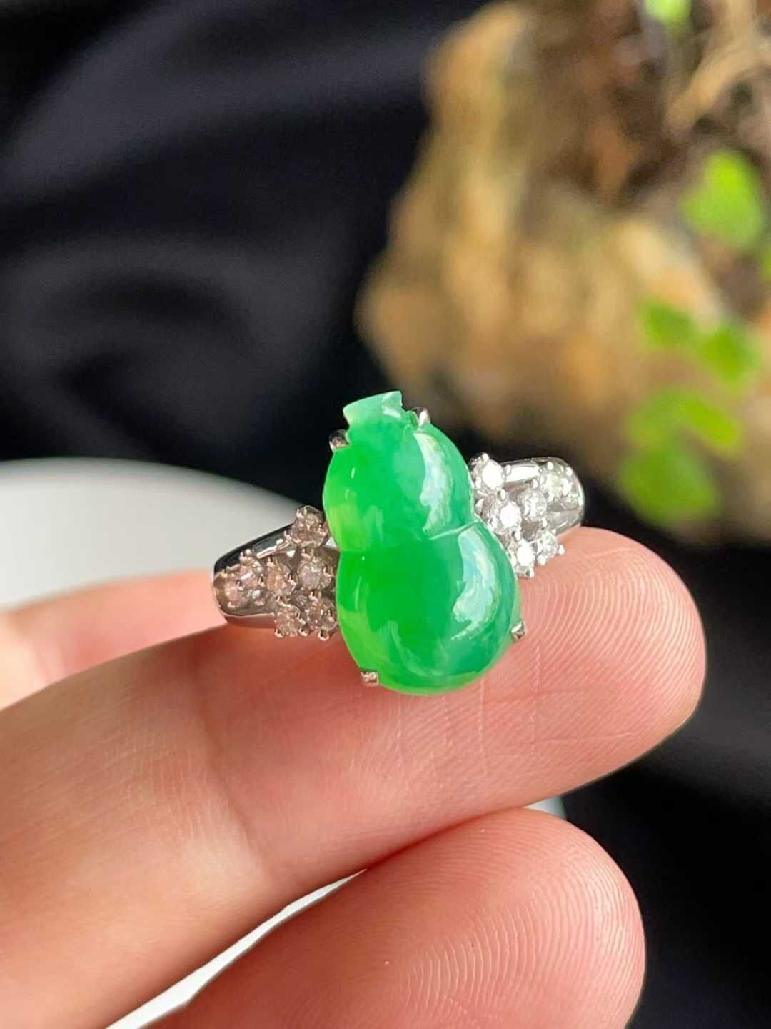 • 翡翠葫蘆戒指,天然翡翠A玉, 緬甸玉, Jade, Jadeite