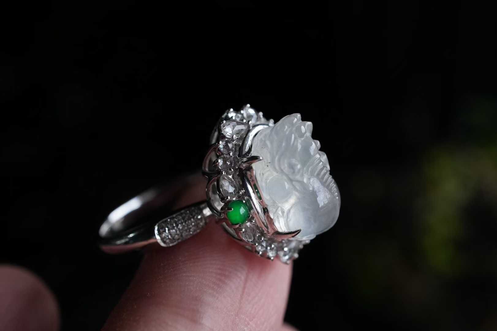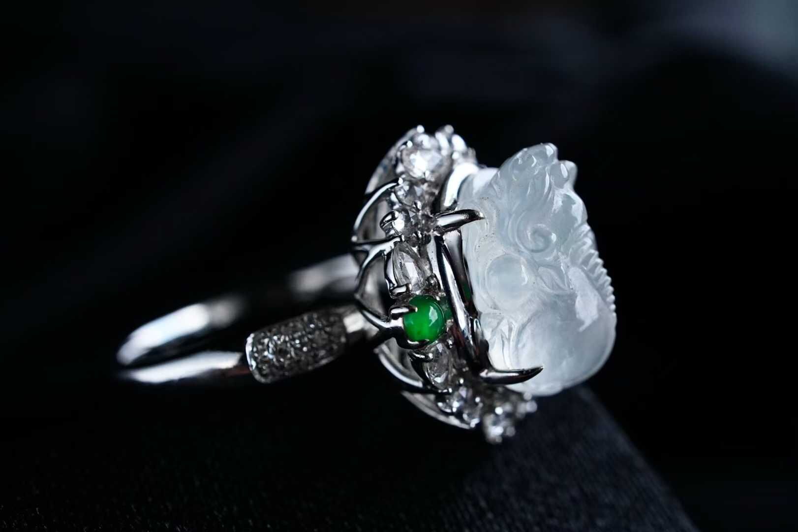 • 翡翠冰種厚裝貔貅戒指,天然翡翠A玉, 緬甸玉, Jade, Jadeite