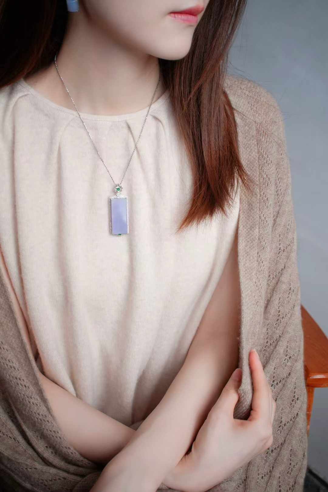 18833 翡翠冰紫羅蘭無事牌吊墜