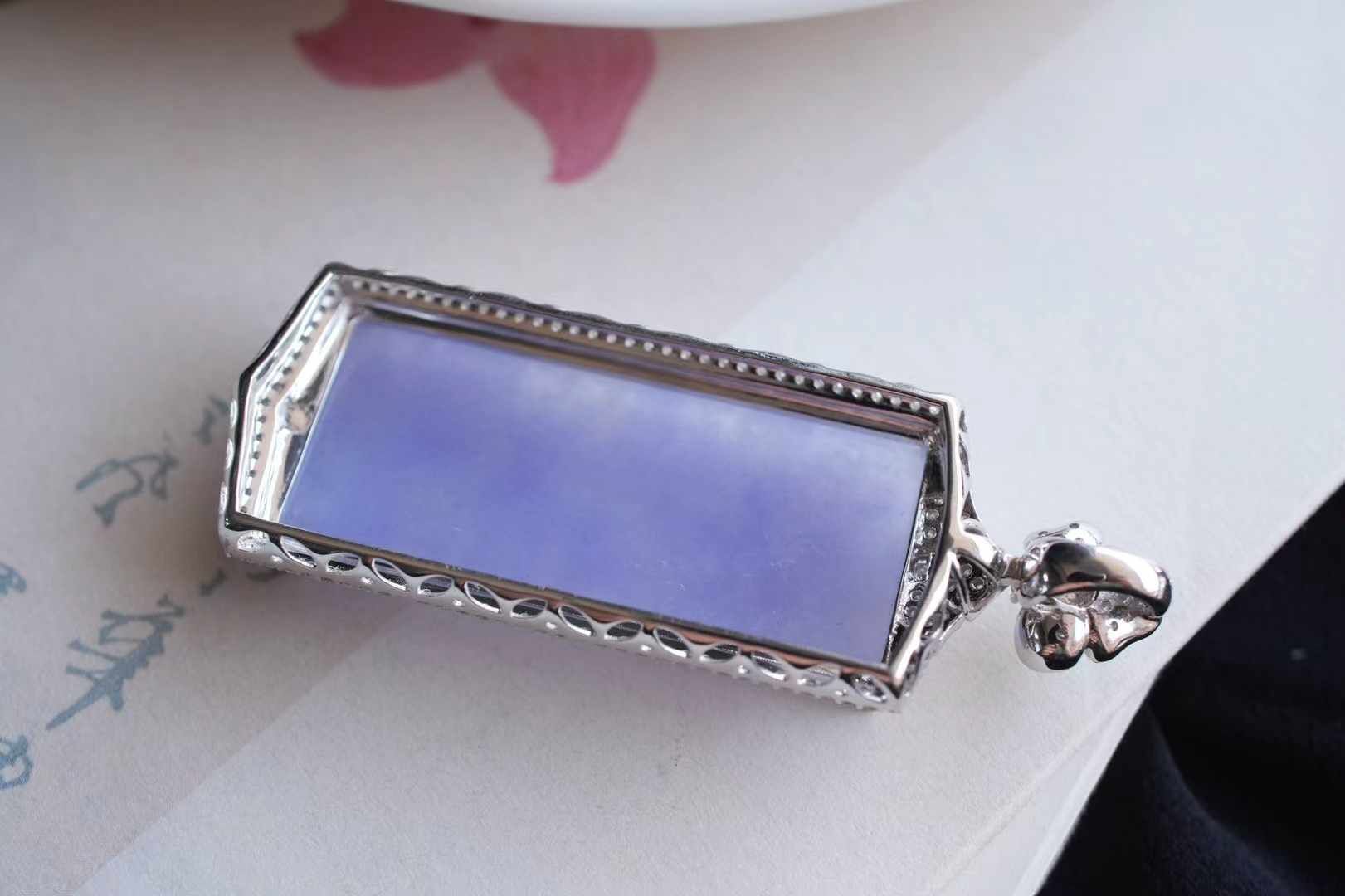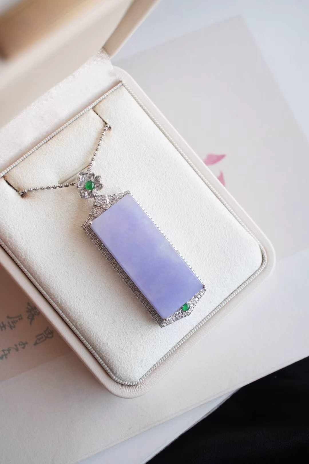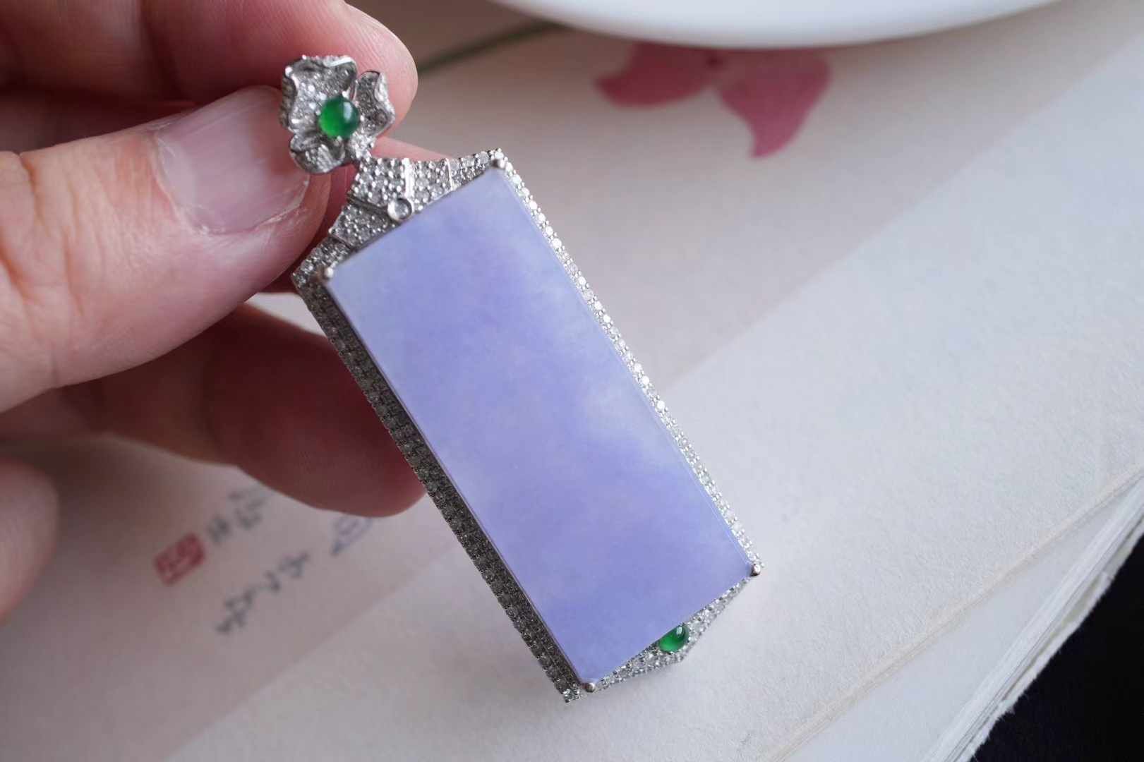 天然翡翠A玉,厚裝飽滿,料子好細膩,像一塊紫年糕,雲霞一樣的仙紫色,太美麗了,光是看著都覺得是一種視覺享受