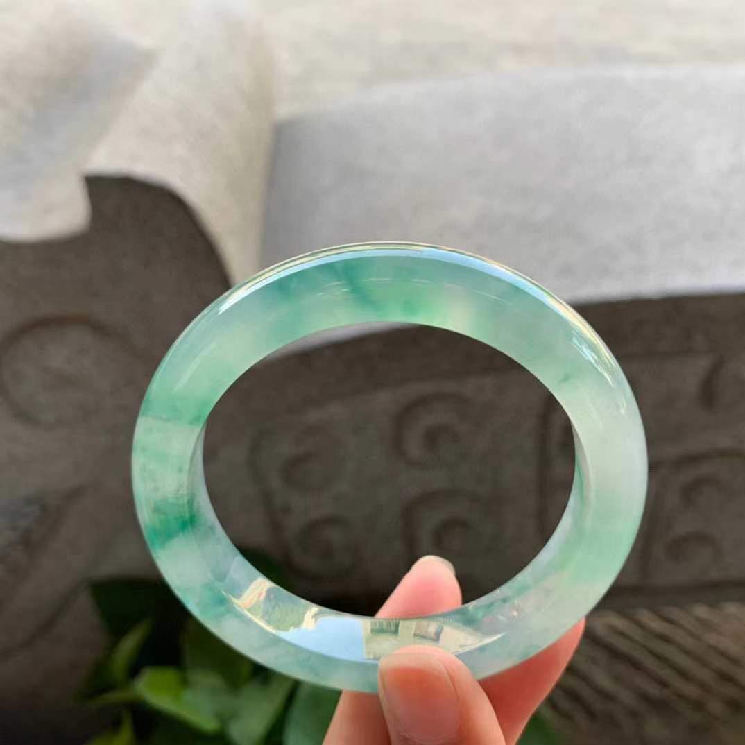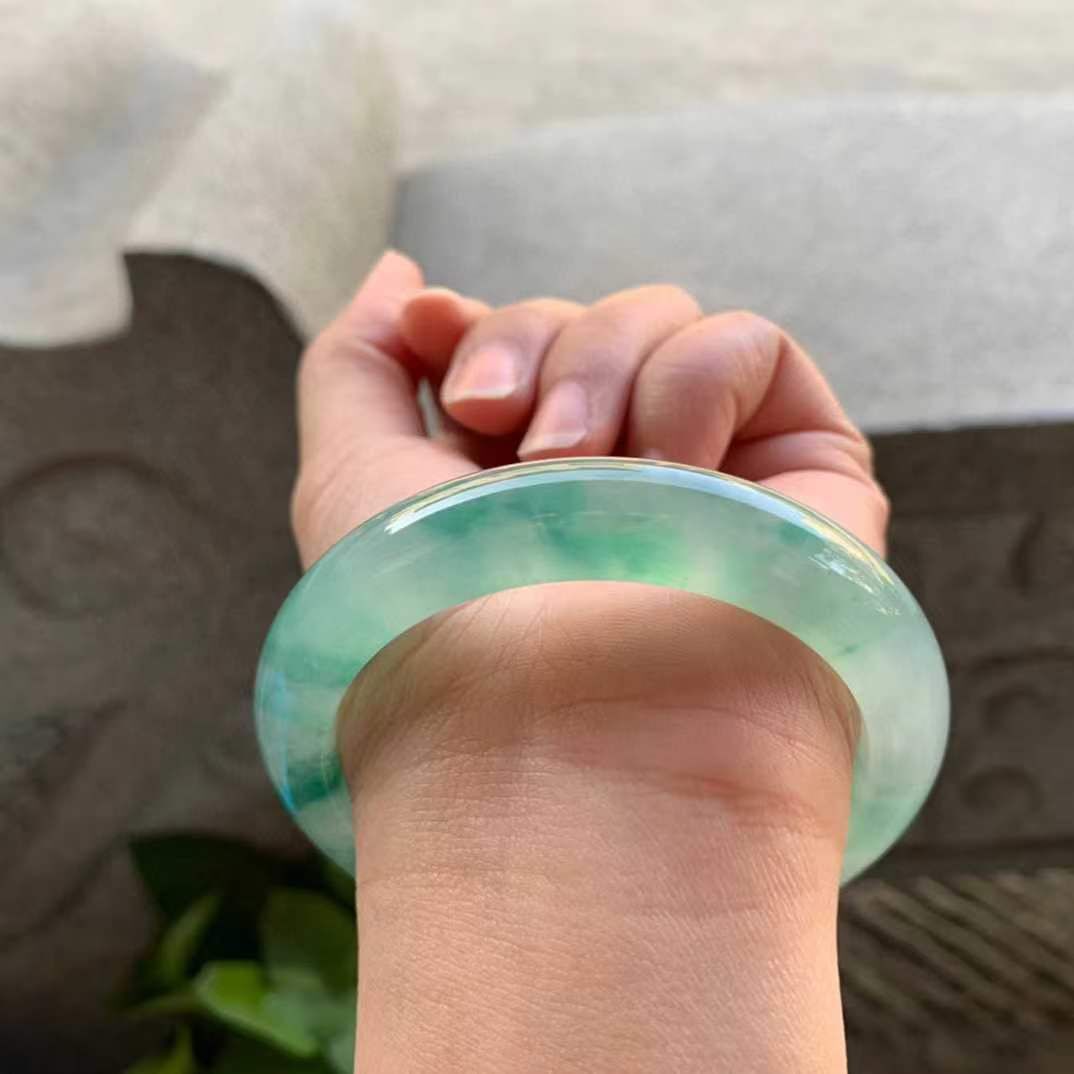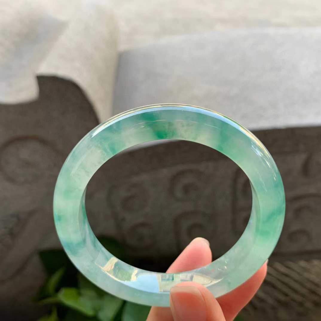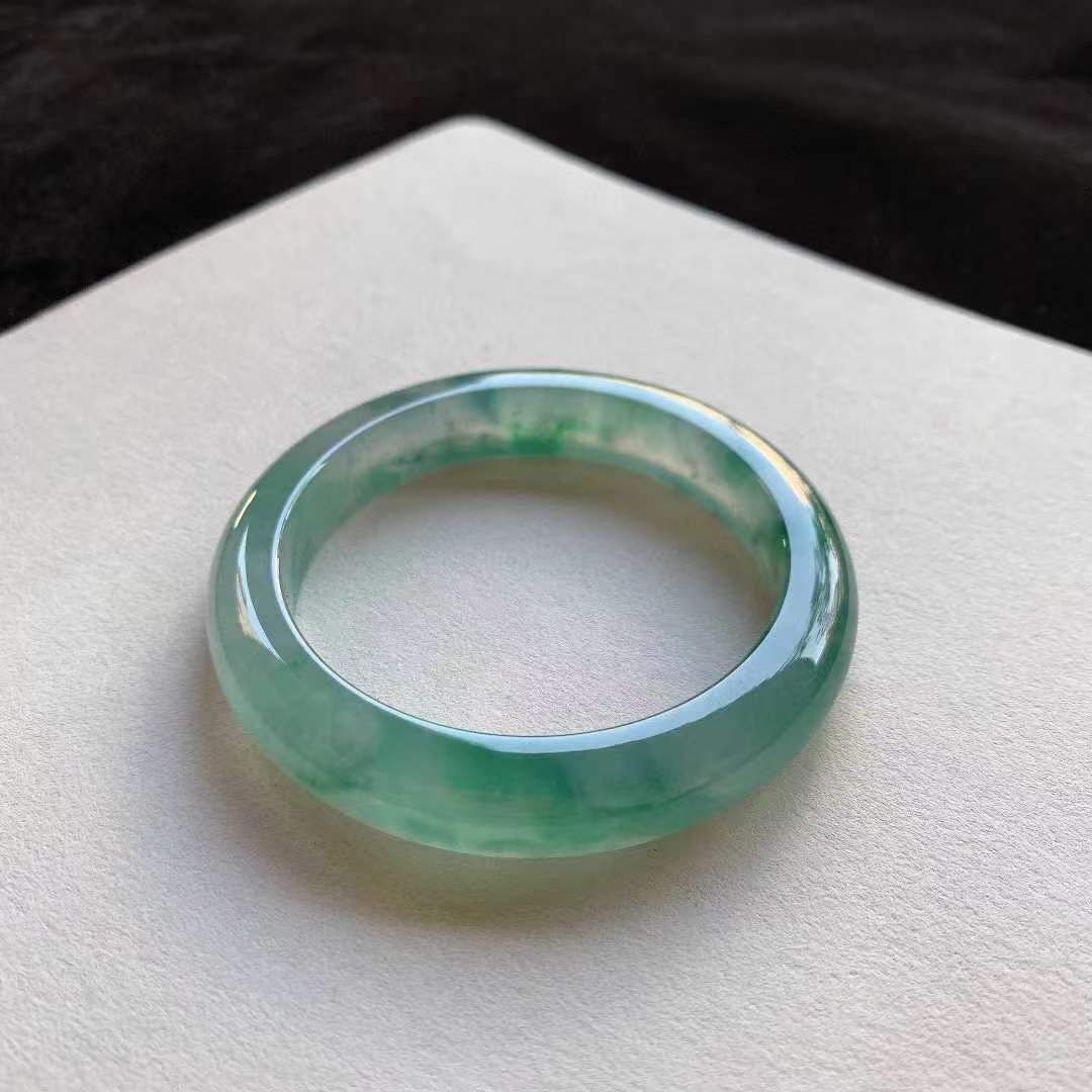 • 翡翠冰種果陽綠正圈手鐲,天然翡翠A玉, 緬甸玉, Jade, Jadeite