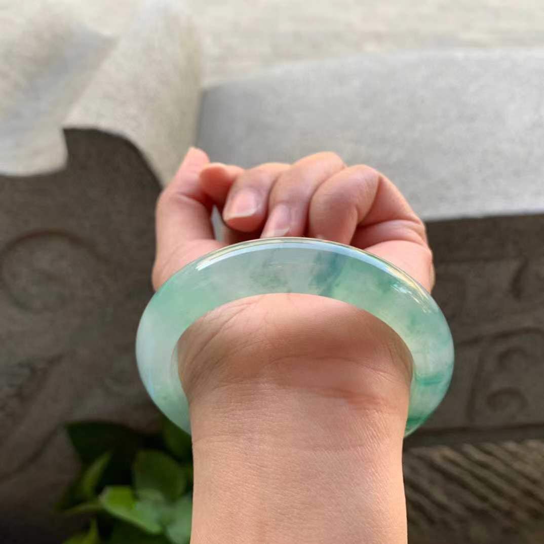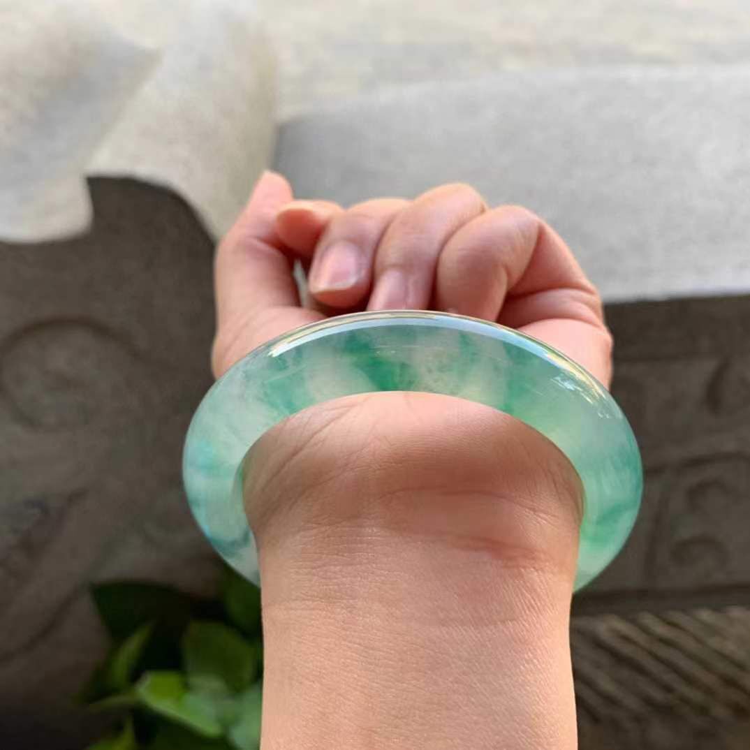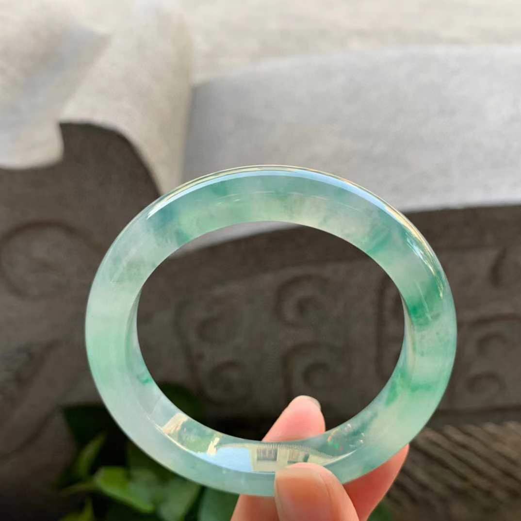 192343 57mm翡翠冰種果陽綠正圈手鐲