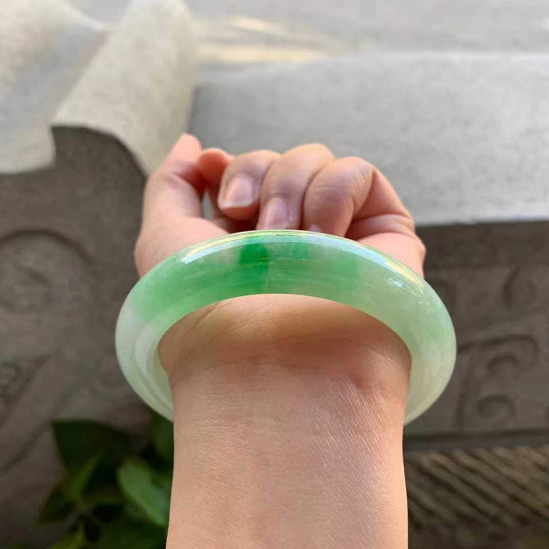 • 翡翠陽綠正圈手鐲,天然翡翠A玉, 緬甸玉, Jade, Jadeite