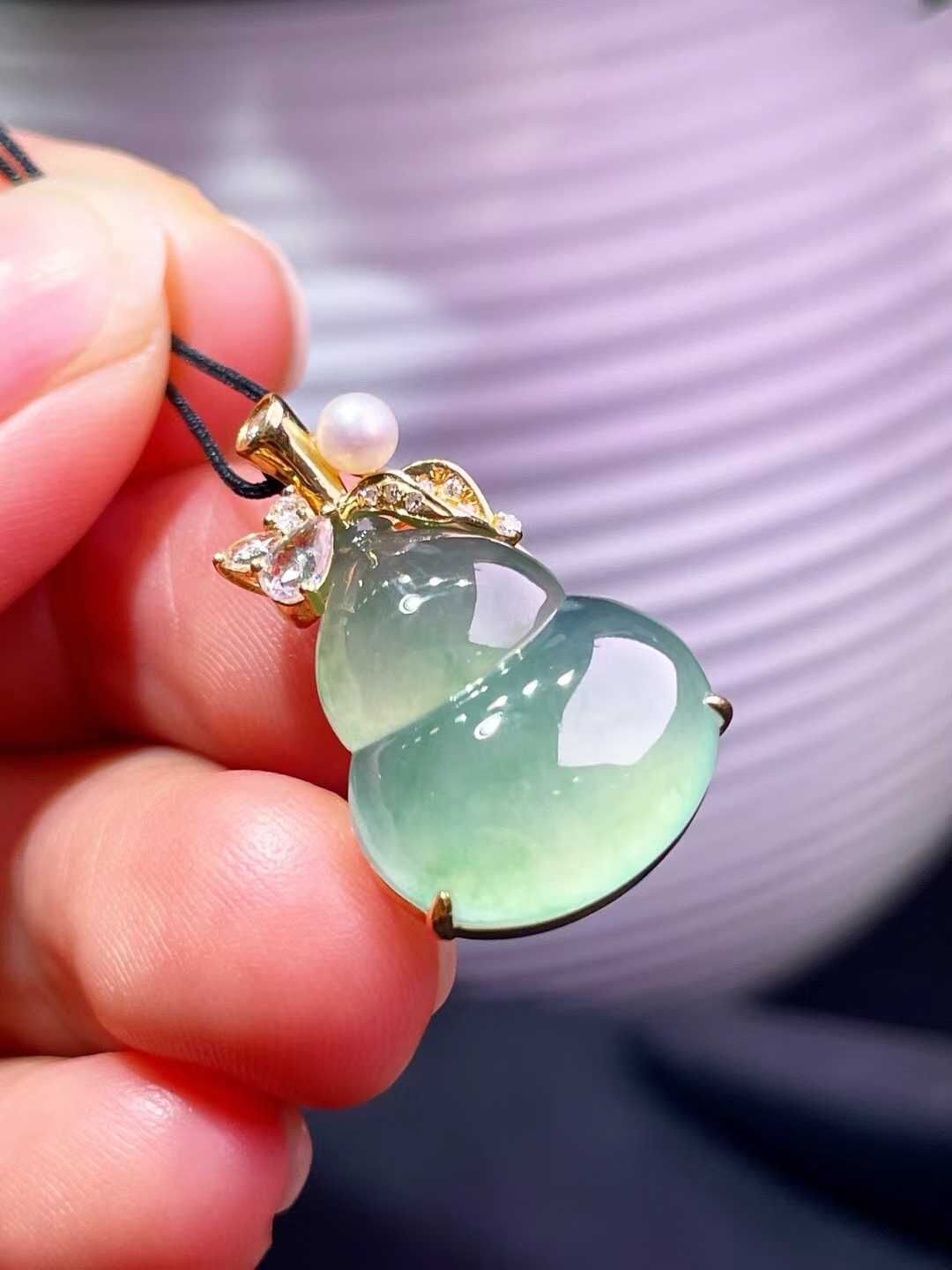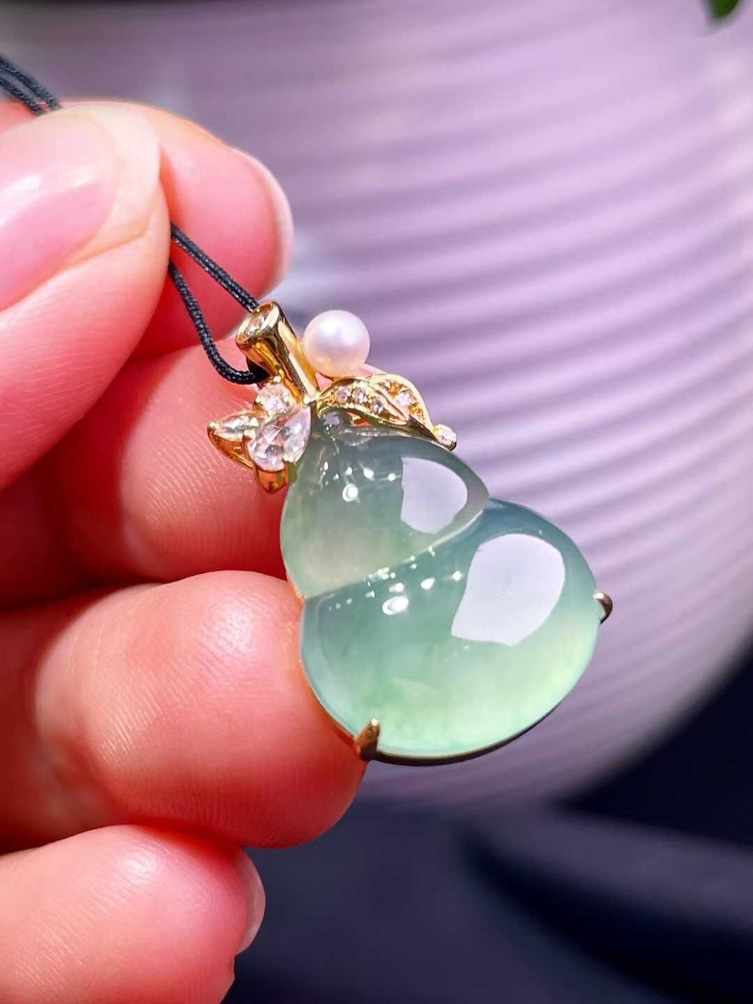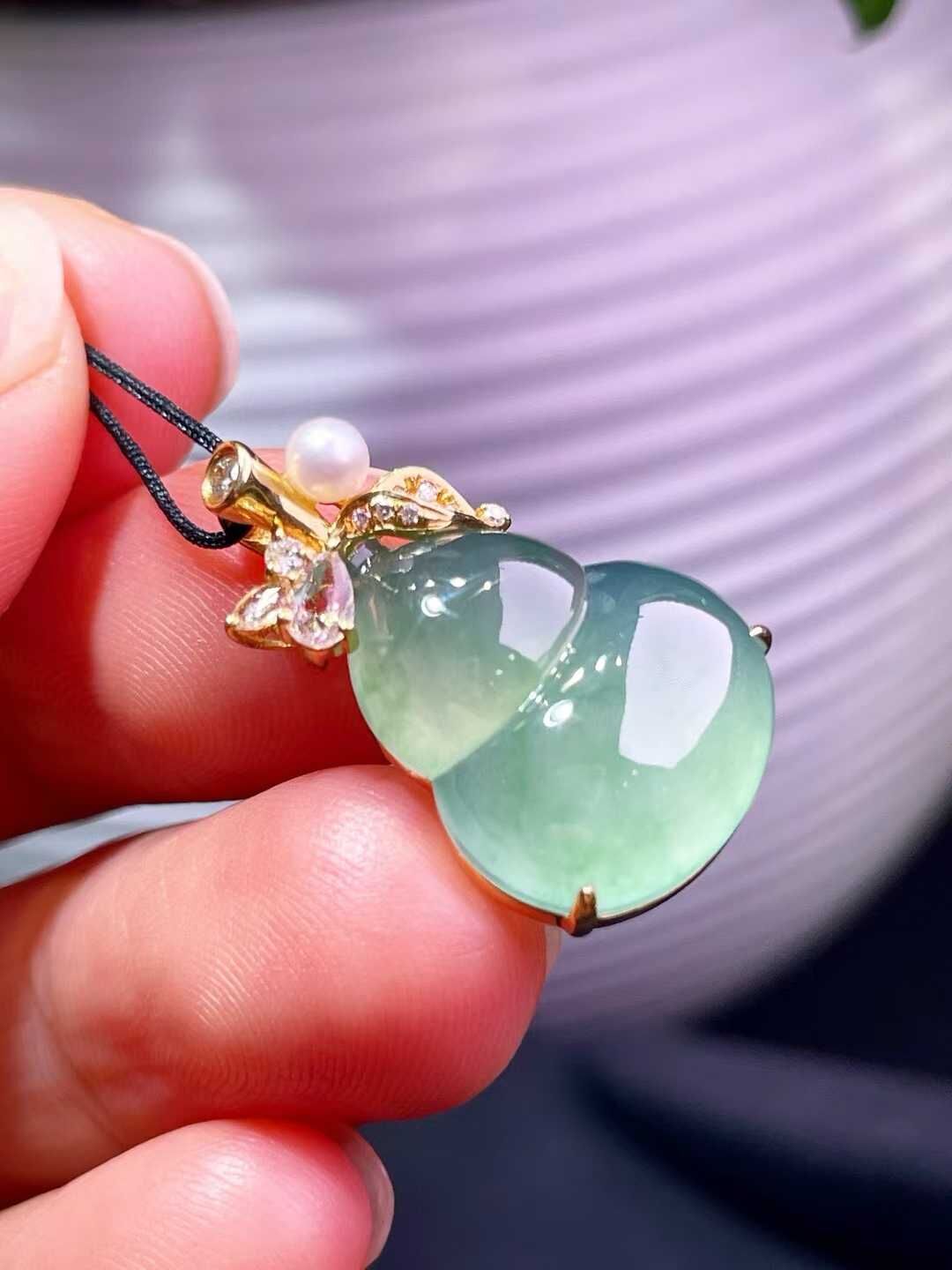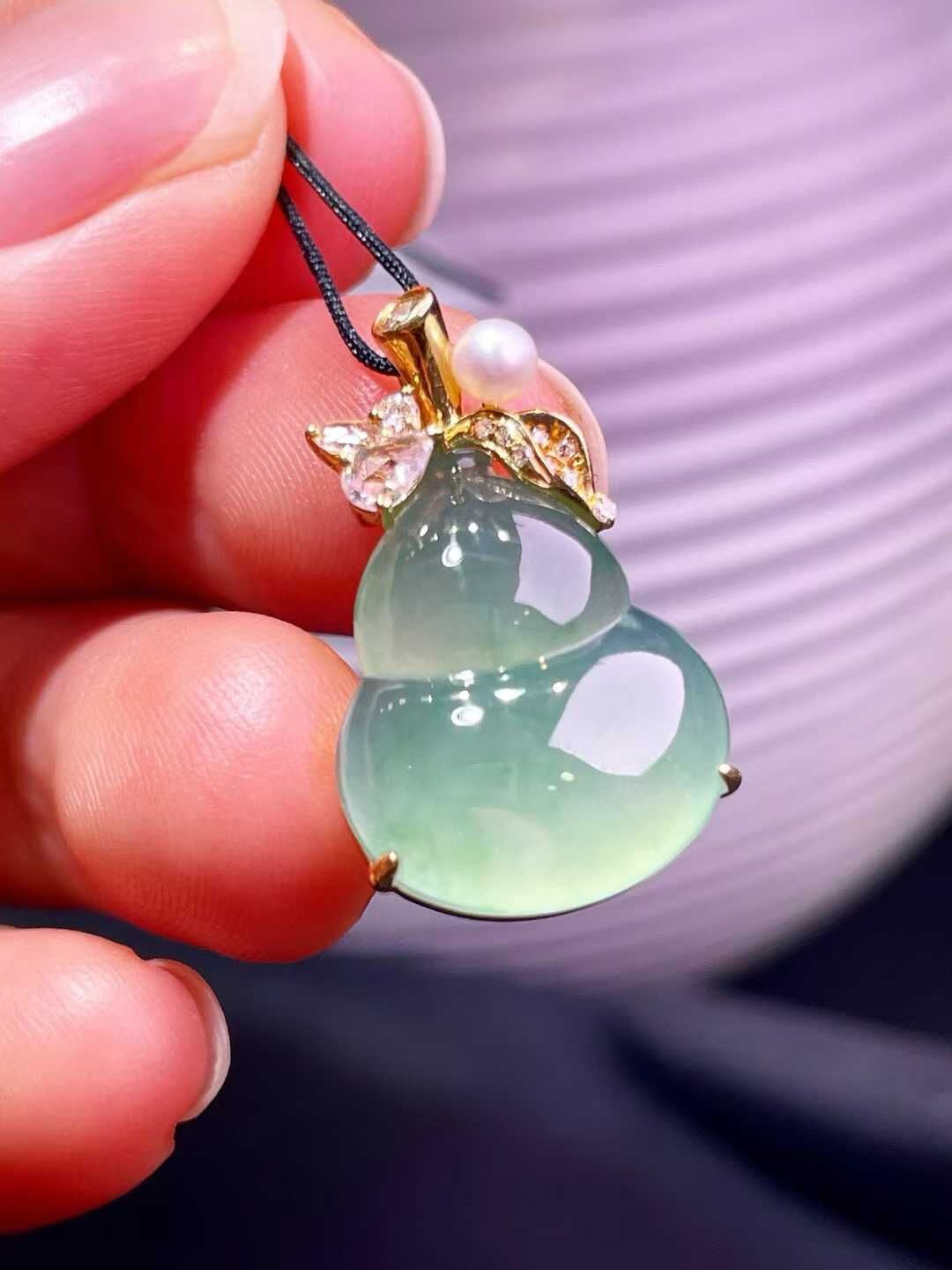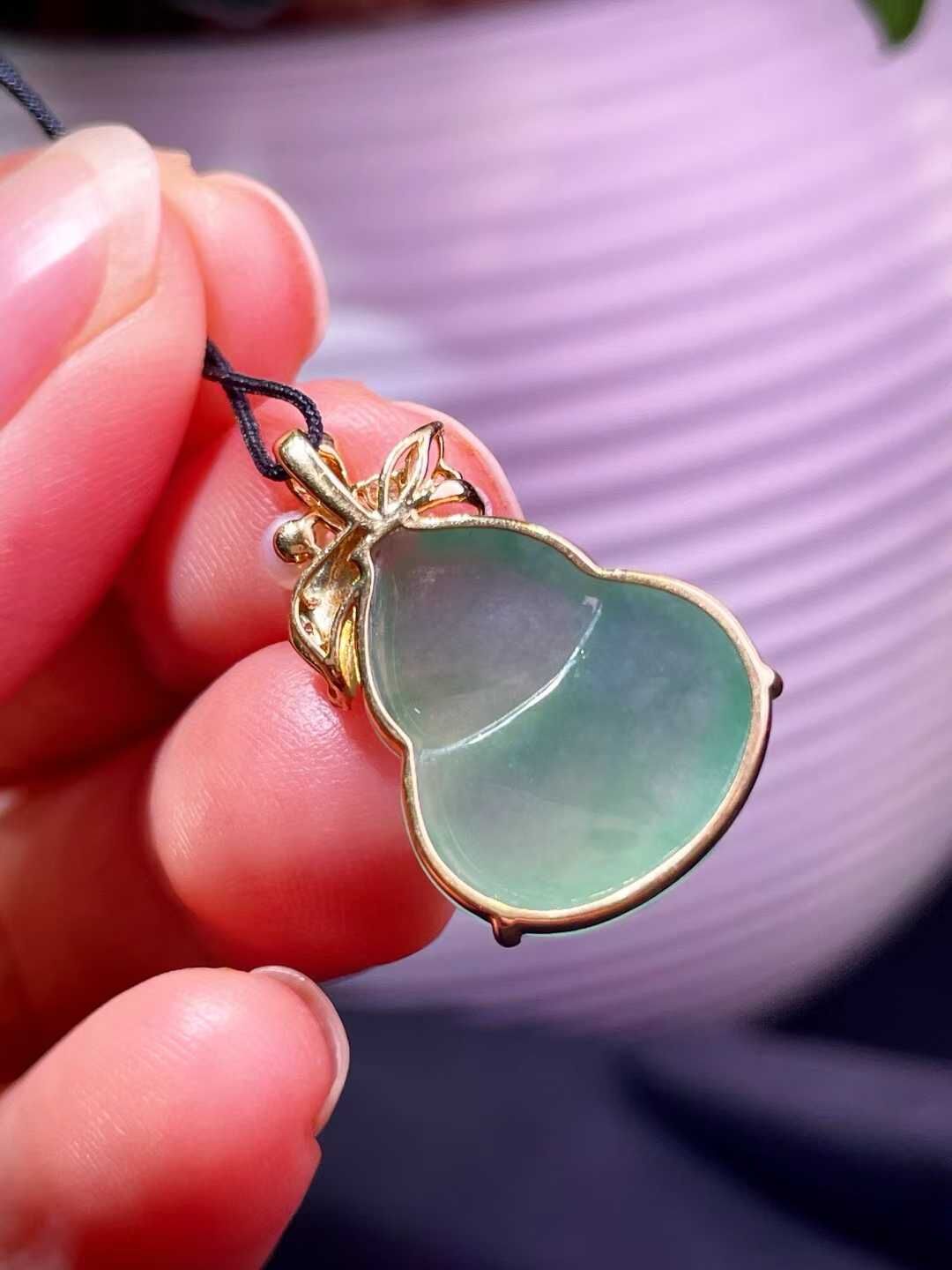 • 翡翠葫蘆吊墜,天然翡翠A玉, 緬甸玉, Jade, Jadeite