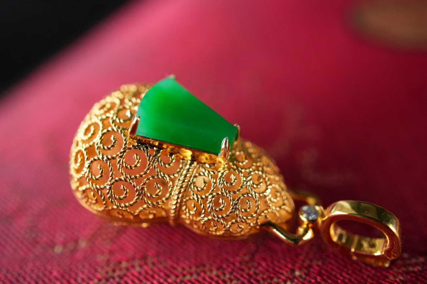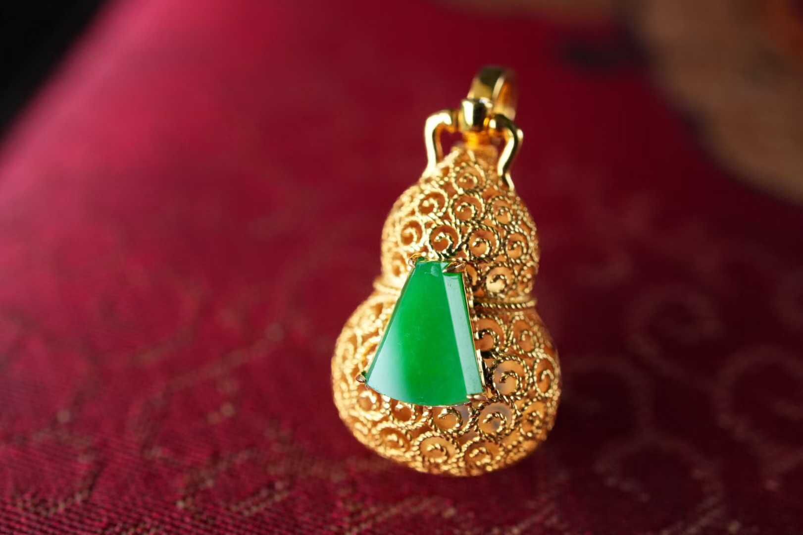 • 翡翠葫蘆香囊吊墜,天然翡翠A玉, 緬甸玉, Jade, Jadeite