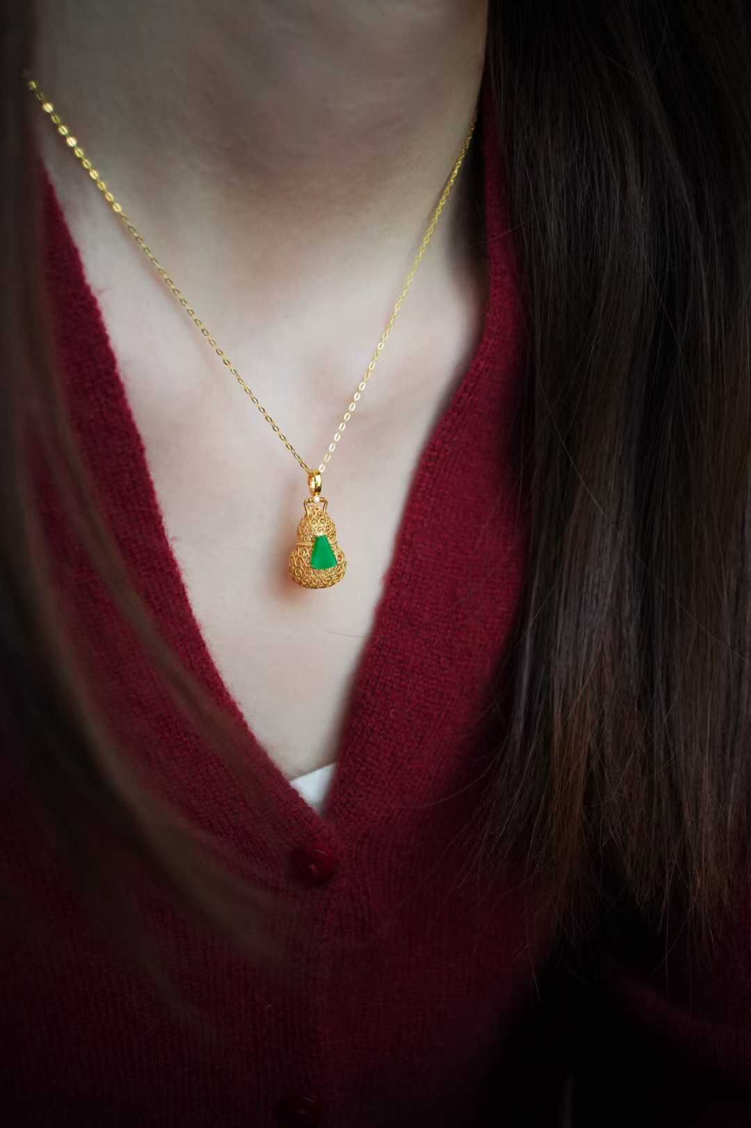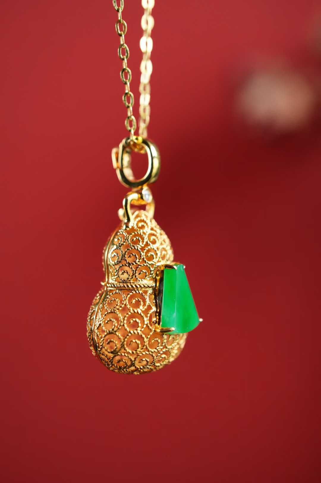 18K金花絲雕琢葫蘆造型,鑽石點綴精緻貴氣,金和翠綠撞在一起,為穿搭添上一抹雅致的金翠,作為新年禮飾,它又承載著福祿隨身的美好祈願,無論是自戴收藏,還是贈予親友,都是絕佳選擇(可打開放置香球)。