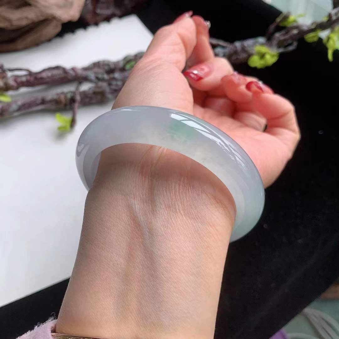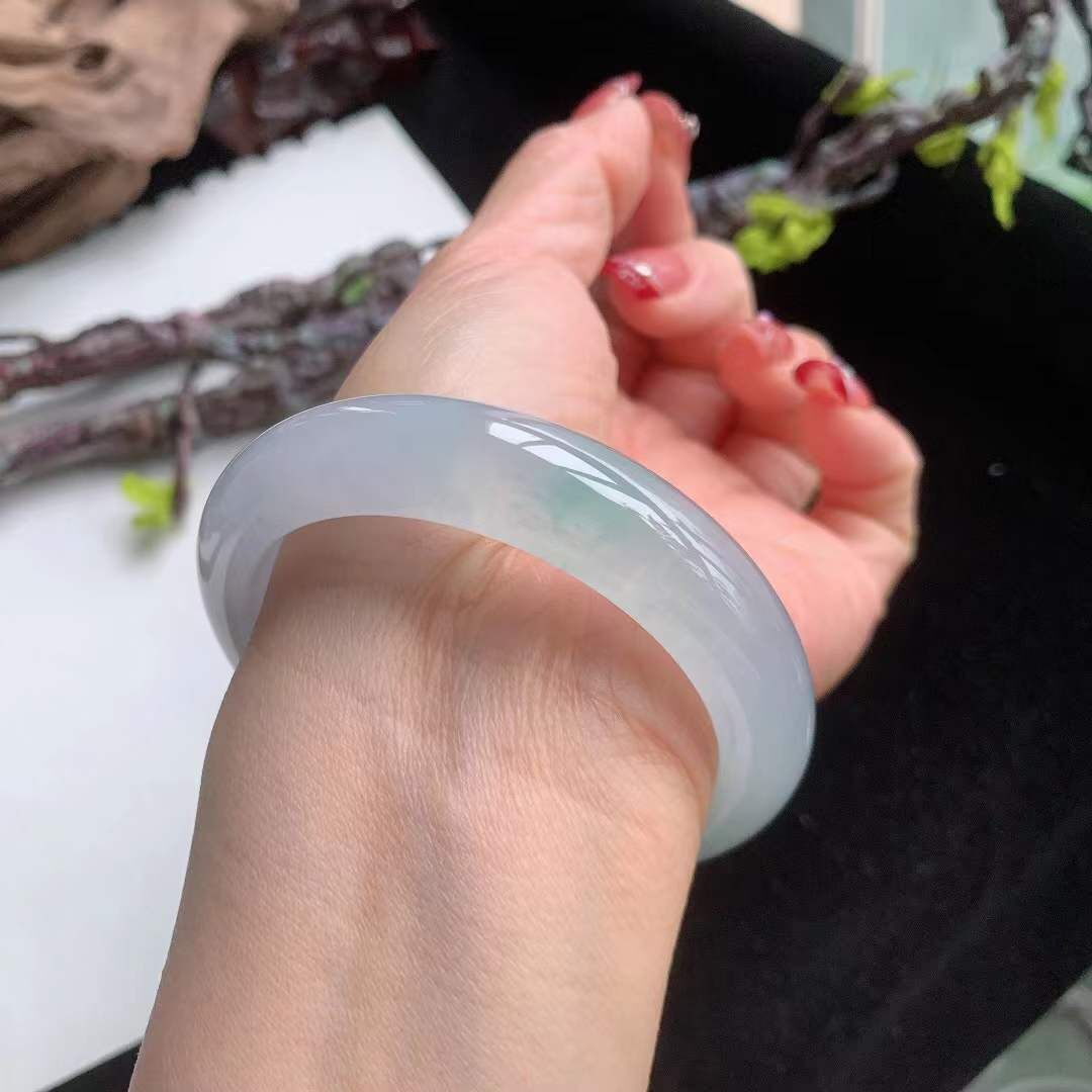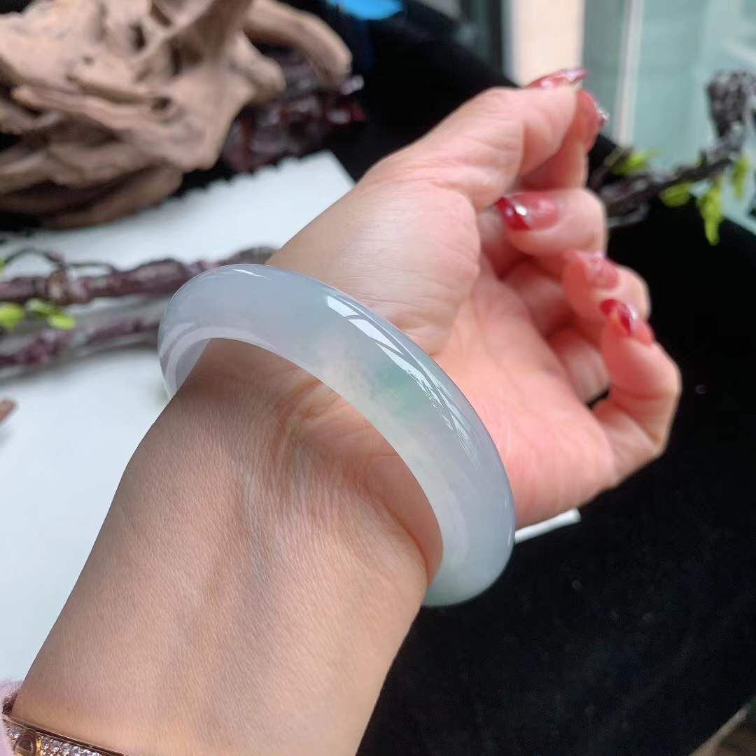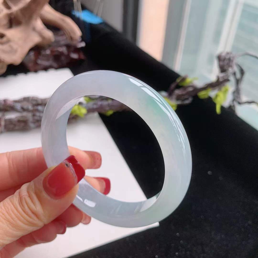 2102627 55.2mm翡翠嗎冰種起膠飄綠手鐲