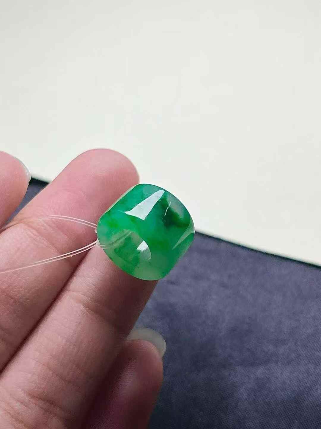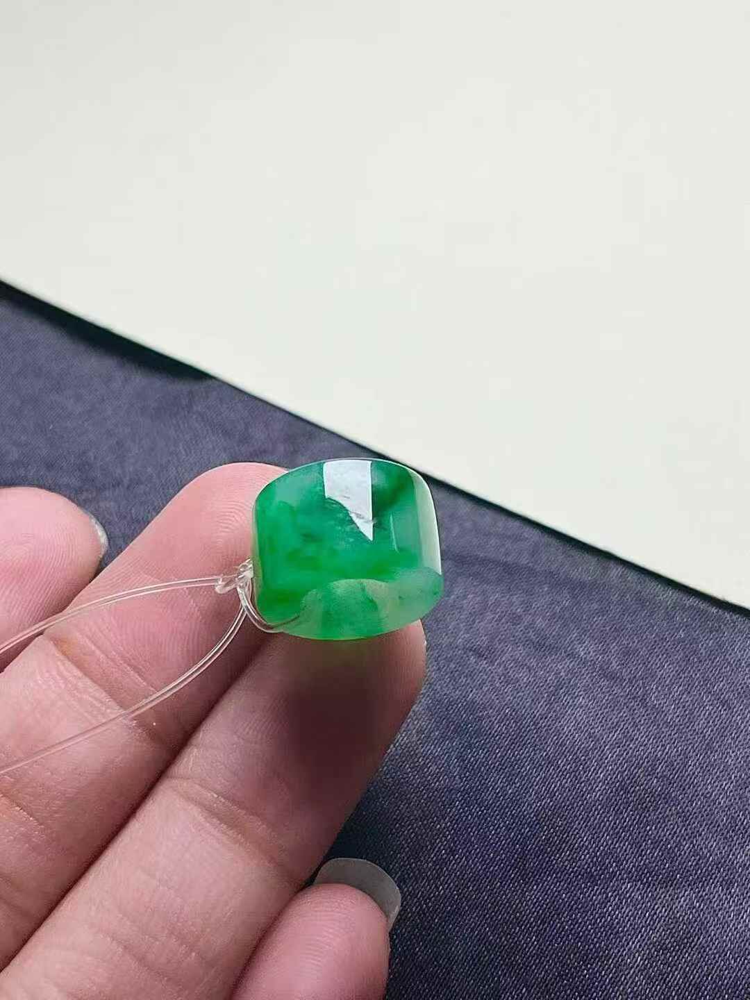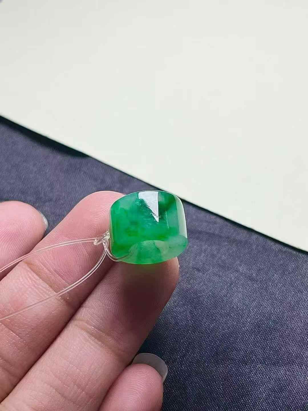 天然翡翠A玉,種老細膩,色陽濃郁起膠。