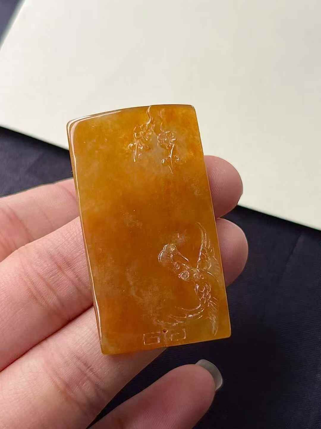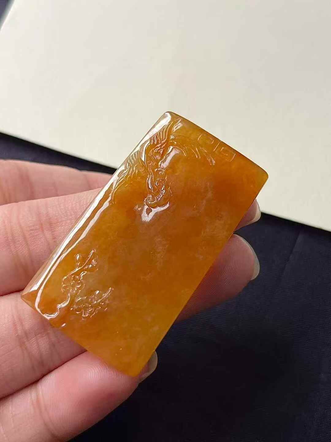 • 翡翠黃翡龍牌,天然翡翠A玉, 緬甸玉, Jade, Jadeite