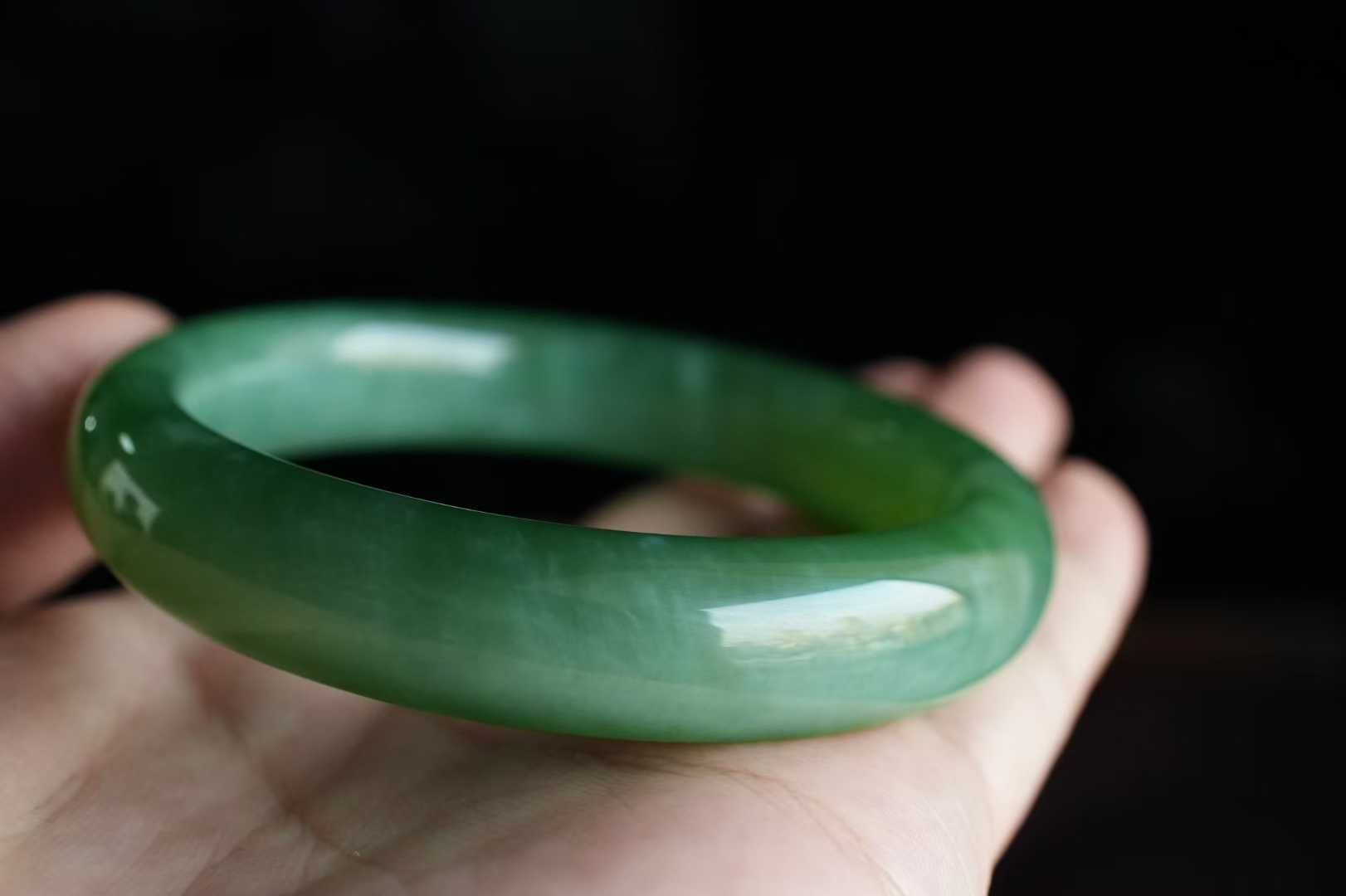 • 和田玉老坑俄碧冰底貓眼平安鐲,天然和田玉軟玉