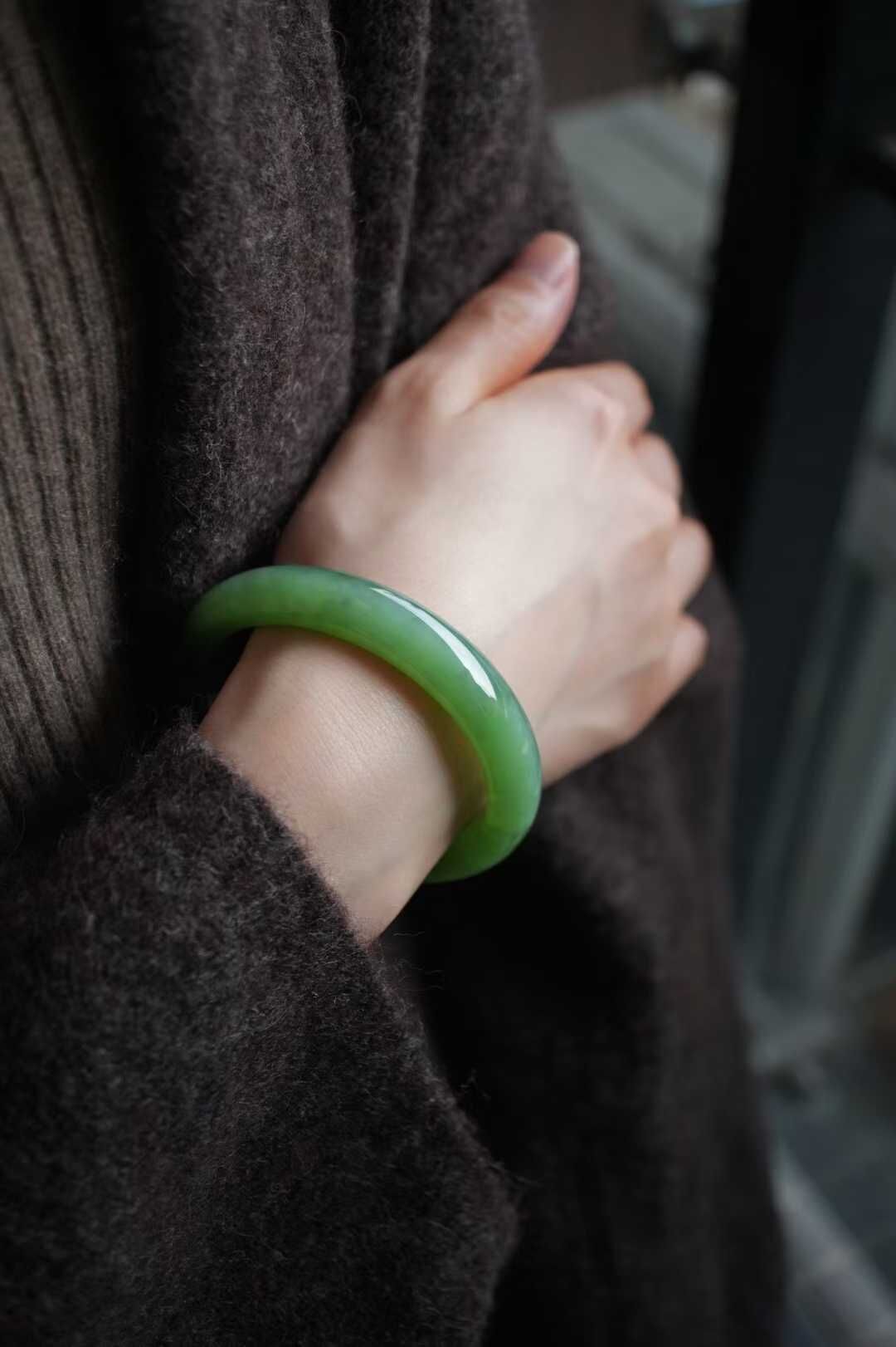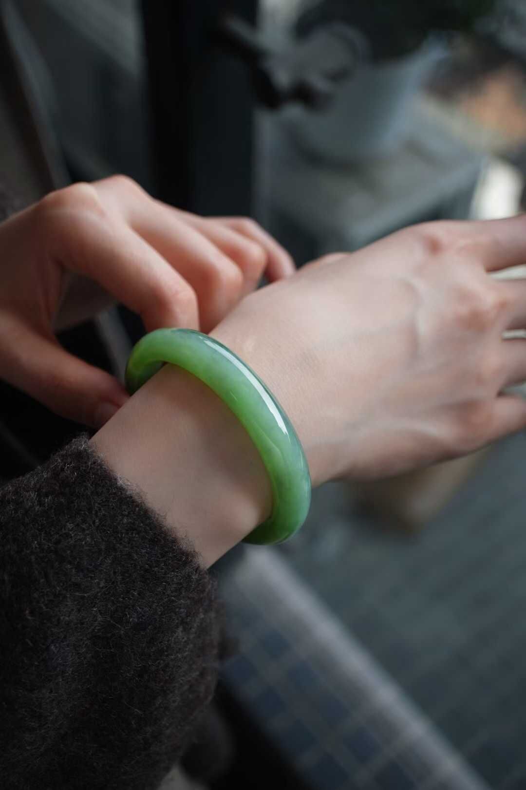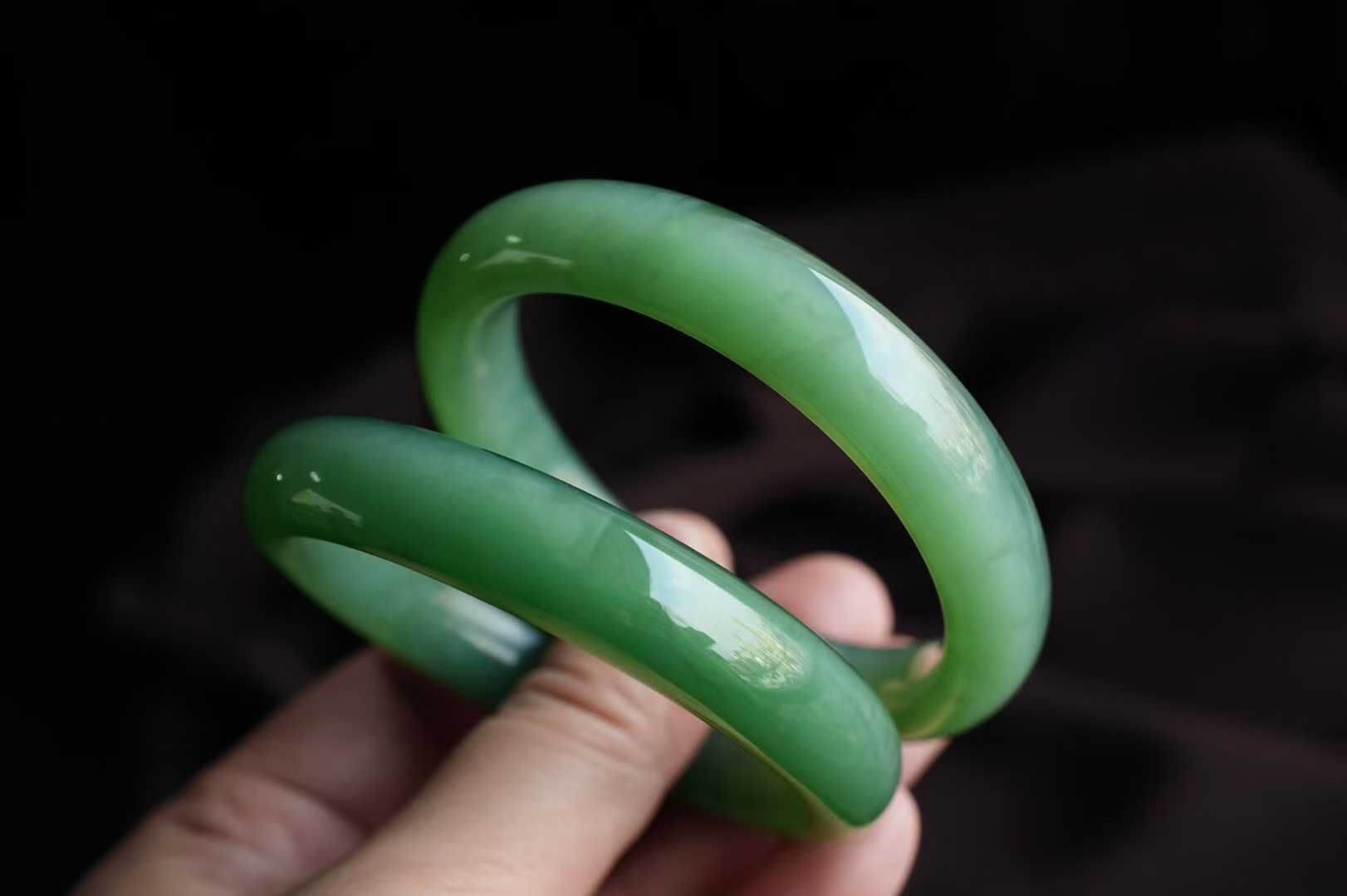 天然和田玉,俄碧老料稀有冰底貓眼料,老礦料密度高,顏色雅致,玉質冰潤,一整圈貓眼效應非常漂亮難得,隨著手腕的轉動,熠熠生輝,暗光下低調又含蓄,不同光線下有不同的美感,無棉無水線,無裂紋完美品相。