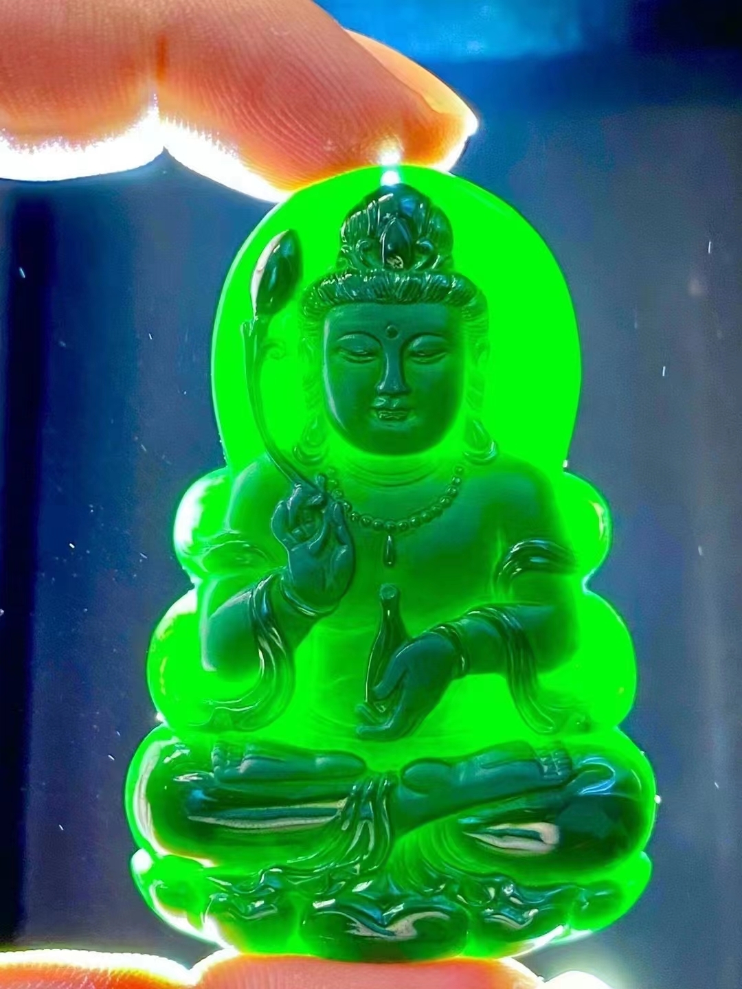 天然翡翠A玉,完美無紋裂紋,細膩乾淨,雕工精美,打燈透綠