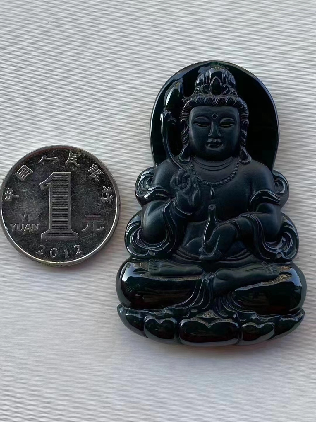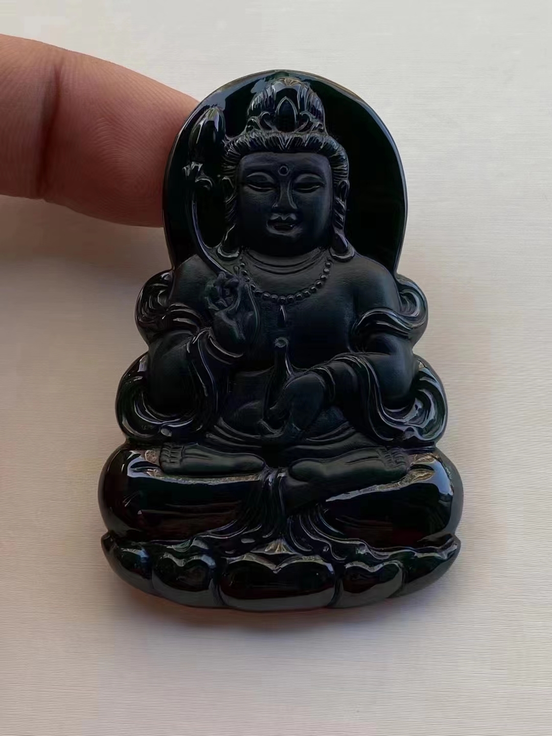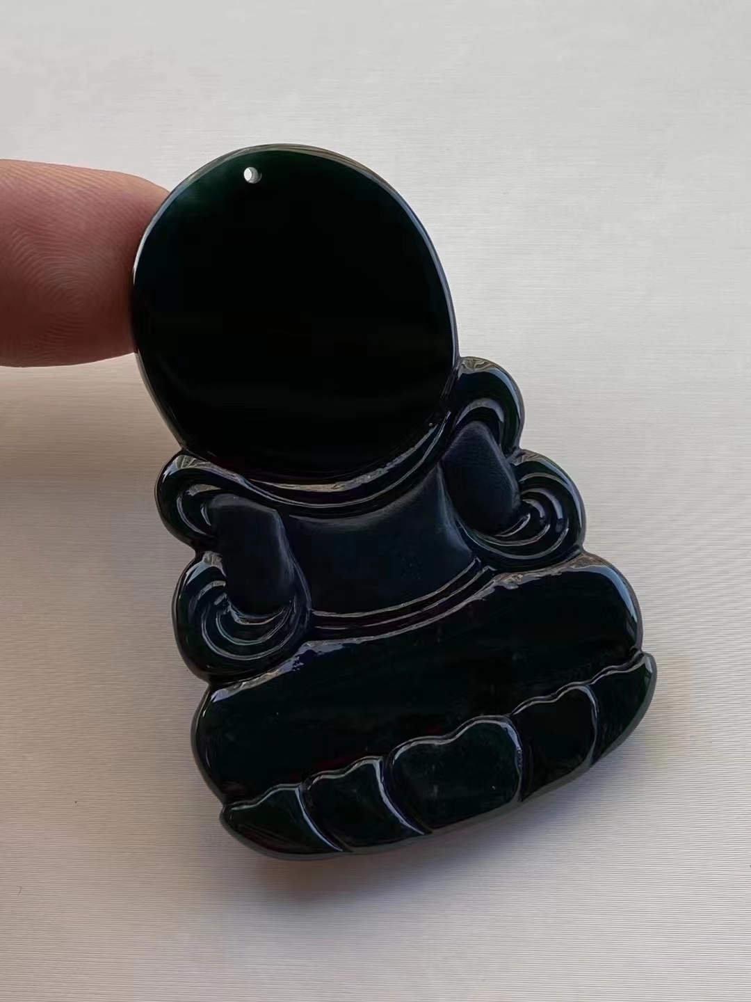 • 墨翠大勢至菩薩, 天然翡翠A玉, 緬甸玉, Jade, Jadeite