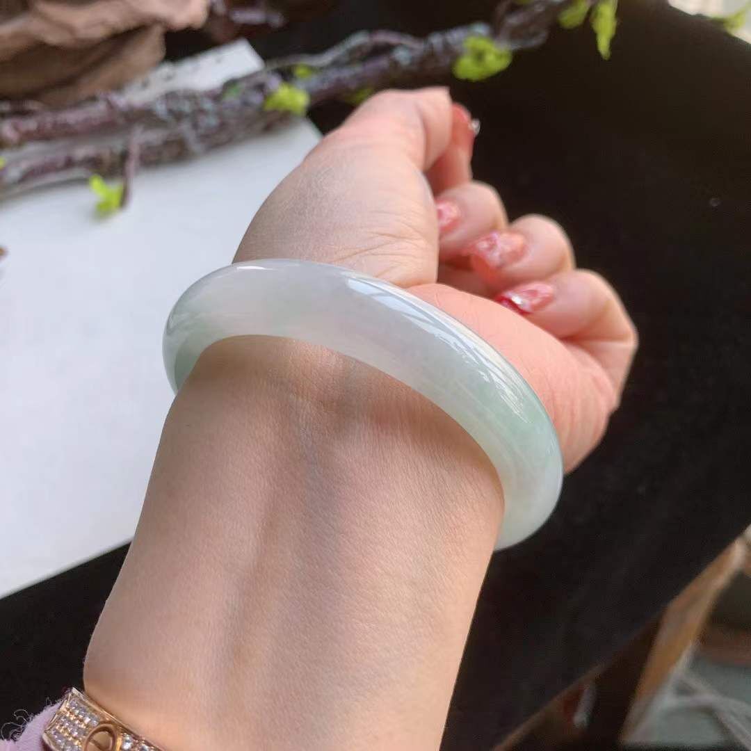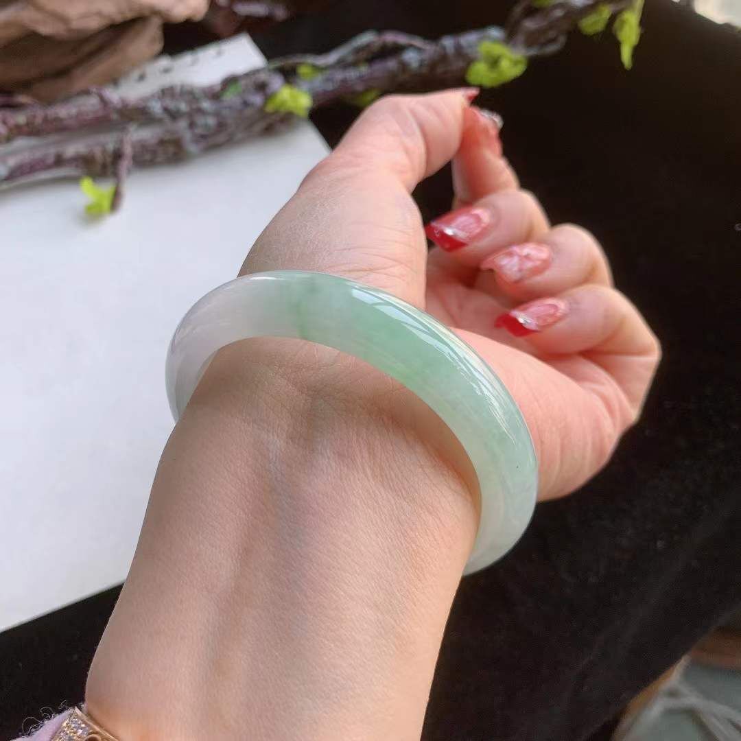 • 翡翠冰糯種飄綠手鐲,天然翡翠A玉, 緬甸玉, Jade, Jadeite
