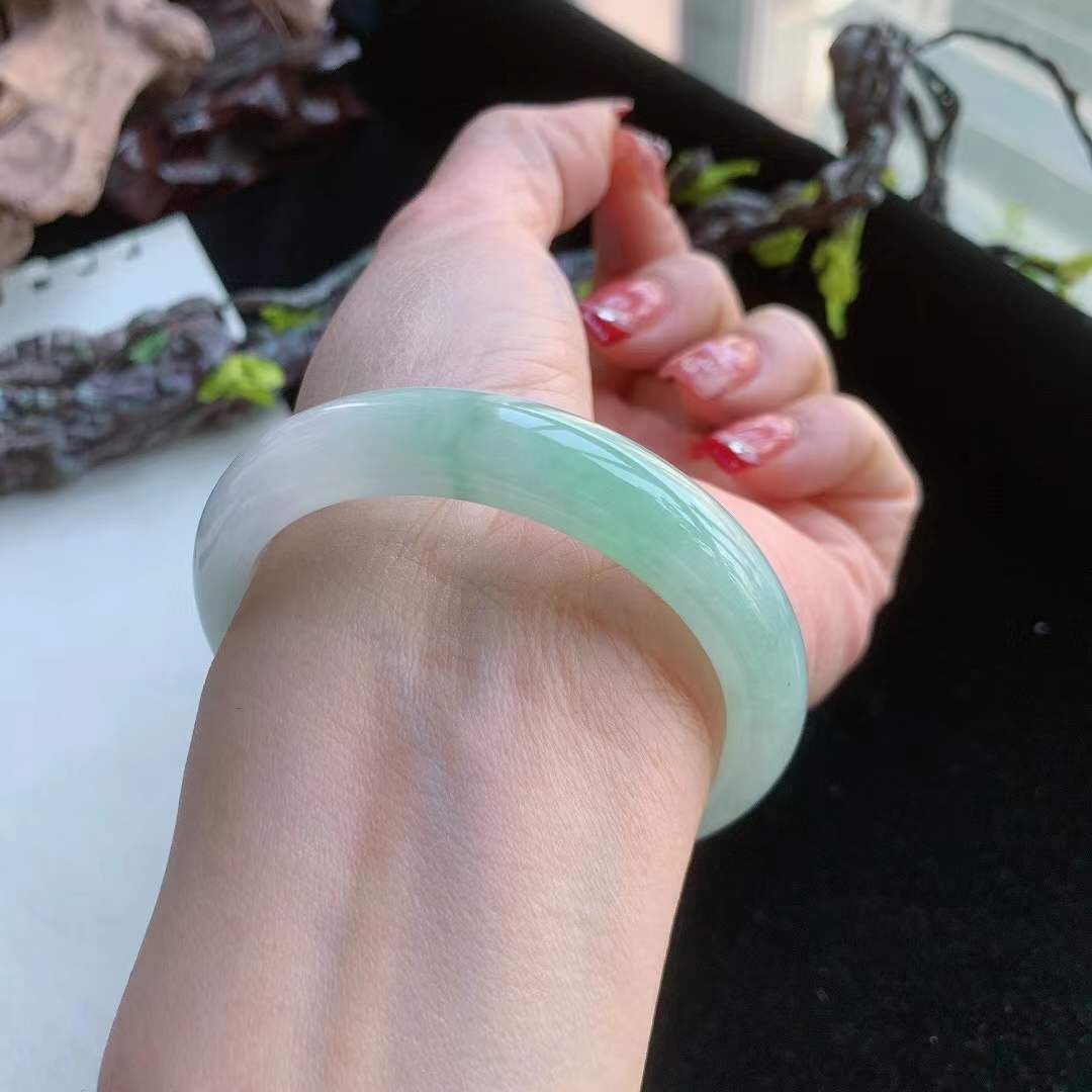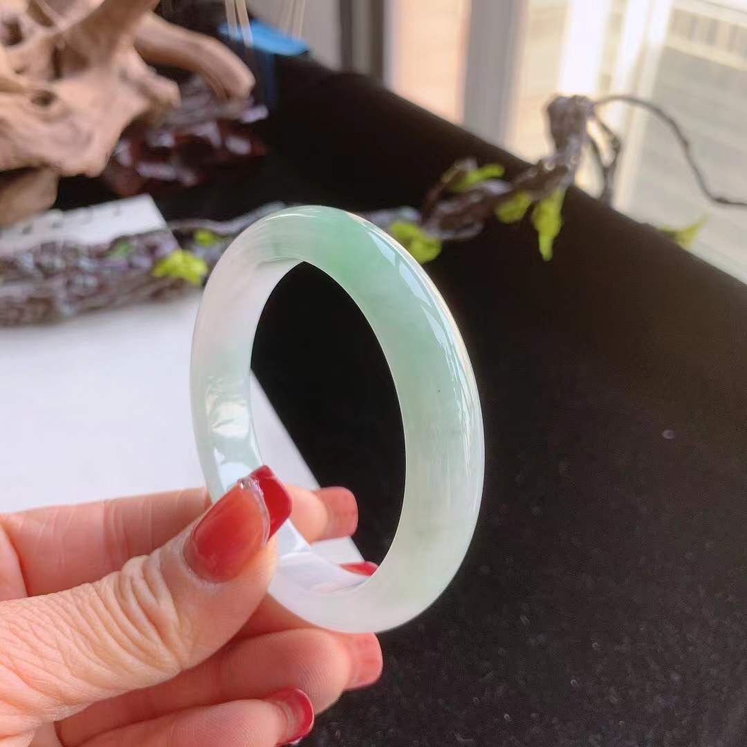 292639 52.8mm翡翠冰糯種飄綠手鐲